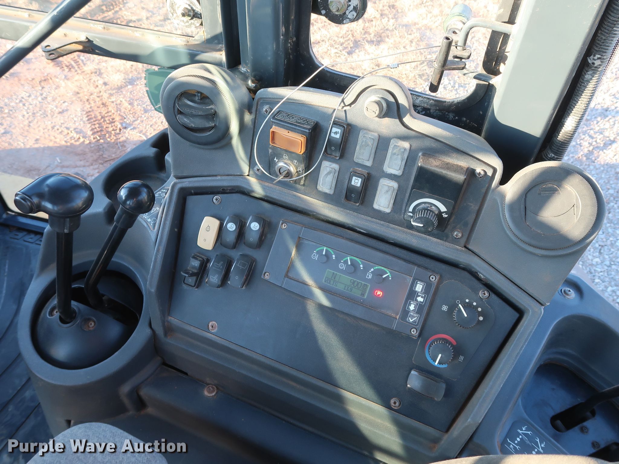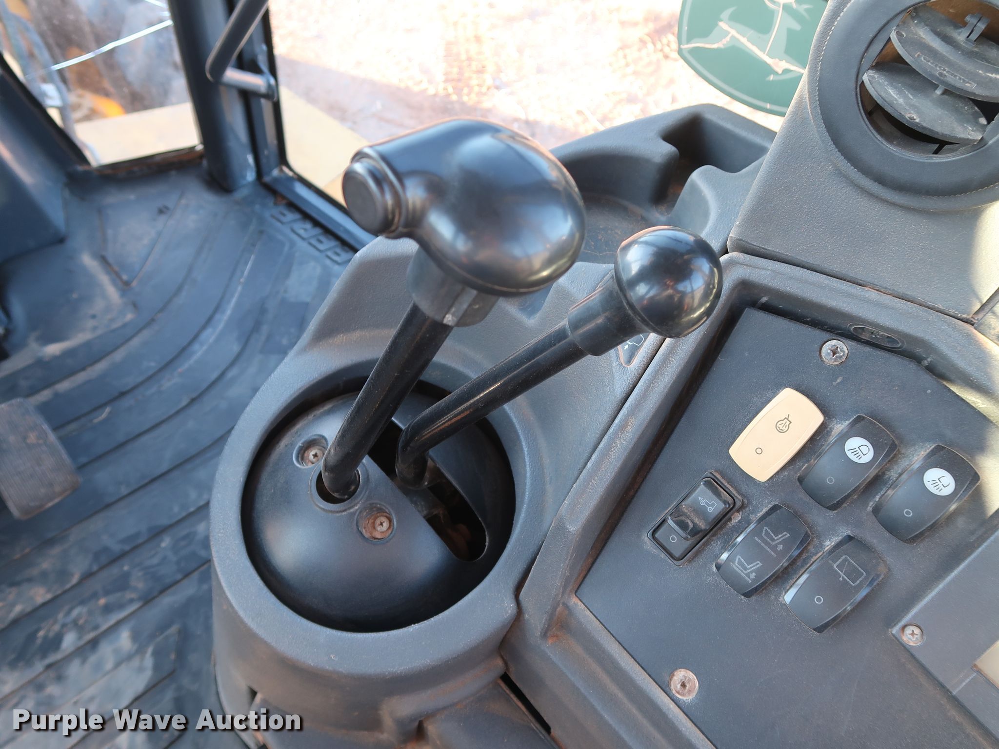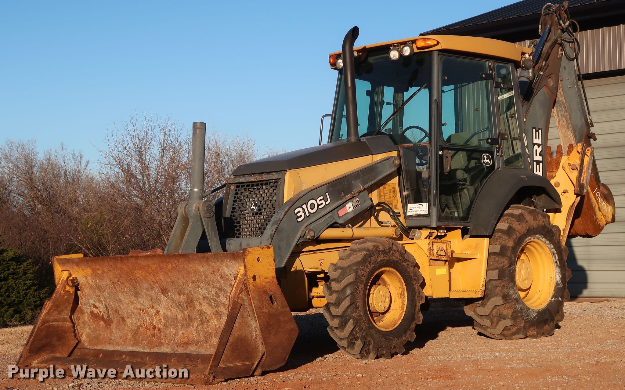 Purple Wave is selling a used Tractor Loader Backhoe in Oklahoma. This item is a 2008 John Deere 310SJ backhoe with the following: 5,472 hours on meter, John Deere 4045TT094 4.5L four cylinder diesel engine, 93 HP, Powershift transmission, 4F-3R gears, Four wheel drive, Differential lock, EROPS, AC and heat, Four stick backhoe controls, John Deere 92"W four-in-one bucket, Weld-on cutting edge, Bucket leveler, Extendable stick backhoe, John Deere 24"W backhoe bucket, (5) teeth, 7.5 cu.ft. capacity, 12.5/80-18 front tires, 19.5L-24 rear tires, Glass cracked, Serial T0310SJ165468
