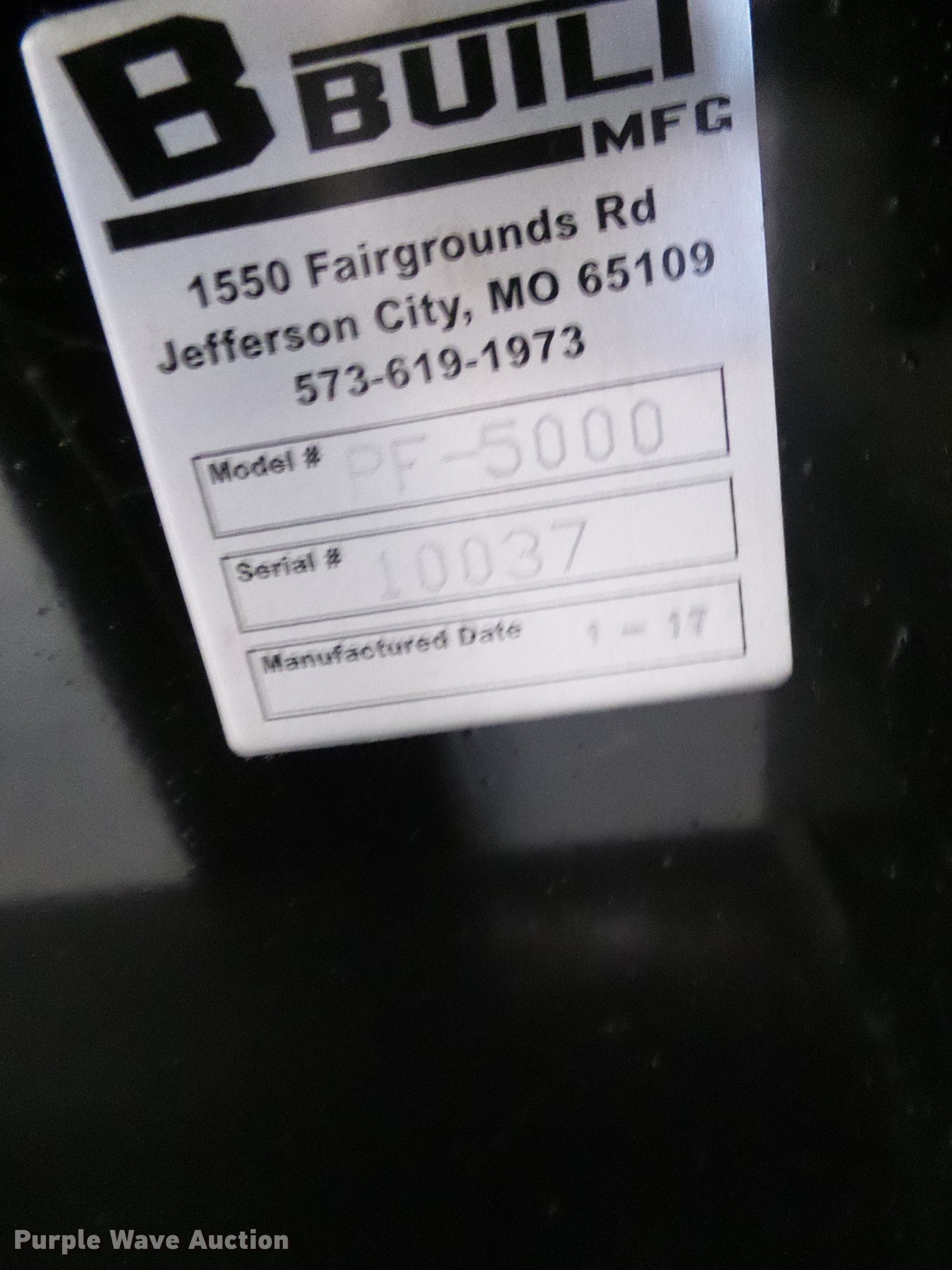 Purple Wave is selling a used Skid Steer Attach. in Missouri. This item is a B-Built Manufacturing PF-5000 pallet forks with the following: 48"L forks, 5,000 lbs capacity, Serial 10037