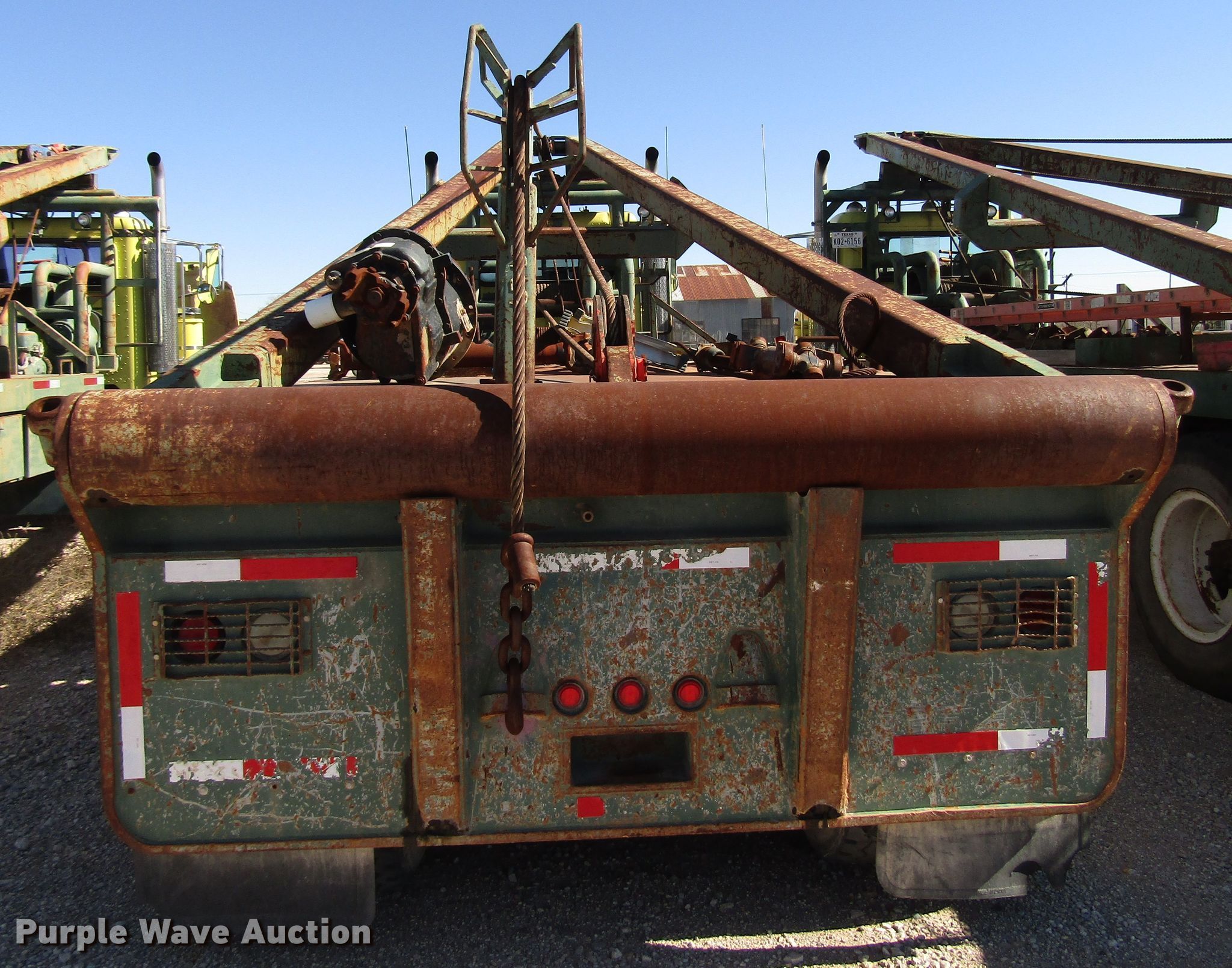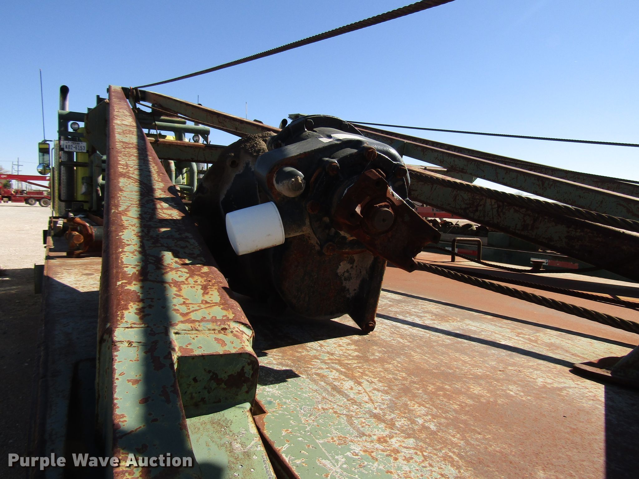 Purple Wave is selling a used Flat Bed Truck in New Mexico. This item is a 2006 Peterbilt 357 winch truck with the following: 308,871 miles on odometer, Caterpillar C15 14.6L L6 diesel engine, Manual transmission, Tandem axle, AC and heat, PTO, 28'L x 102"W flatbed, Dual winches, Rolling tailboard, 28'L gin poles, Walking beam suspension, Air brakes, 29' wheelbase, 445/65R22.5 front tires, 12.00R24 rear tires, GVWR 86,000 lbs, Contents not included, Rear end removed from truck, Non-operational unit, Unit# 55