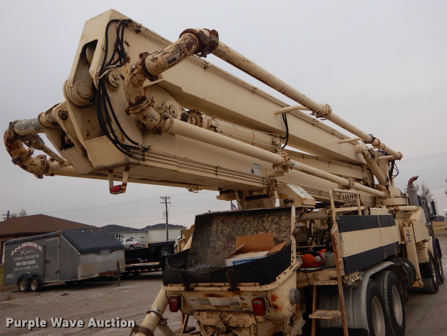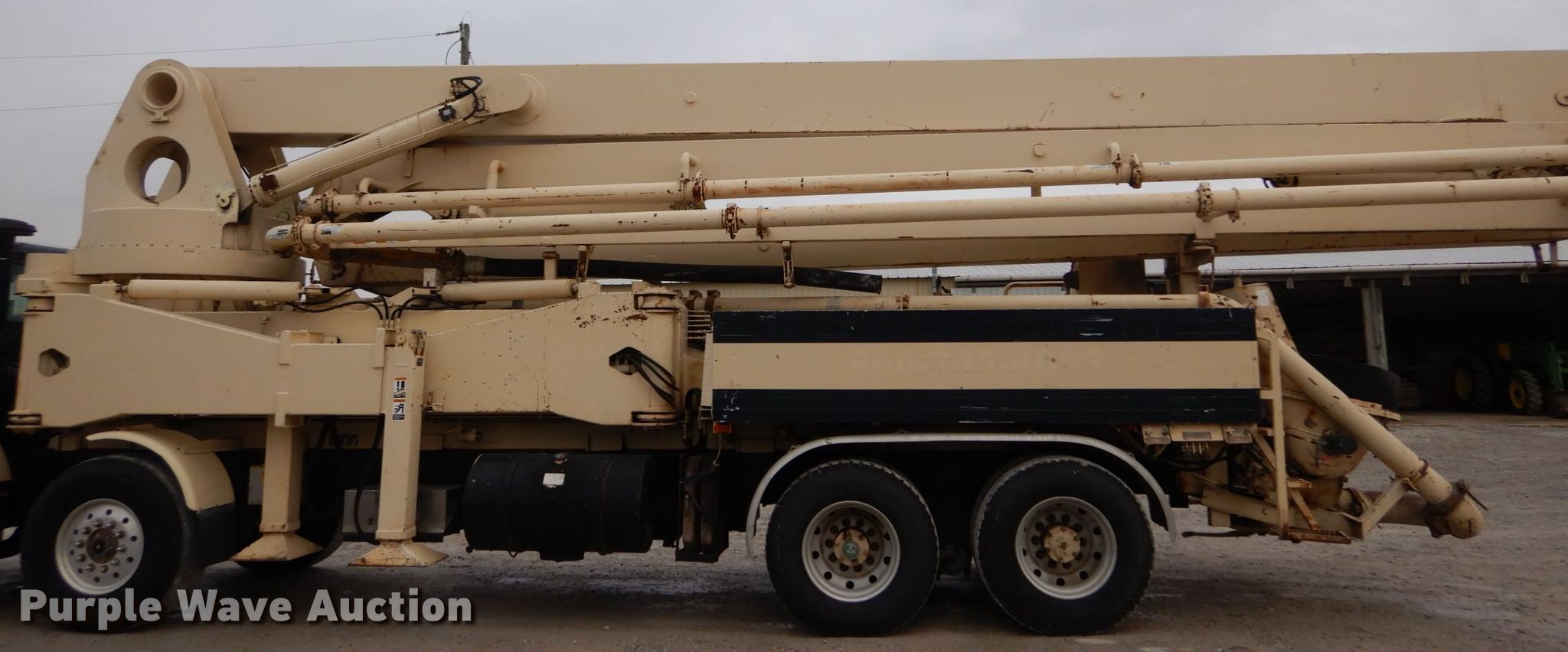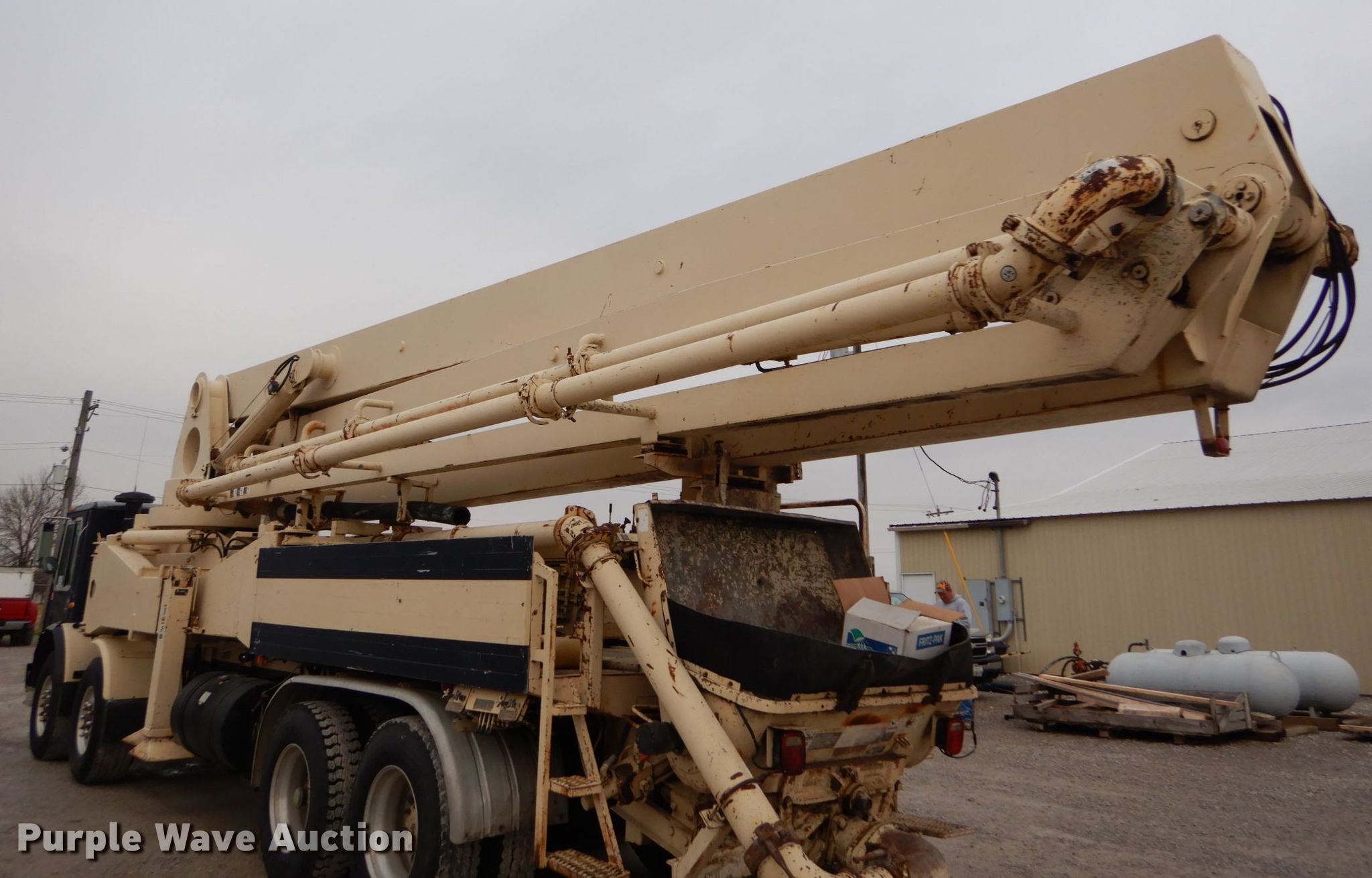 Purple Wave is selling a used Ready Mix or Pump Truck in Illinois. This item is a 1993 Mack MR688S pump truck with the following: 489,854 miles on odometer, 22,116 hours on meter, 12.0L L6 diesel engine, Maxitorque eight speed manual transmission, Tandem axle, Heat, PTO, 1993 Schwing BPL 1200 HDR-23 pump bed, Four boom sections, 42 meter boom length, Ground and remote controls, Serial 170512256, Spring over walking beam suspension, Air brakes, 425/65R22.5 front tires, 11R22.5 rear tires