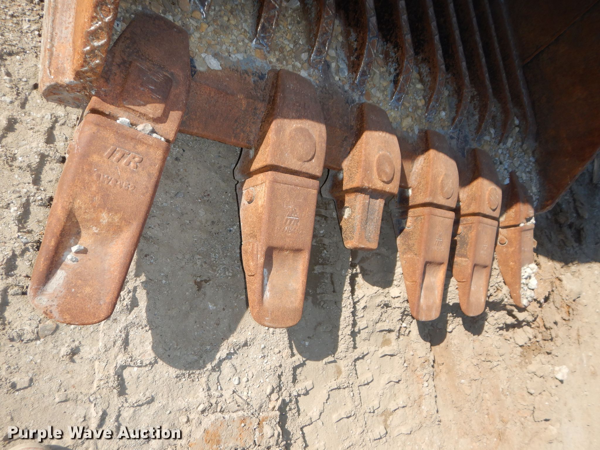 Purple Wave is selling a used Excavator Attach. in Kansas. This item is a 59"W skeletonized excavator bucket with the following: 4" spacing, (6) teeth, 3.5" pin diameter, Removed from a Komatsu PC400 excavator, Tooth missing