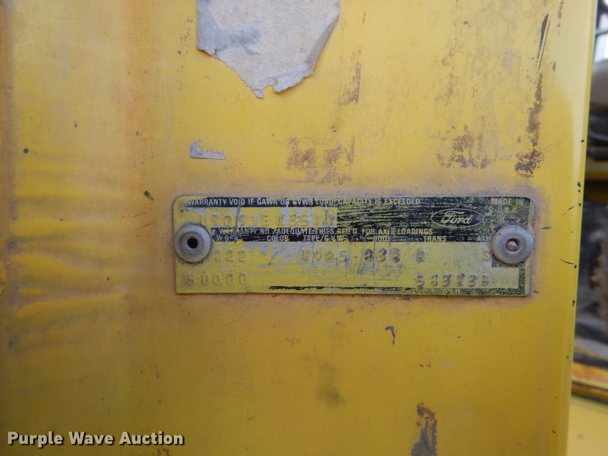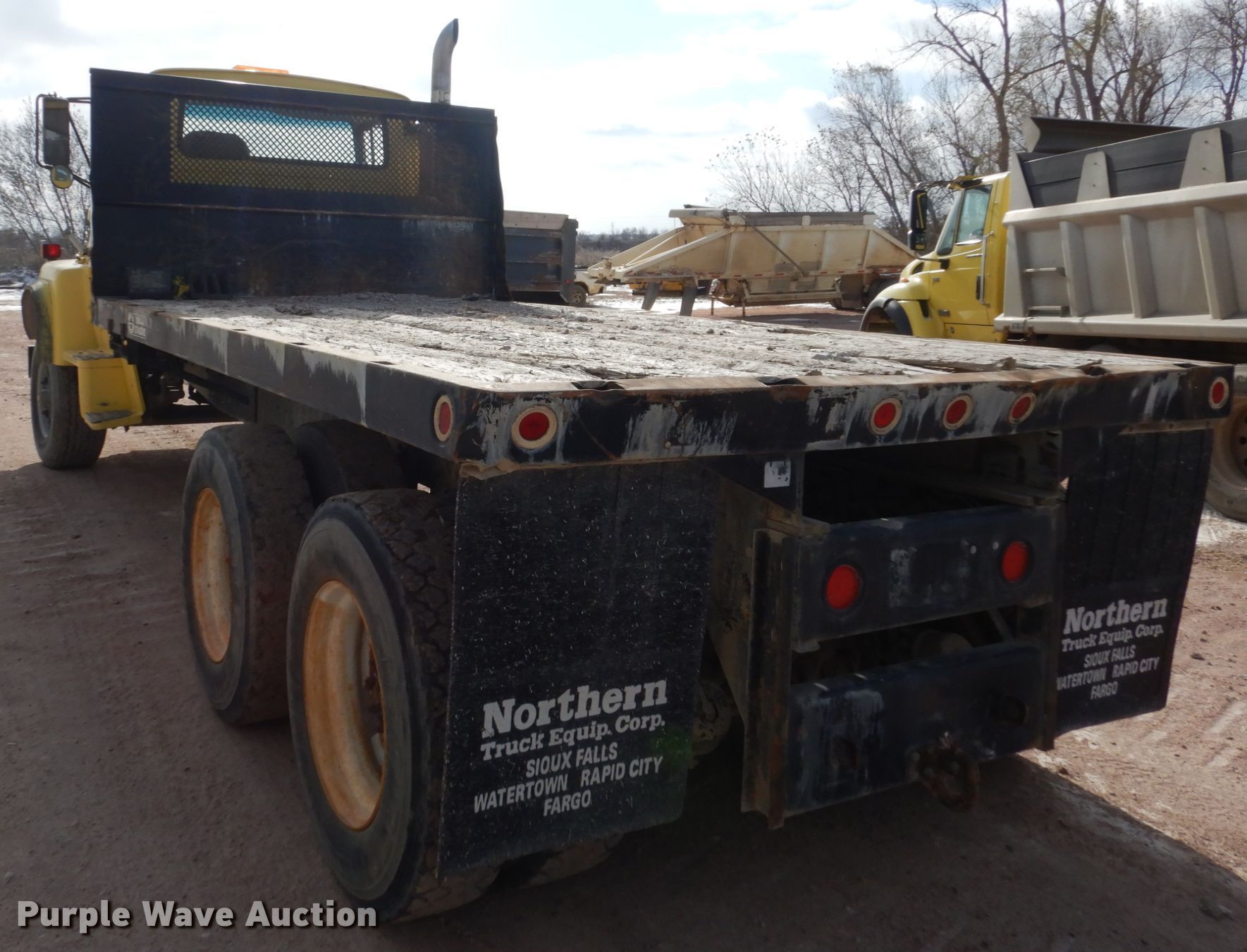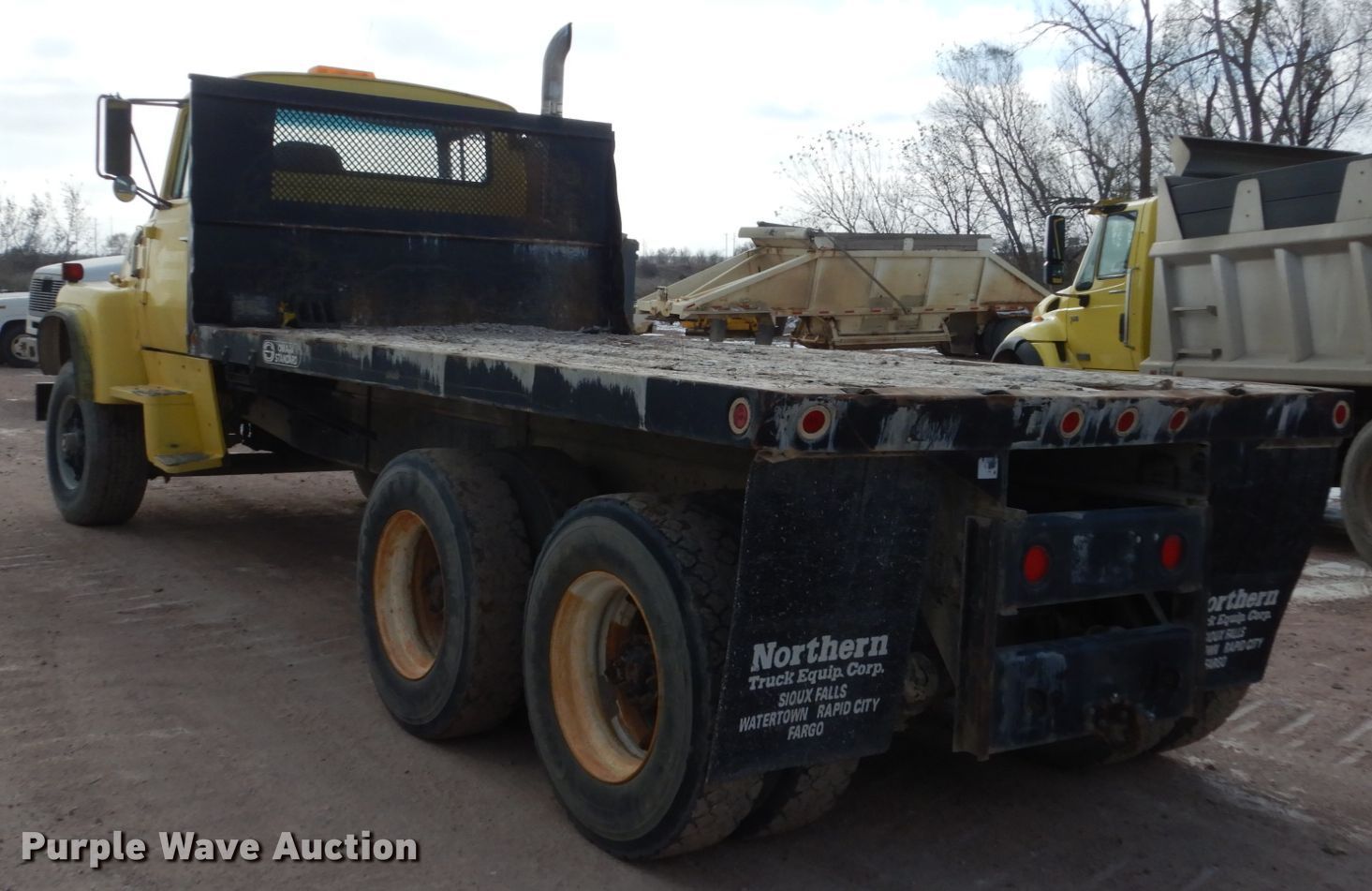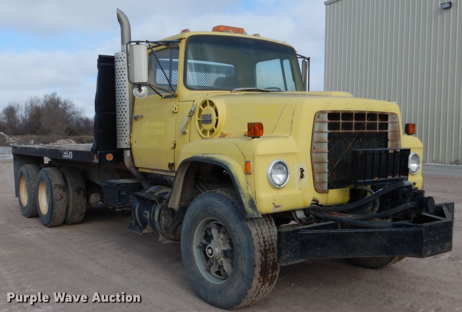Purple Wave is selling a used Flat Bed Truck in South Dakota. This item is a 1979 Ford 9000 flatbed truck with the following: 248,669 miles on odometer, 1,020 hours on meter, Cummins six cylinder diesel engine, Seven speed manual transmission, Tandem axle, Heat, PTO, 15'L x 96"W flatbed, Walking beam suspension, Air brakes, 385/65R22.5 front tires, 11R22.5 rear tires