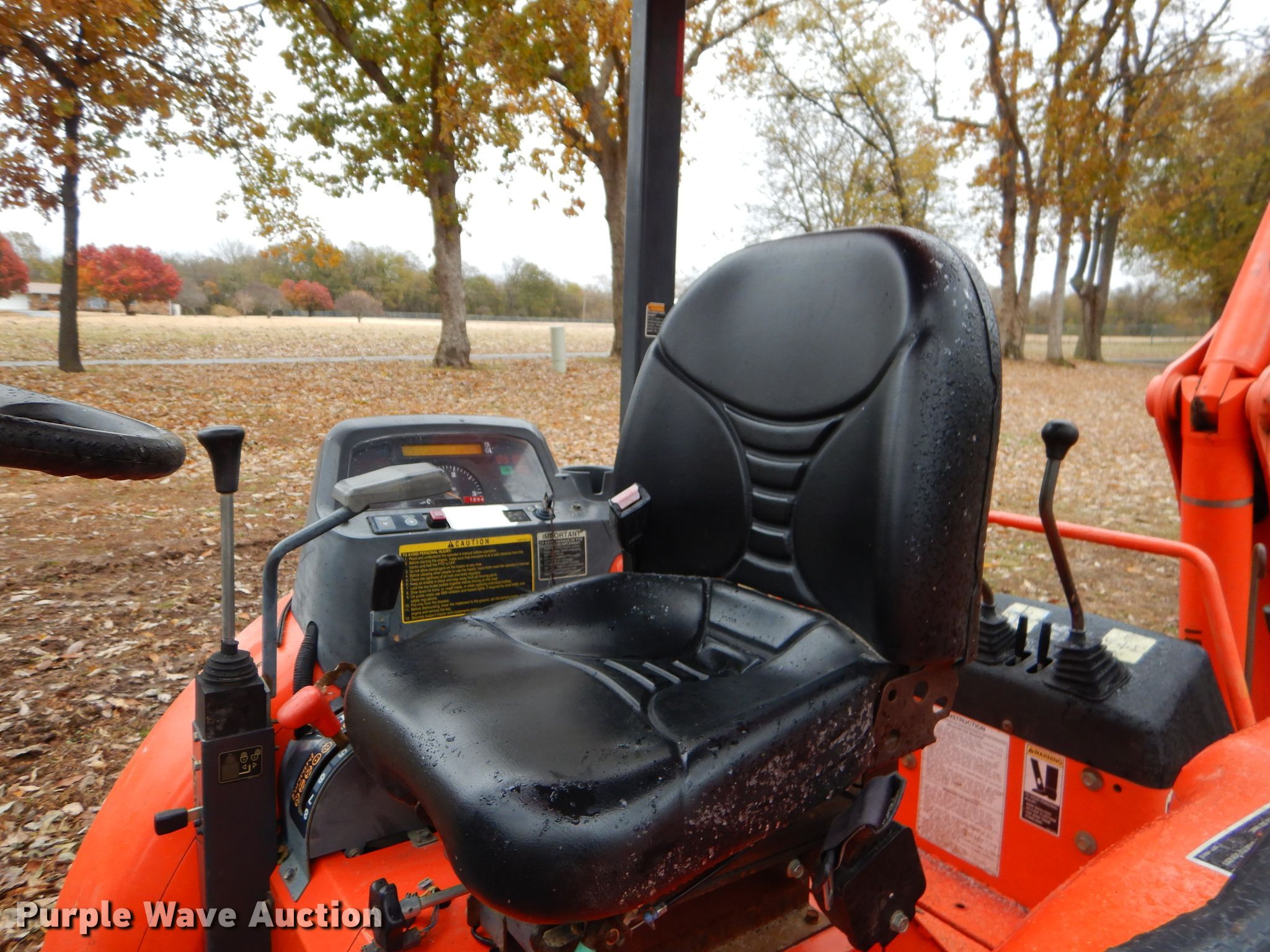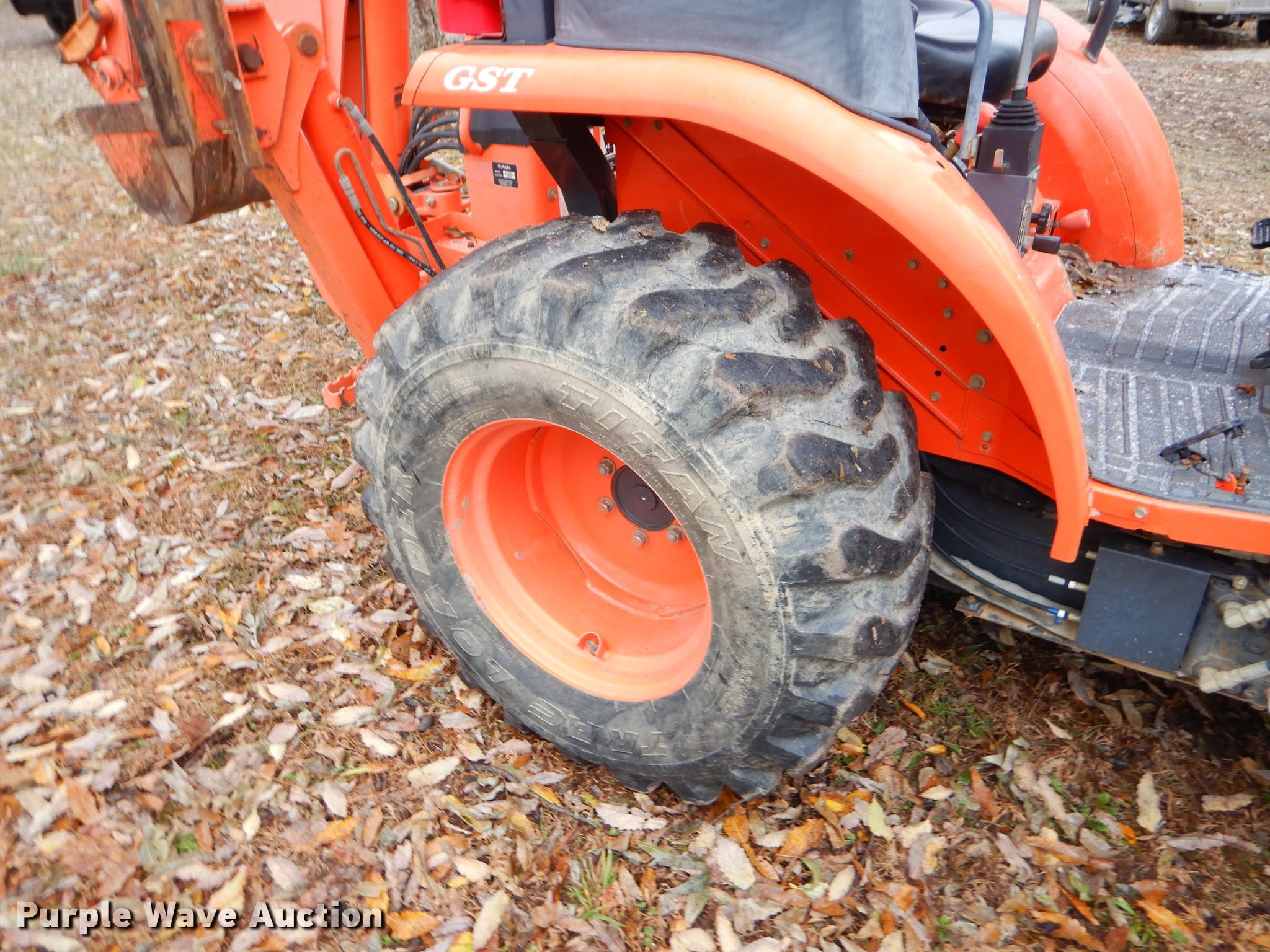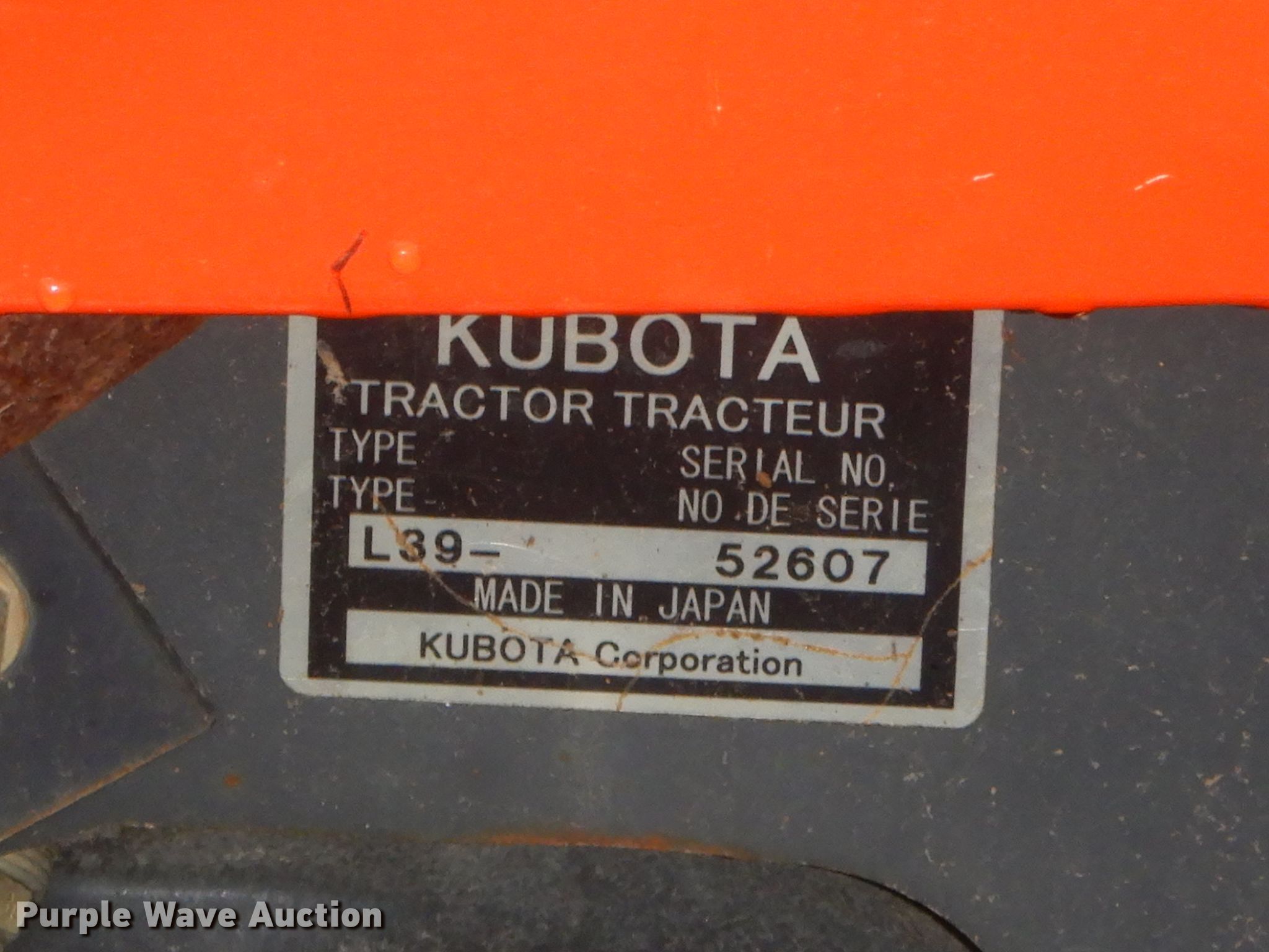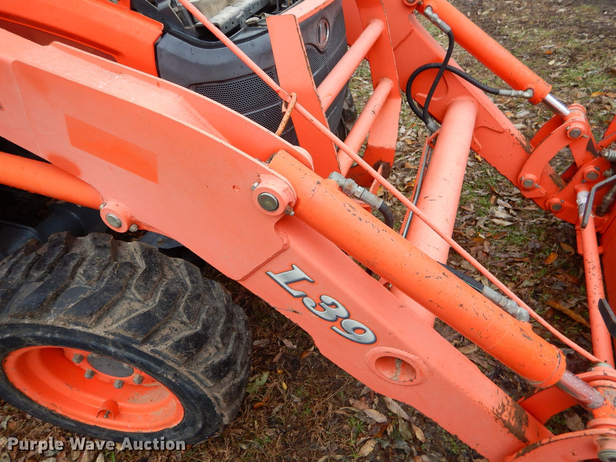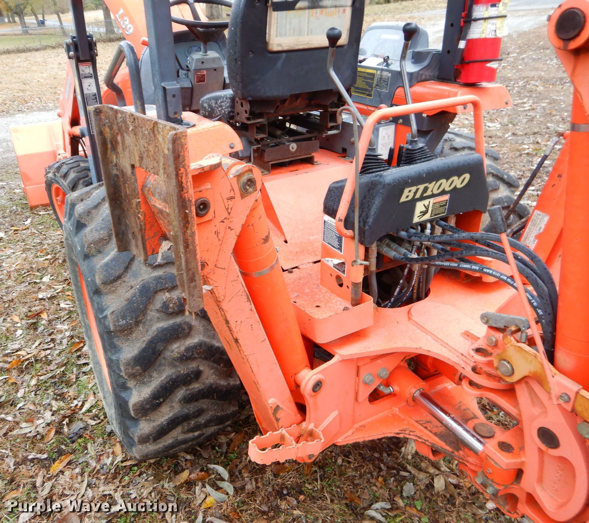 Purple Wave is selling a used Tractor Loader Backhoe in Oklahoma. This item is a 2006 Kubota L39 backhoe with the following: 1,142 hours on meter, Kubota 111.4 C.I.D. three cylinder diesel engine, Glide transmission, 12F-8R gears, OROPS, Wobble stick backhoe controls, Kubota TL1000 loader, 71"W bucket, Weld-on cutting edge, Serial A0072, Kubota BT1000 backhoe, 45"L pin to pin, 16"W bucket, (4) teeth, Serial A0885, 27x10.50-15 front tires, 15x19.5 rear tires, Serial 52607