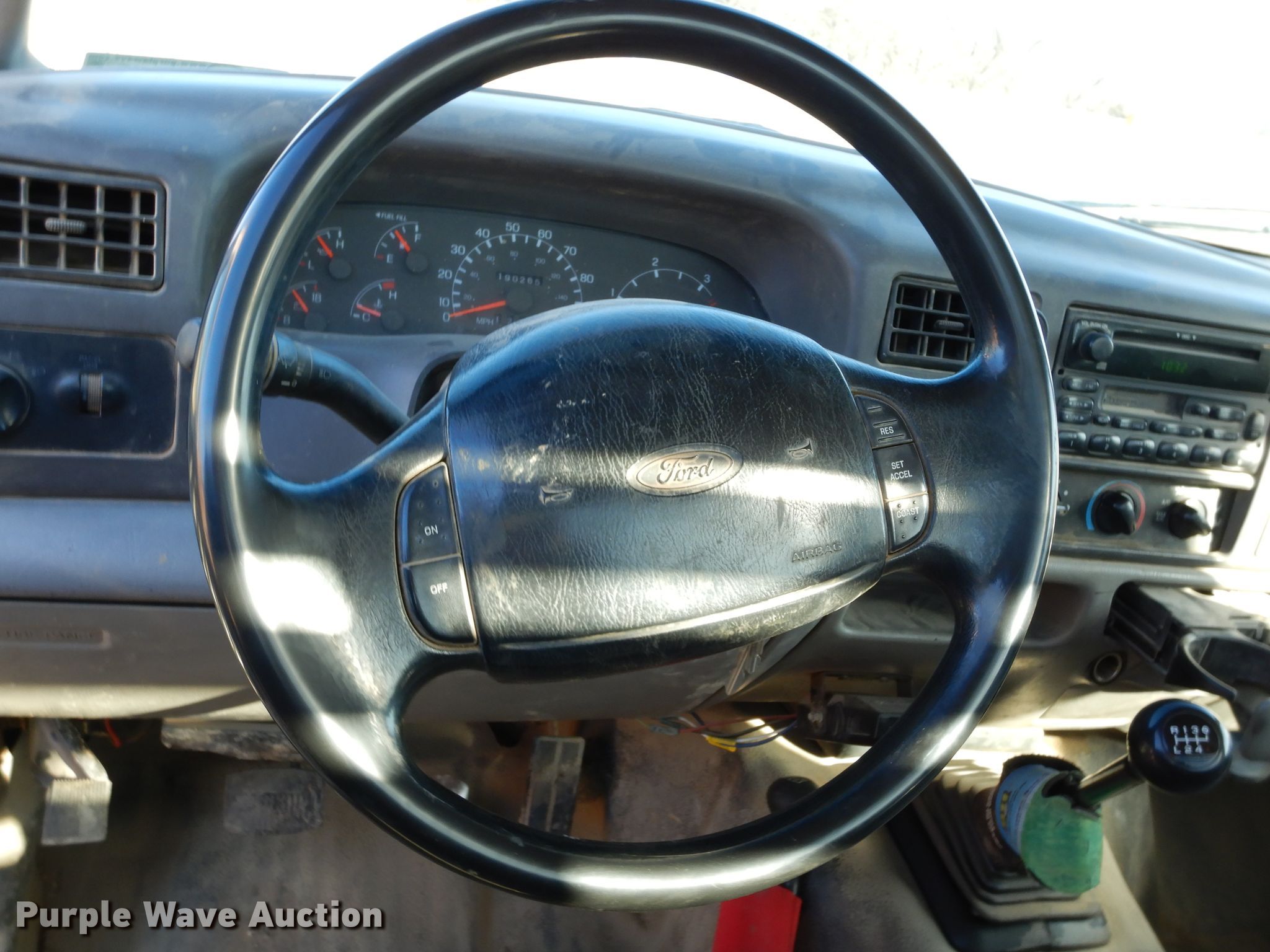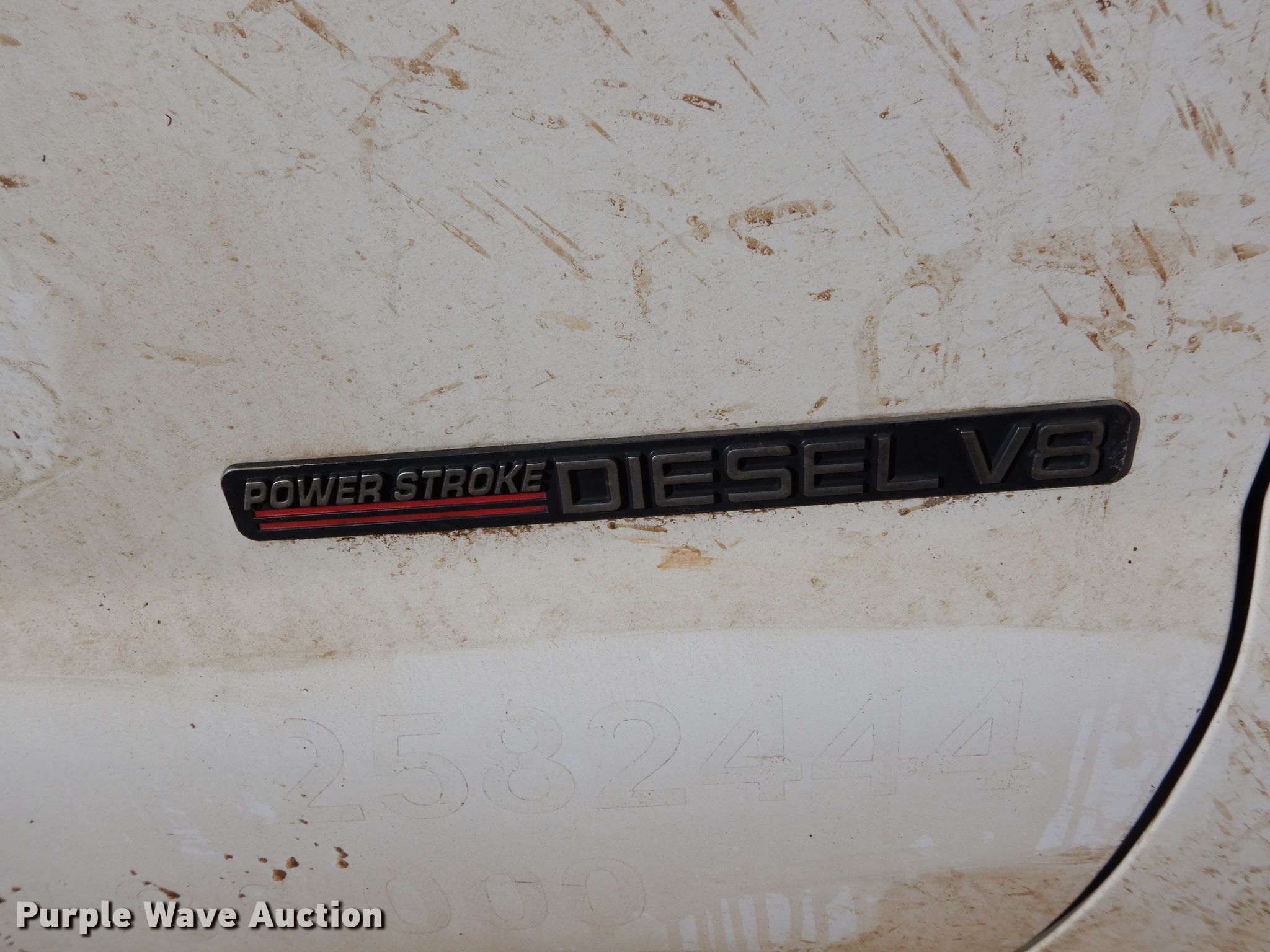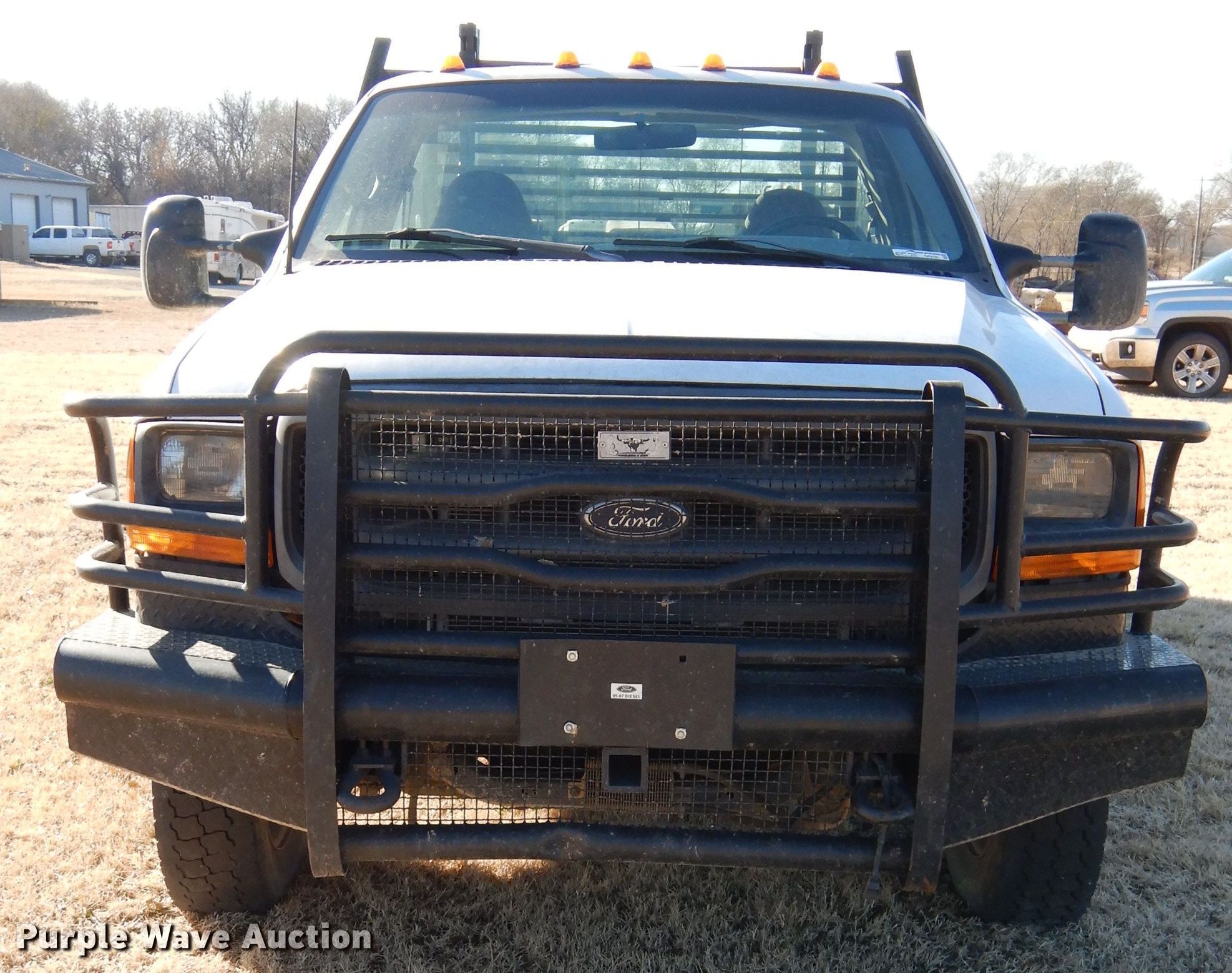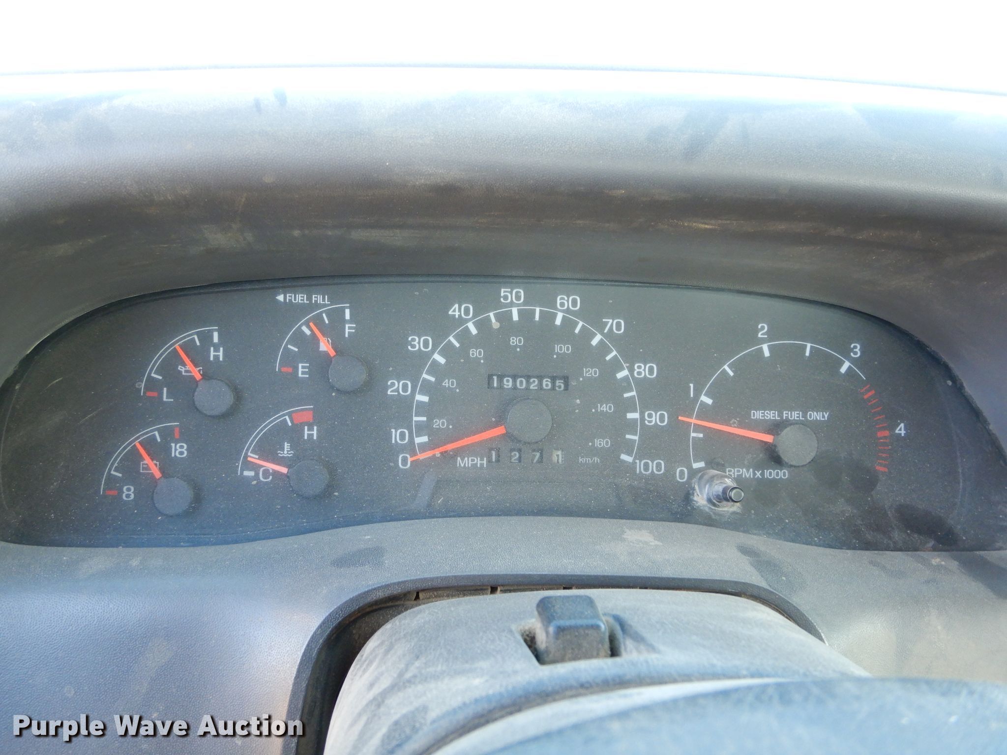 Purple Wave is selling a used Flat Bed Truck in Kansas. This item is a 1999 Ford F450 Super Duty flatbed truck with the following: 190,265 miles on odometer, 7.3L V8 diesel engine, Six speed manual transmission, Four wheel drive, AC and heat, Cruise, 9'L x 8'W flatbed, Auxiliary fuel tank, Pump, Previously held diesel, 245/70R19.5 tires