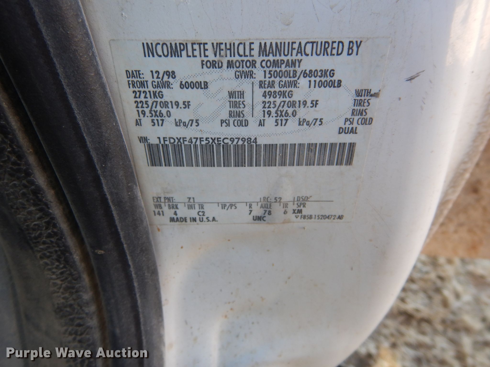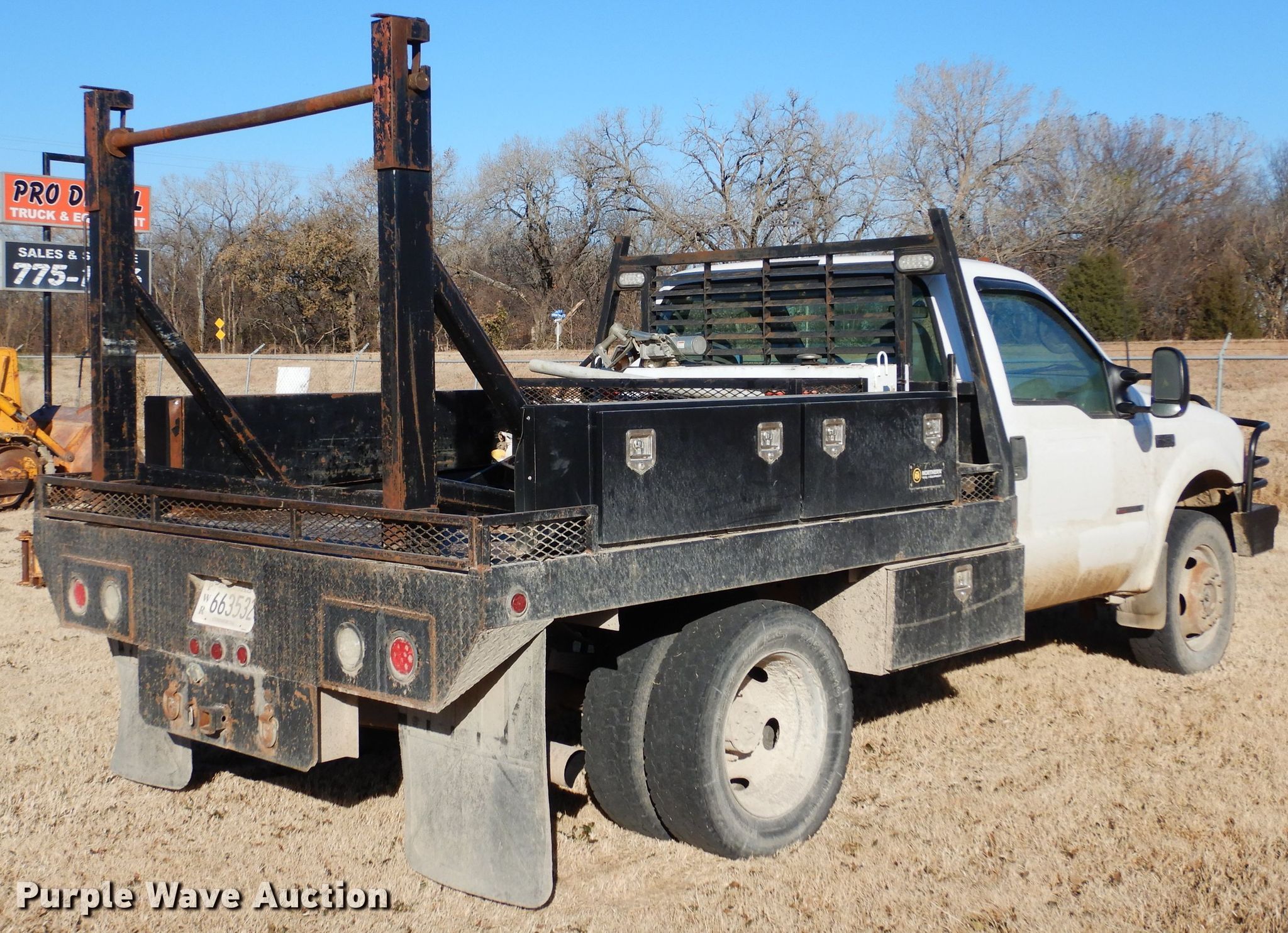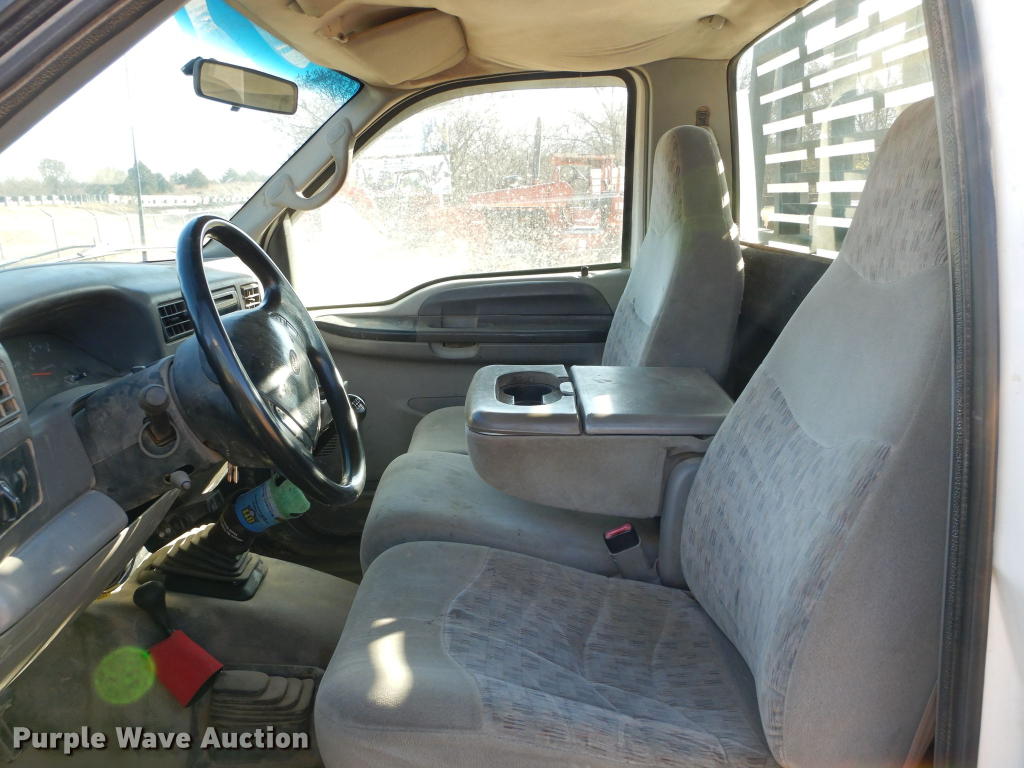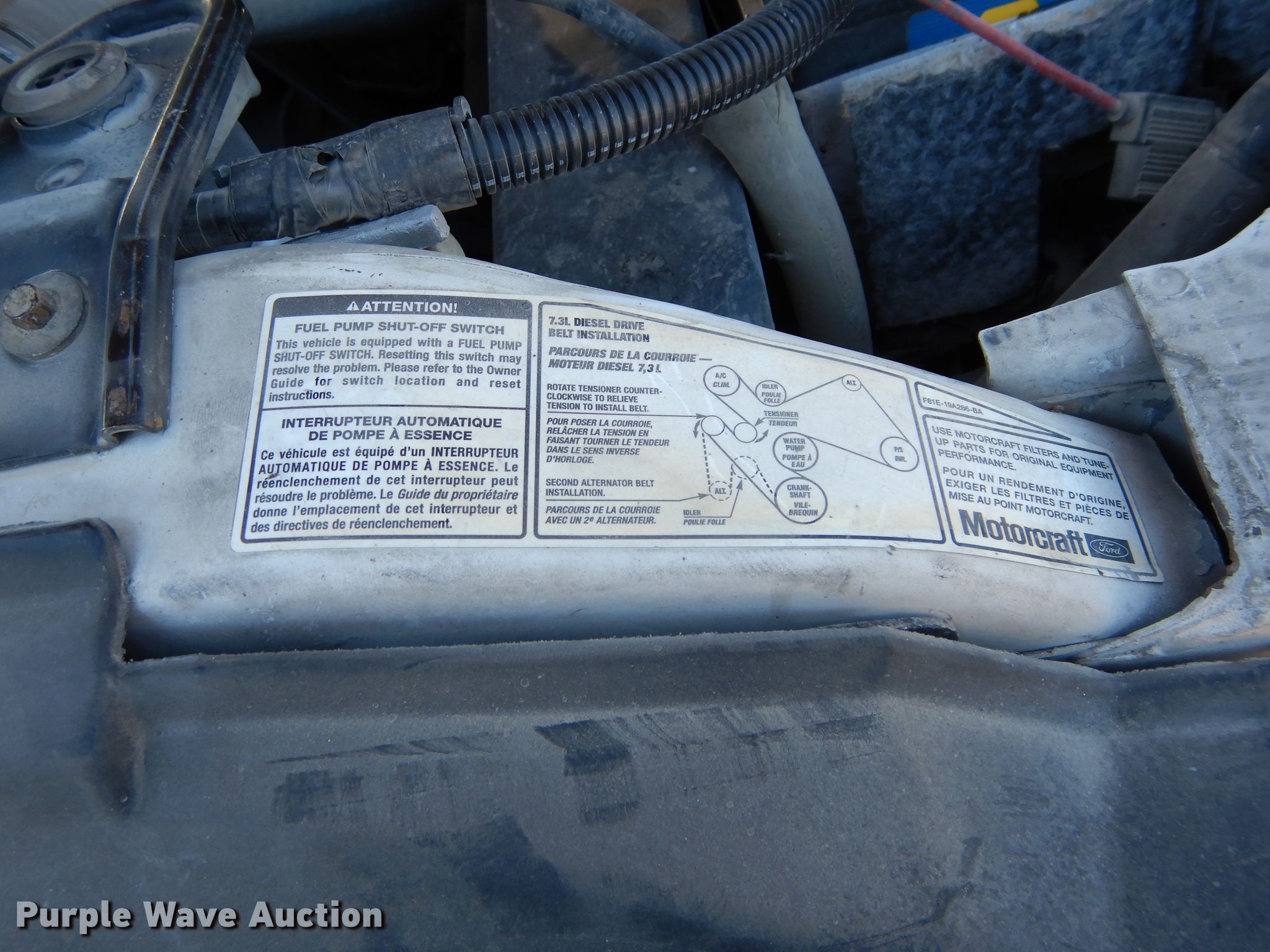 Purple Wave is selling a used Flat Bed Truck in Kansas. This item is a 1999 Ford F450 Super Duty flatbed truck with the following: 190,265 miles on odometer, 7.3L V8 diesel engine, Six speed manual transmission, Four wheel drive, AC and heat, Cruise, 9'L x 8'W flatbed, Auxiliary fuel tank, Pump, Previously held diesel, 245/70R19.5 tires