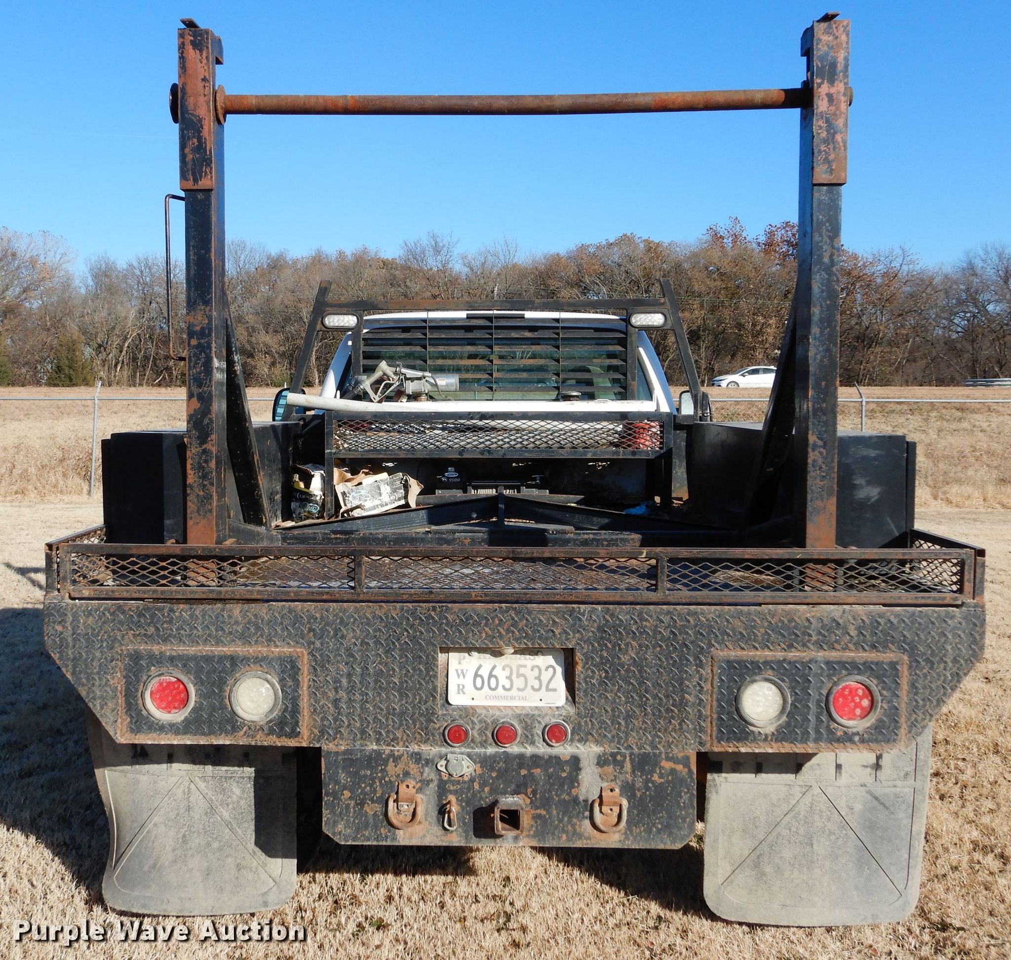 1999 Ford F450 Super Duty flatbed truck. 190,265 miles on odometer, 7.3L V8 diesel engine, Six speed manual transmission, Four wheel drive, AC and heat, Cruise, 9'L x 8'W flatbed, Auxiliary fuel tank Pump, Previously held diesel, 245/70R19.5 tires. View repairs. Vehicle has an E-Title in the State of Kansas. A paper title will be distributed to the buyer within 30 days from verification of funds. 1FDXF47F5XEC97984. 1009 SW River Valley Rd. Augusta, KS 67010