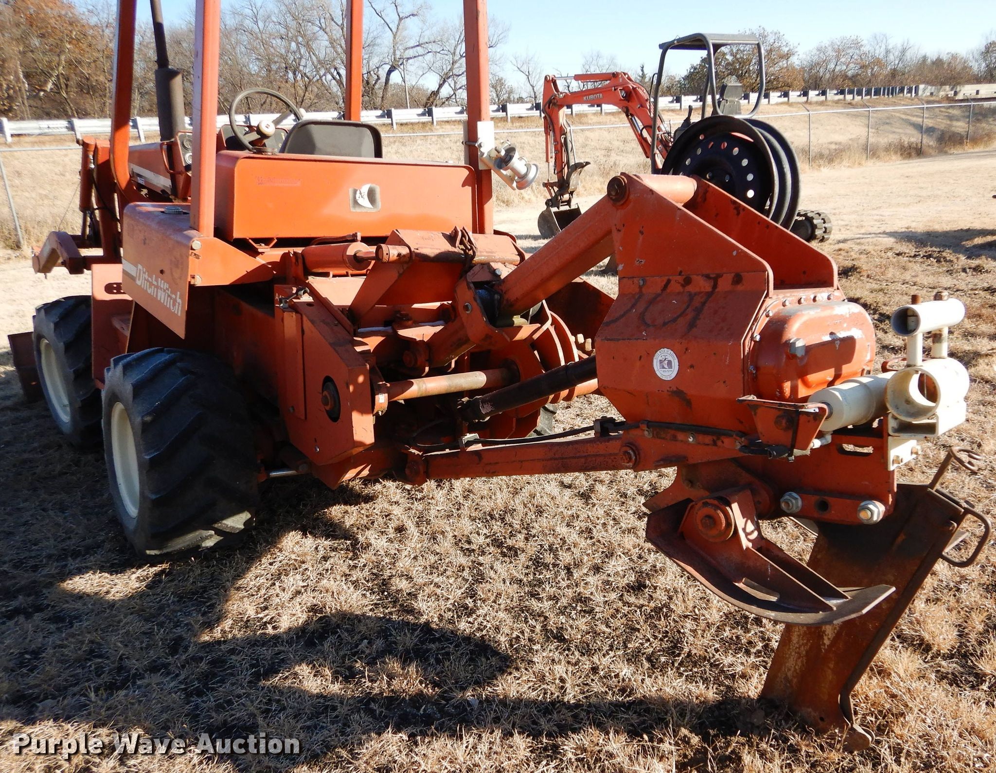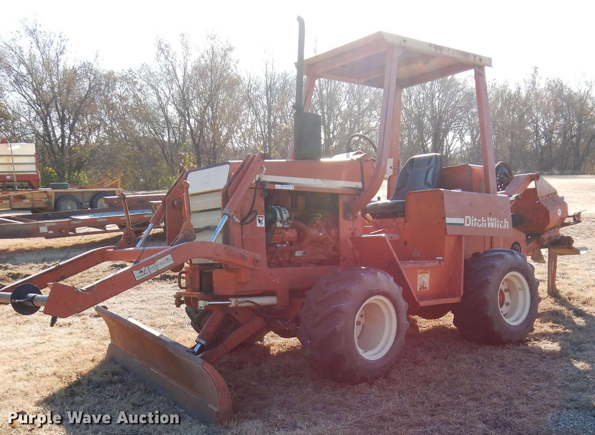 Purple Wave is selling a used Cable Plow in Kansas. This item is a 1994 Ditch Witch 5110DD cable plow with the following: 3,719 hours on meter, Deutz three cylinder diesel engine, Four speed manual transmission, Four-way backfill blade, Vibratory plow model A450, Serial 2L0453, 18" plow blade, 24" plow blade, 36" plow blade, Reel carrier model HRC, Serial 360150, 31 x 5.50-15 tires, Serial 5L0082