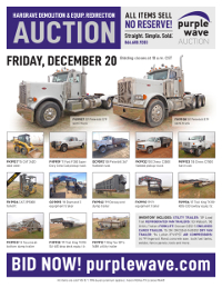Equipment descriptions are based on our direct observation and information provided by our selling customer. All information is intended to be as accurate as possible. However, we recommend customers inspect prior to bidding. Purple Wave listings are not intended to be substitutions for inspection. The details provided may differ on equipment based on information provided by the consignor. An error or omission in the listing will not change the results of the bid. It is the responsibility of the buyer to conduct any inspection and examination necessary to satisfy him of all material facts before placing a bid. All assets, unless stated otherwise, are sold "as-is, where is". Buyers assume all risks at the conclusion of the auction. All sales are final. No refunds given. Credit card transactions may not be reversed.