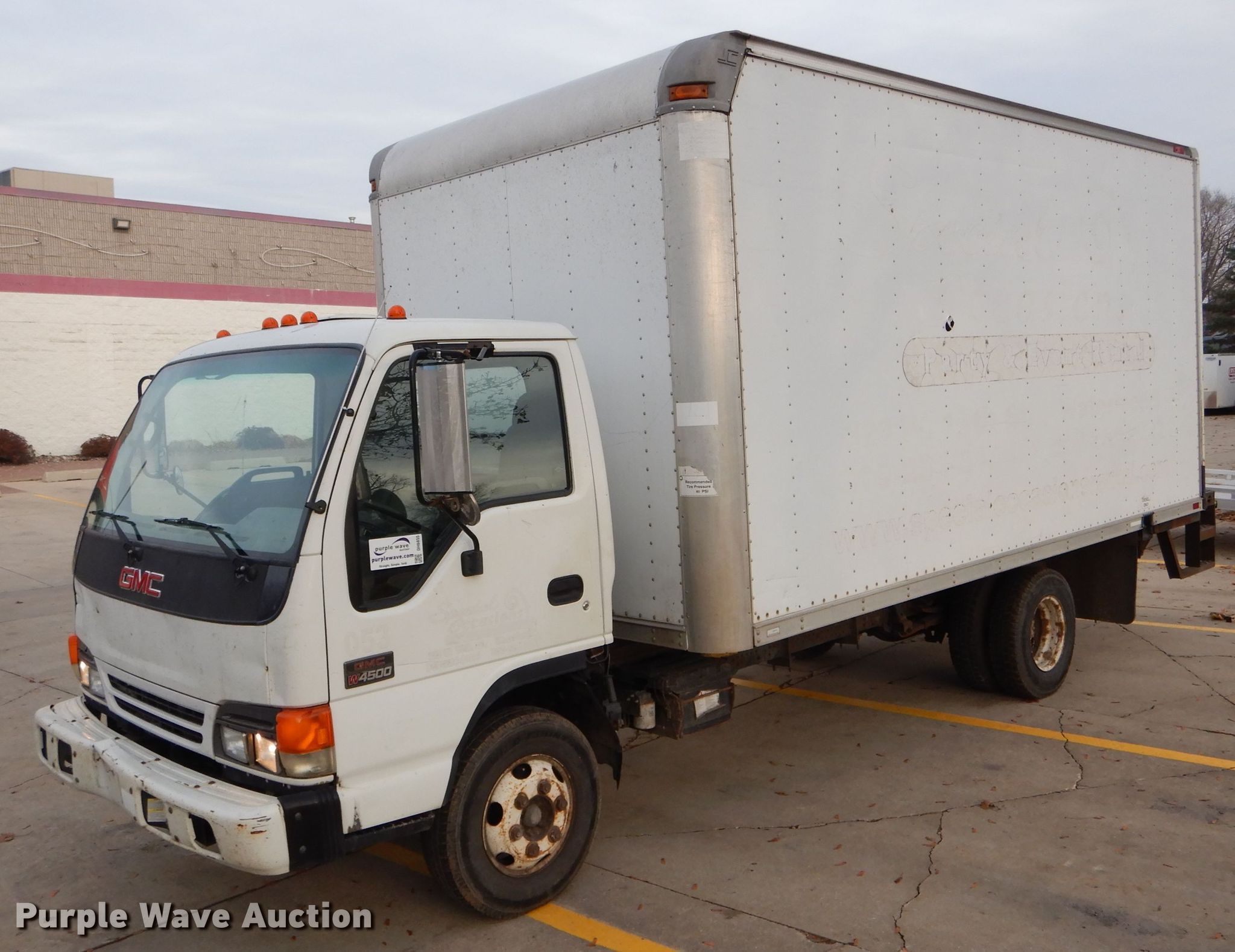 Purple Wave is selling a used Box Truck in Iowa. This item is a 2005 GMC W4500 box truck with the following: 206,298 miles on odometer, Isuzu 5.2L L4 diesel engine, Automatic transmission, Single axle, AC and heat, Supreme Corp box bed, 16'L x 96"W, 96" interior height, End gate lift, Spring suspension, Hydrualic brakes, 151" wheelbase, LT215/85R16 tires