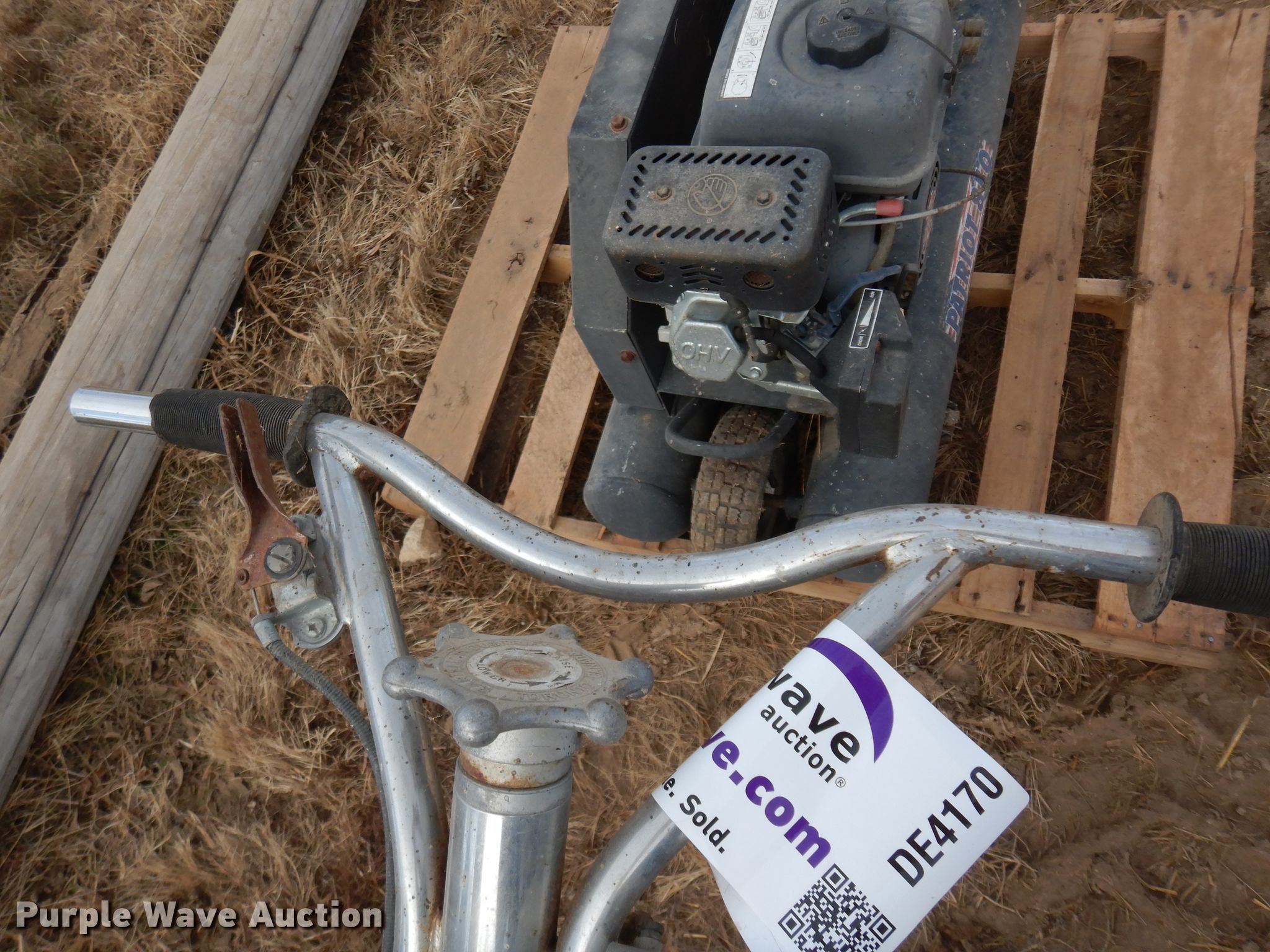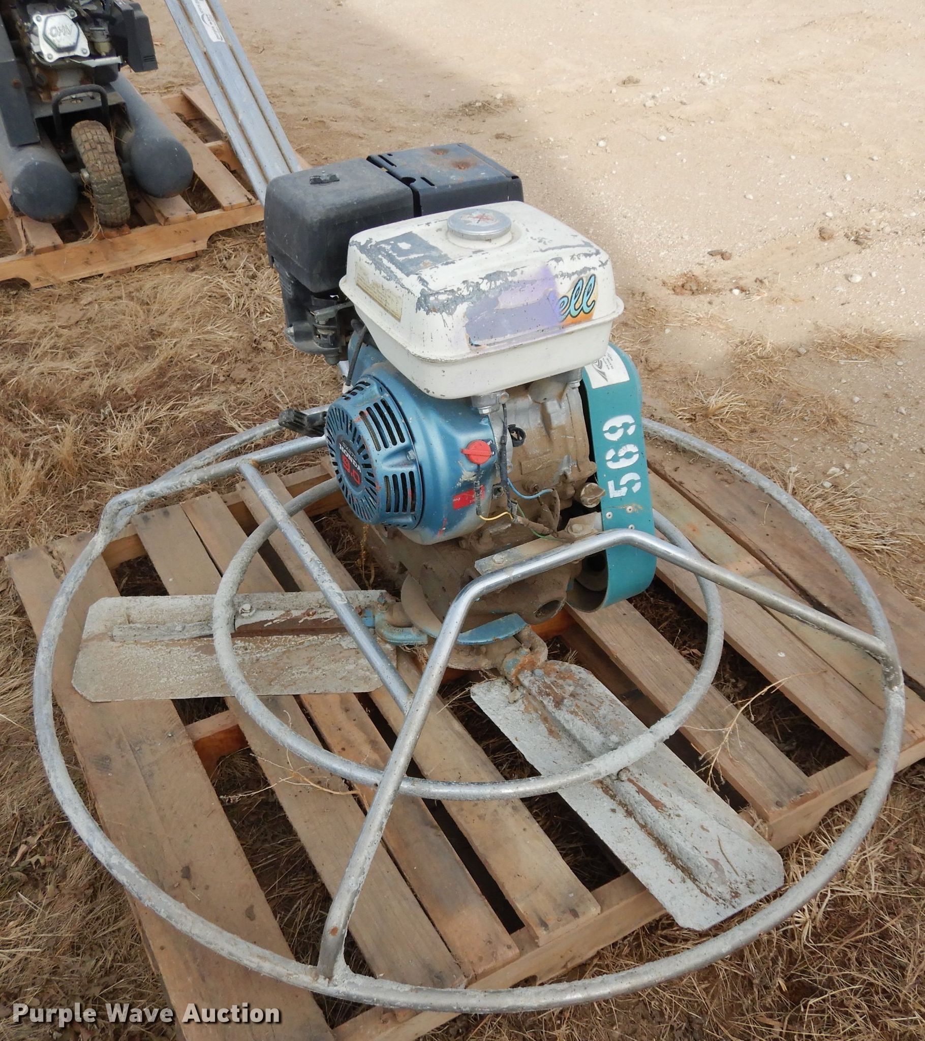 Purple Wave is selling a used Tools in Kansas. This item is a Tools with the following: Concrete trowel, 4'W, Honda GX270 gas engine, 9 HP,, Patriot 850 air compressor, Gas engine