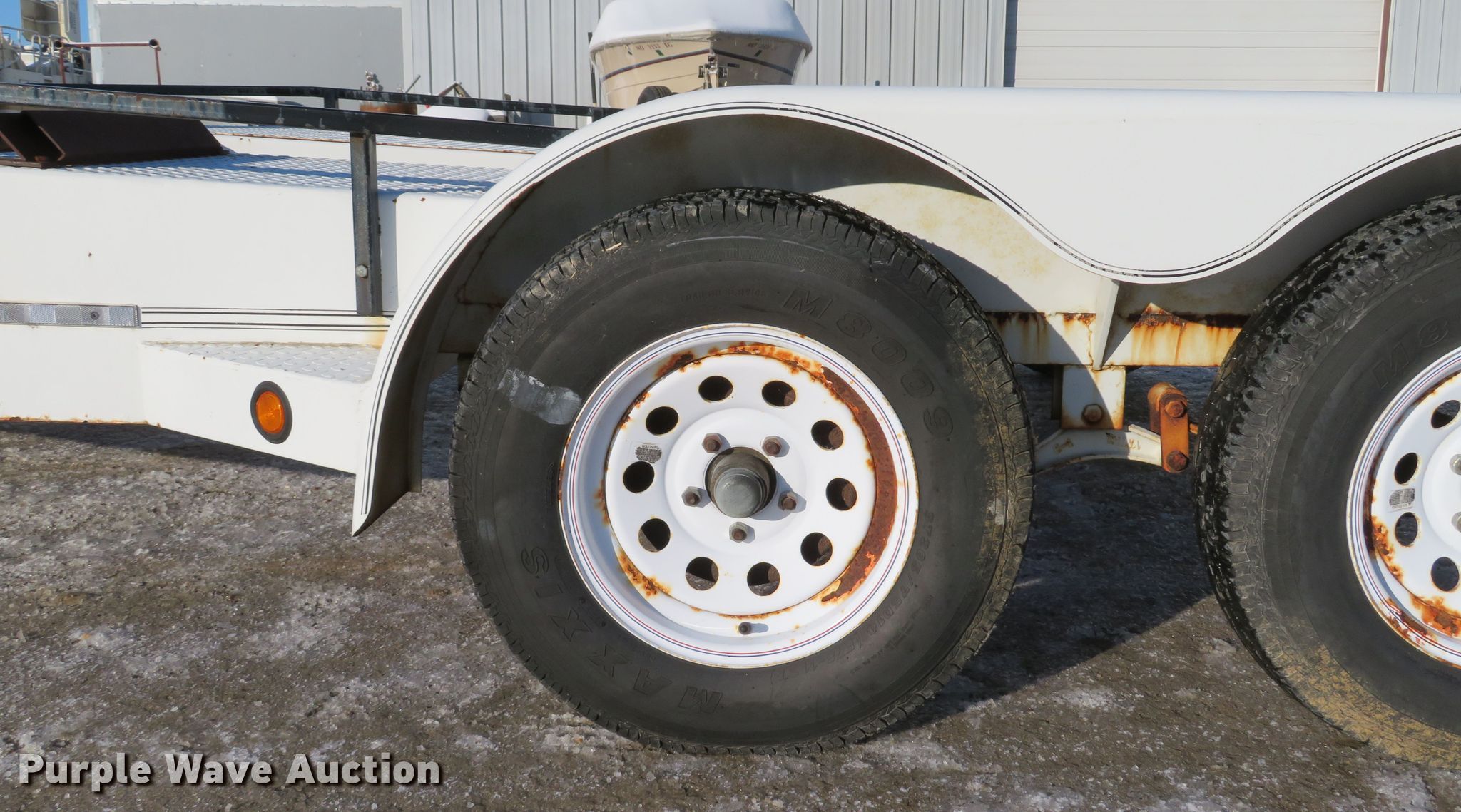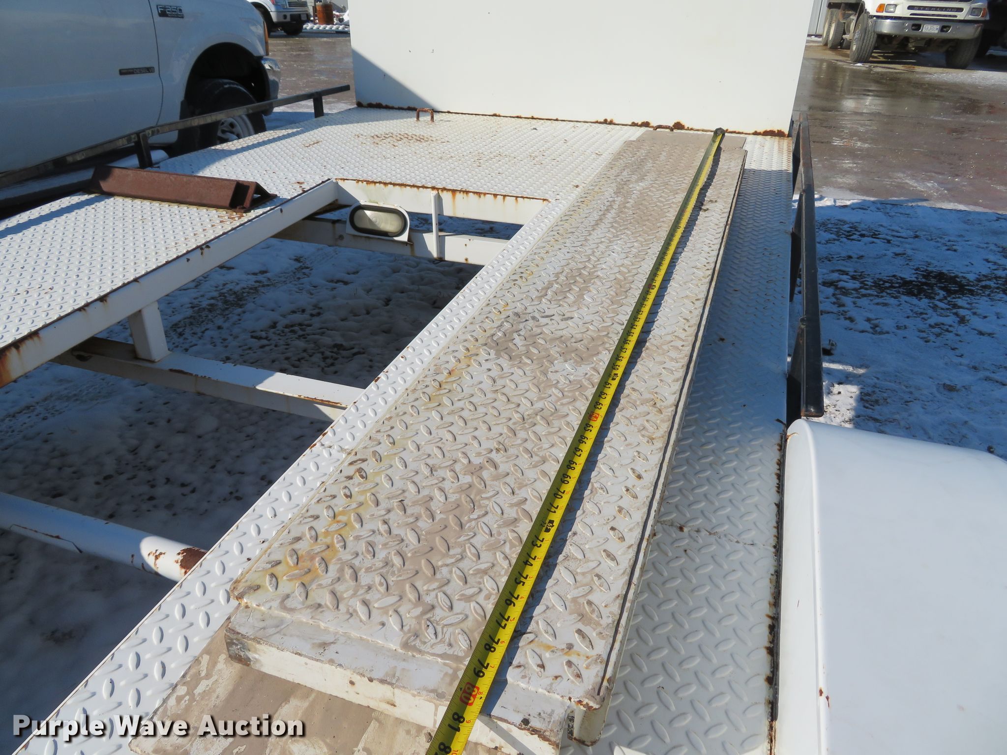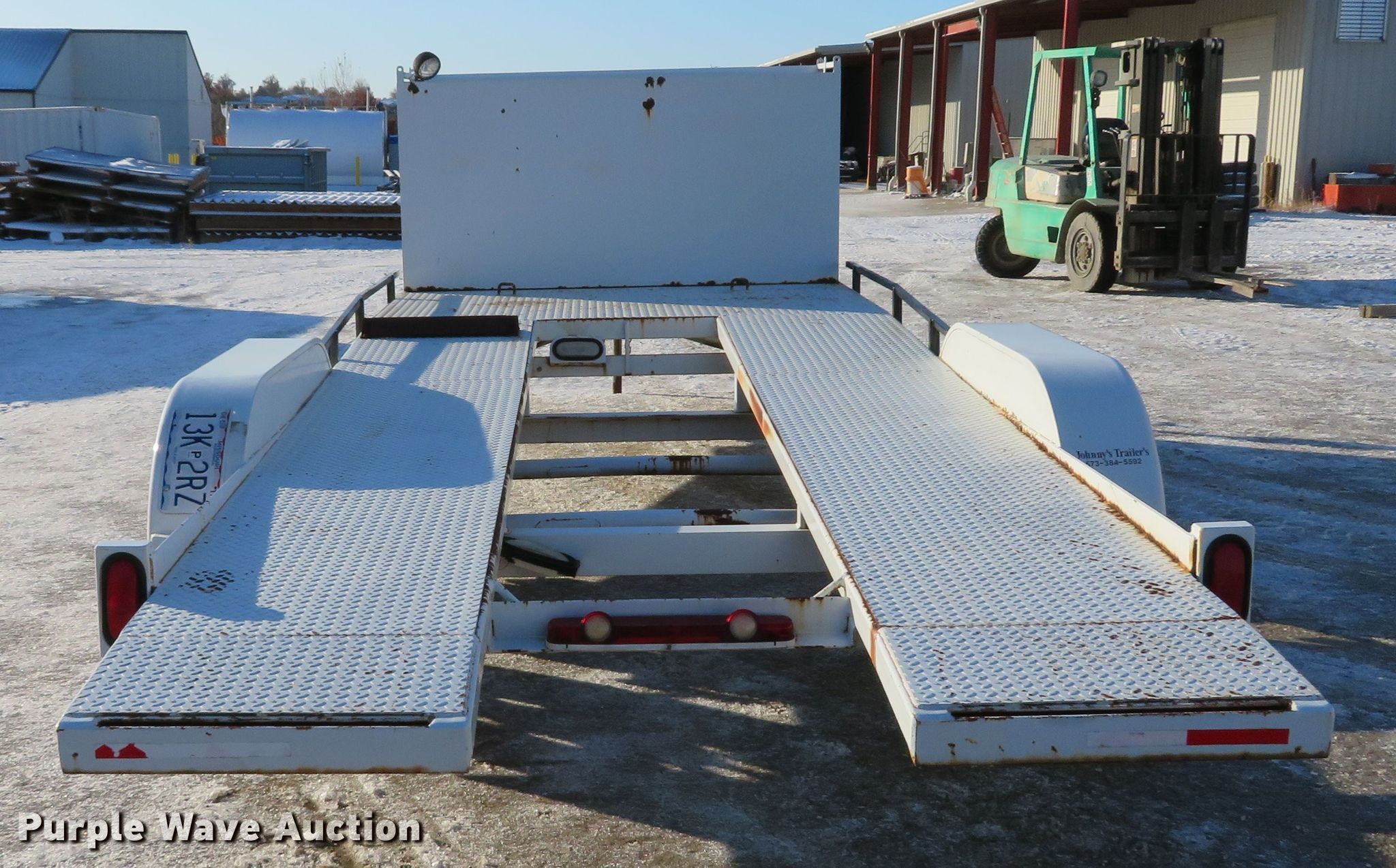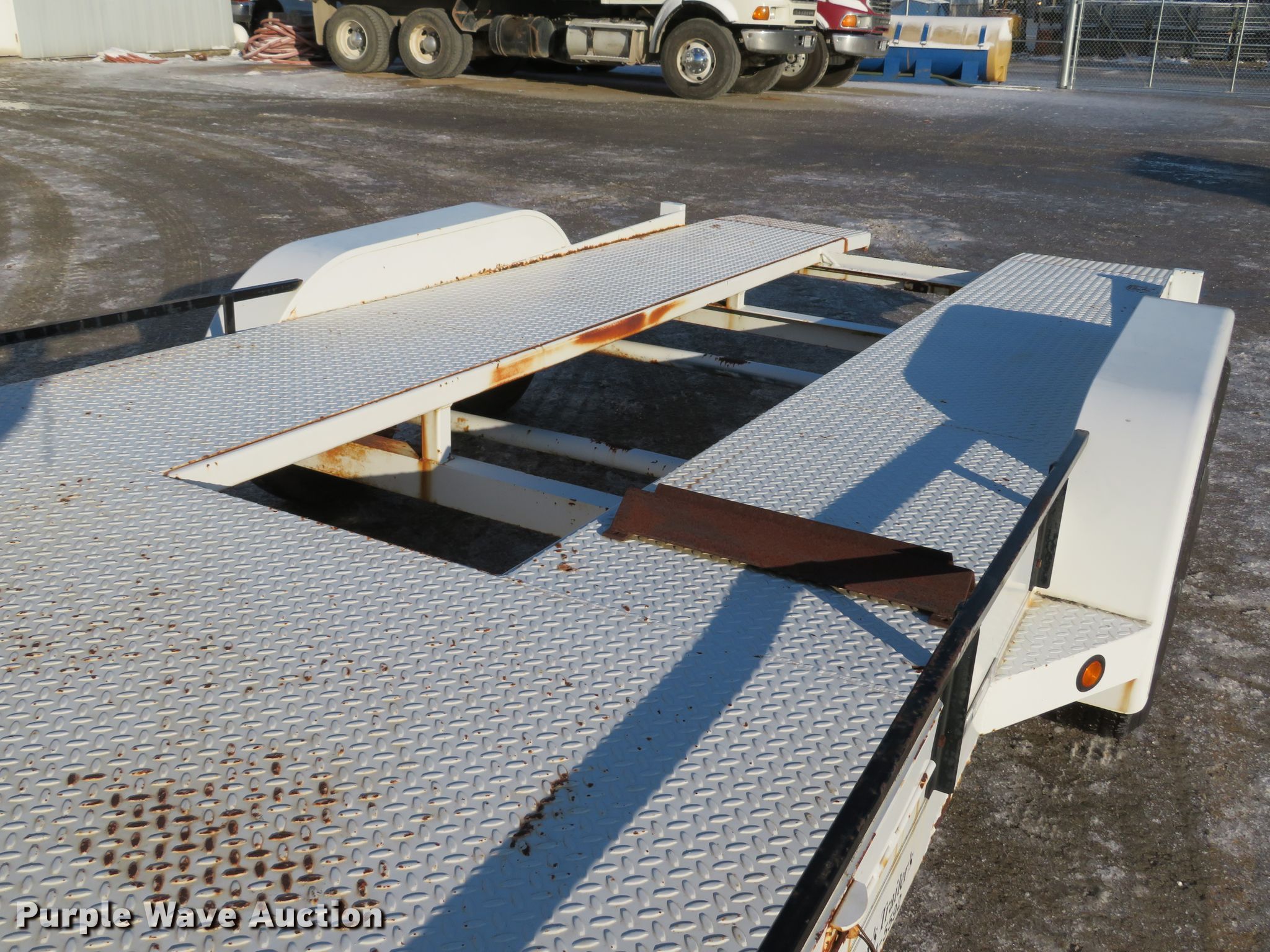 Purple Wave is selling a used Car or Utility Trailer in Missouri. This item is a 2001 Johnnys Truck & Trailers utility trailer with the following: 23.5'L x 96"W overall, 17'3"L x 77"W deck, 80"L ramps, Steel deck, 2" ball hitch, Jack stand, Spring suspension, Electric brakes, Tandem axle, Steel wheels, ST205/75R14 tires, GVWR 6,000 lbs, GAWR 3,500 lbs, Unit# T103