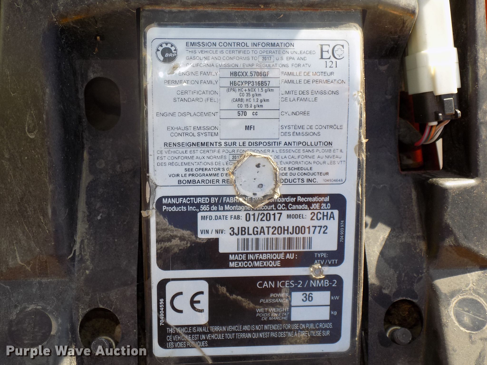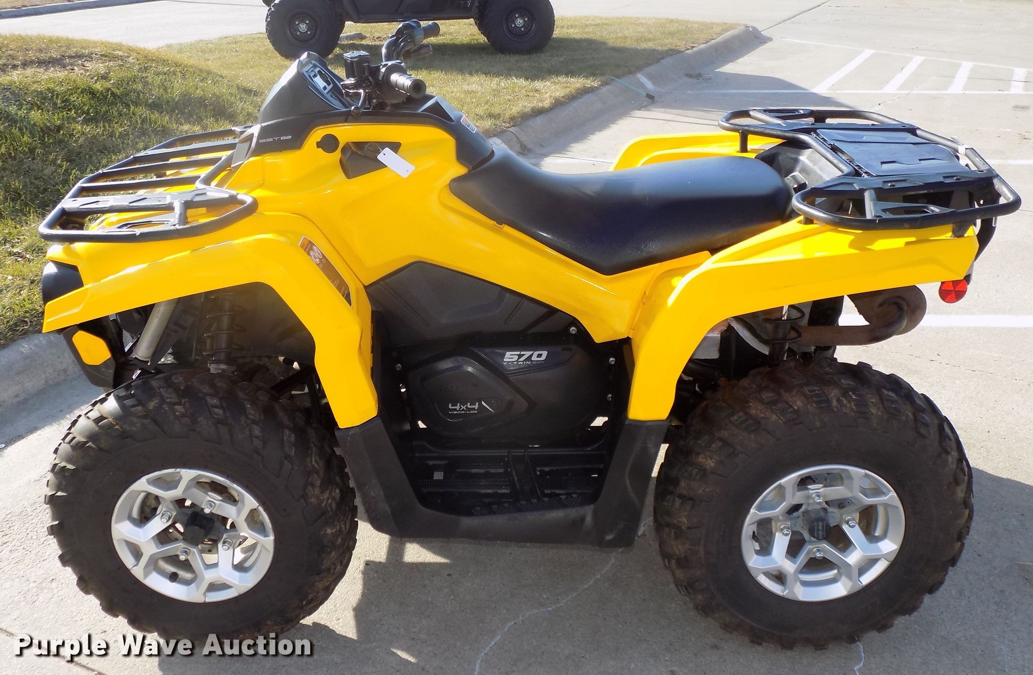 Purple Wave is selling a used ATV in Nebraska. This item is a 2017 Can-am Outlander 570 DPS ATV with the following: 3,011 miles on odometer, 691 hours on meter, 570CC two cylinder gas engine, Automatic transmission, Four wheel drive, Carlisle Trailwolf 26 x 8.00R12 tires, Carlisle Trailwolf 26 x 10.00R12 rear tires, Unit# CUA1772