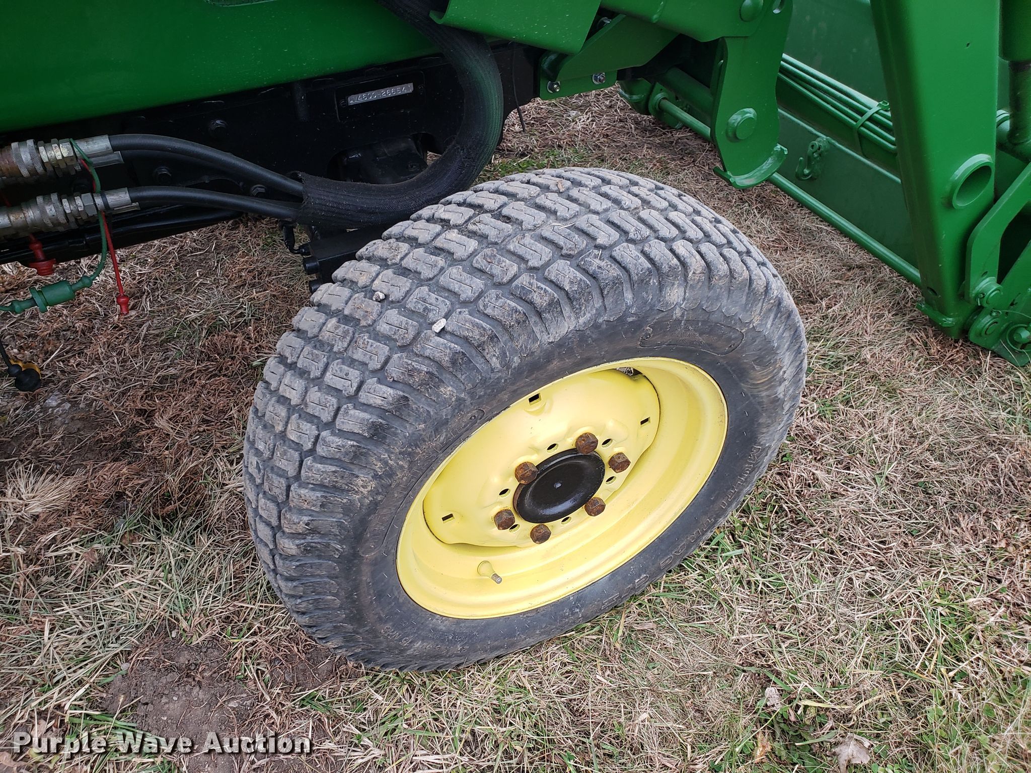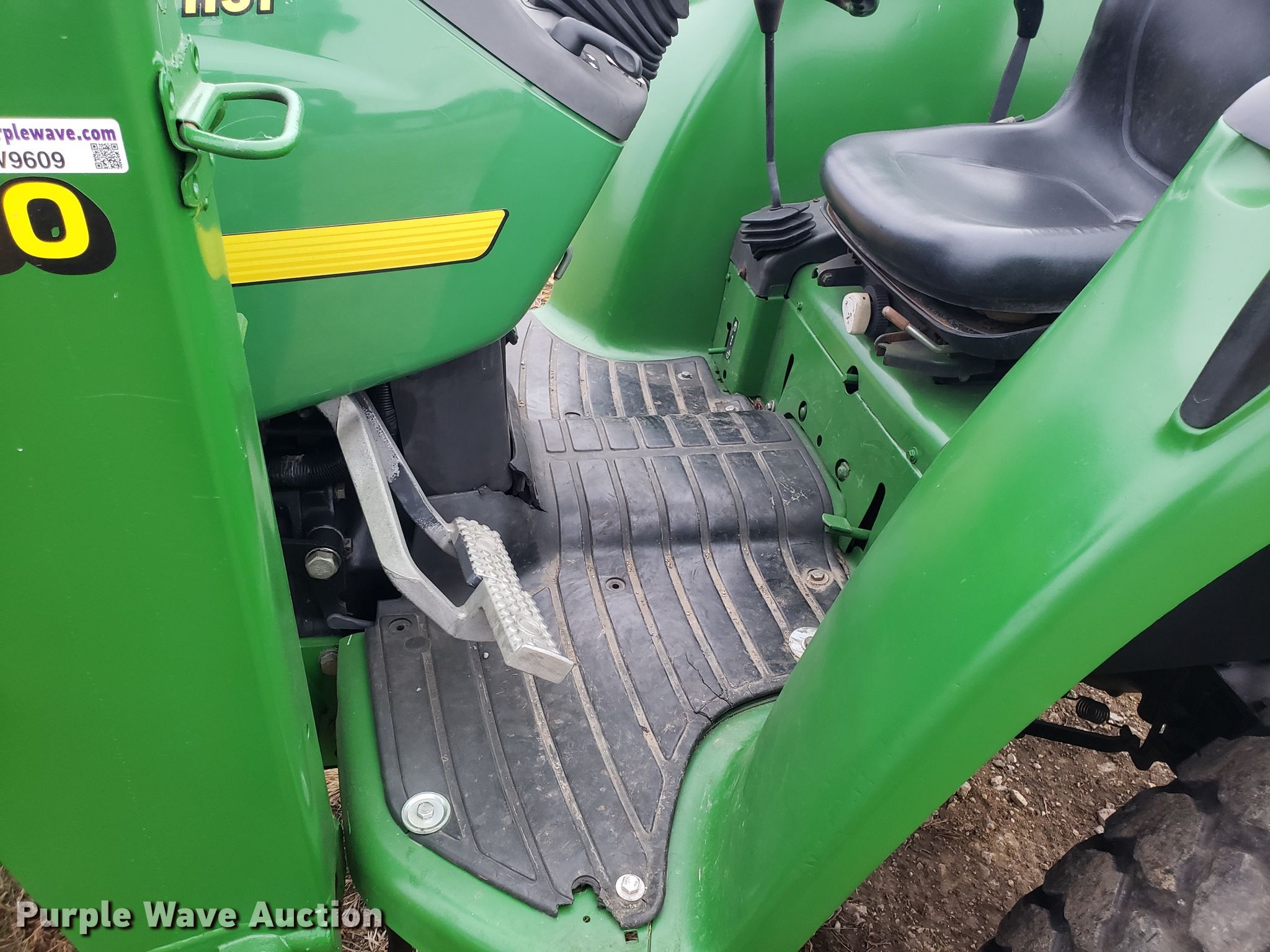 Purple Wave is selling a used Tractor in Missouri. This item is a John Deere 4600 tractor with the following: 3,221 hours on meter, Yanmar 4TNE84-JT-46 four cylinder diesel engine, Serial CH40W0D155546, Hydrostatic transmission, John Deere 460 loader, 74"W bucket, Joystick controls, Three point, Top link, 540 PTO, 27x8.50x15 front tires, 44x18x20 rear tires, Serial LV4600H26651