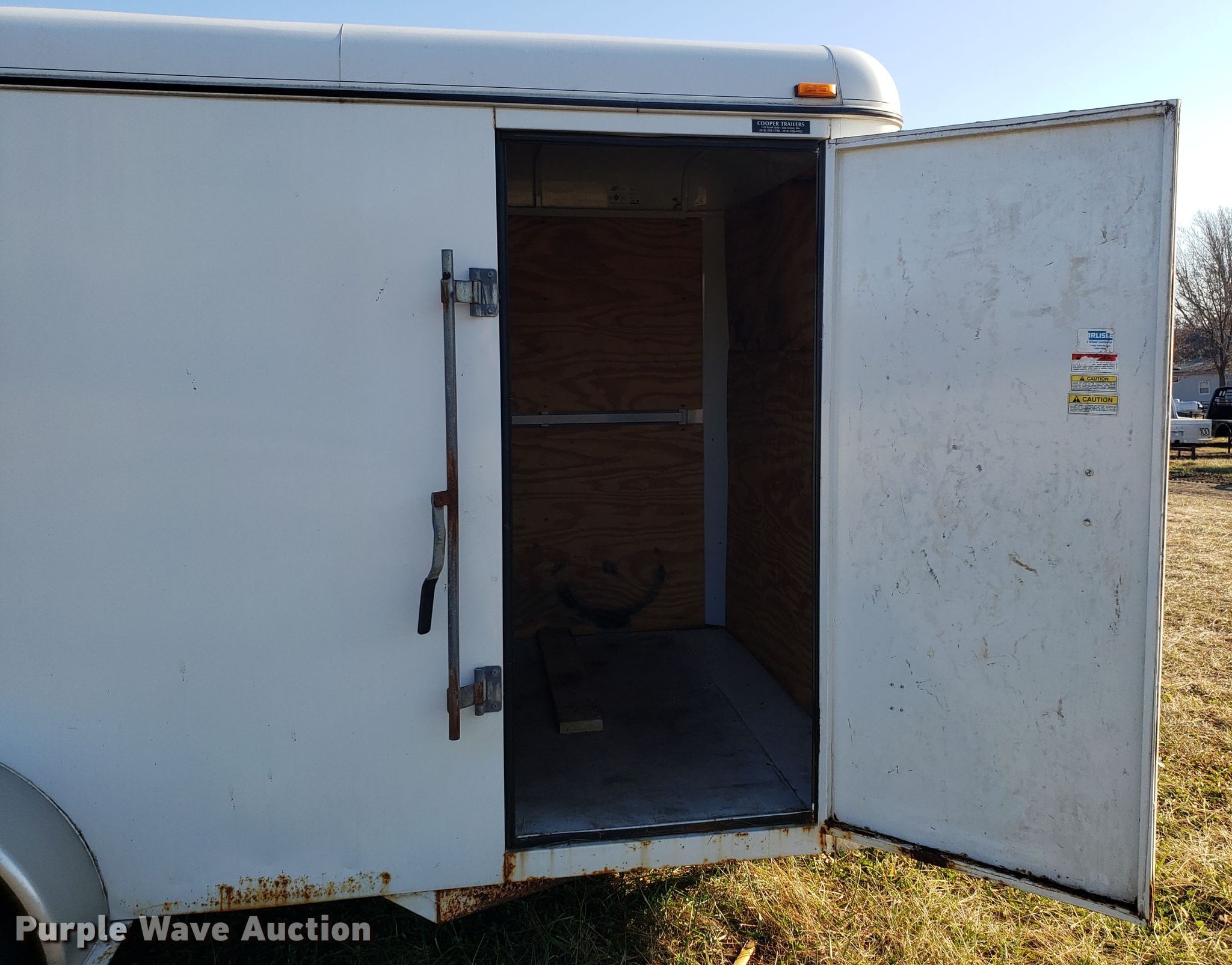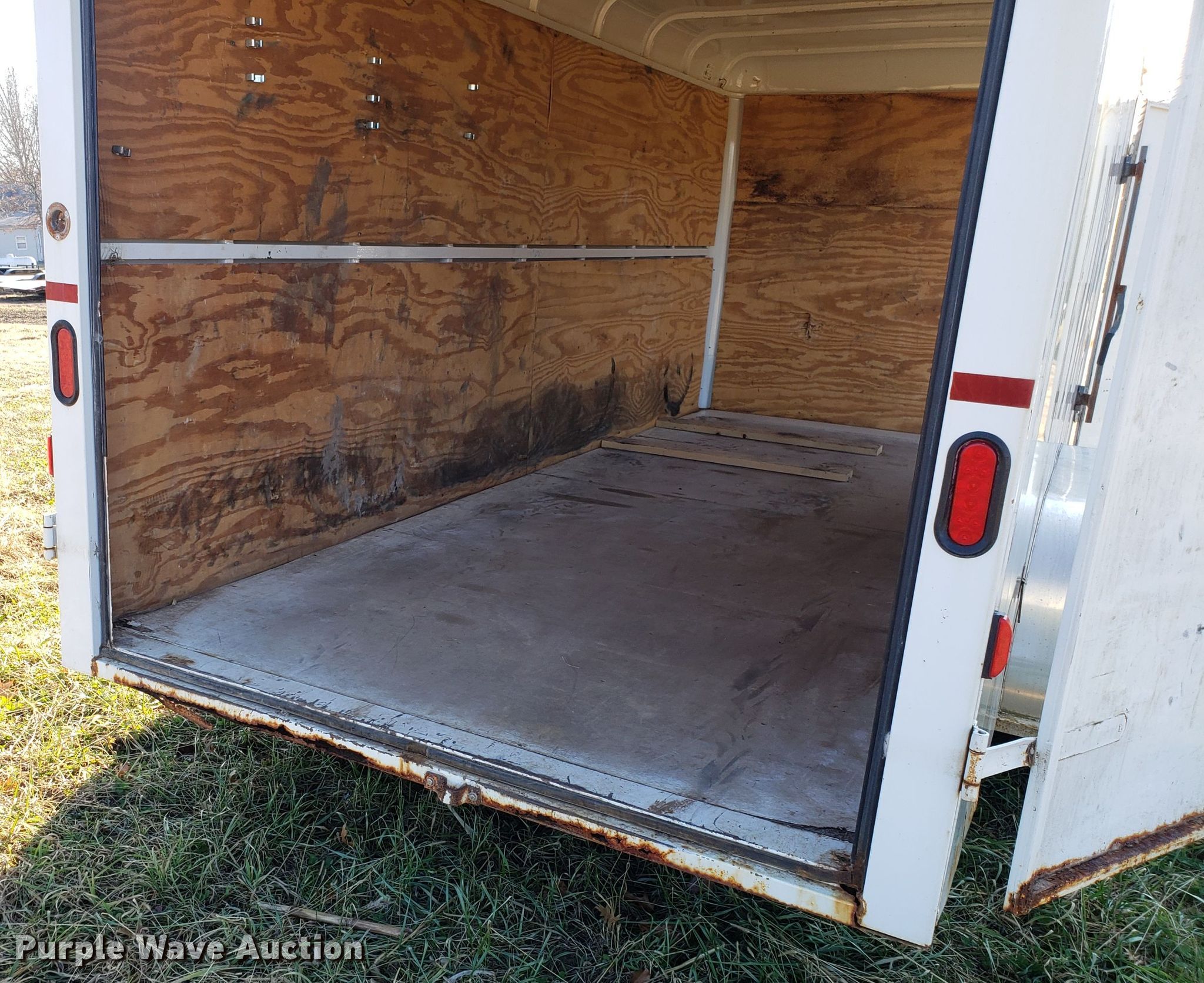 Purple Wave is selling a used Enclosed Cargo Trailer in Missouri. This item is a 2004 Cm Trailers enclosed cargo trailer with the following: 16'L x 77"W x 80"H overall, 2 5/16" ball hitch, Single leg landing gear, Torsion suspension, Electric brakes, Tandem axle, 225/75R15 tires, GVWR 8,600 lbs