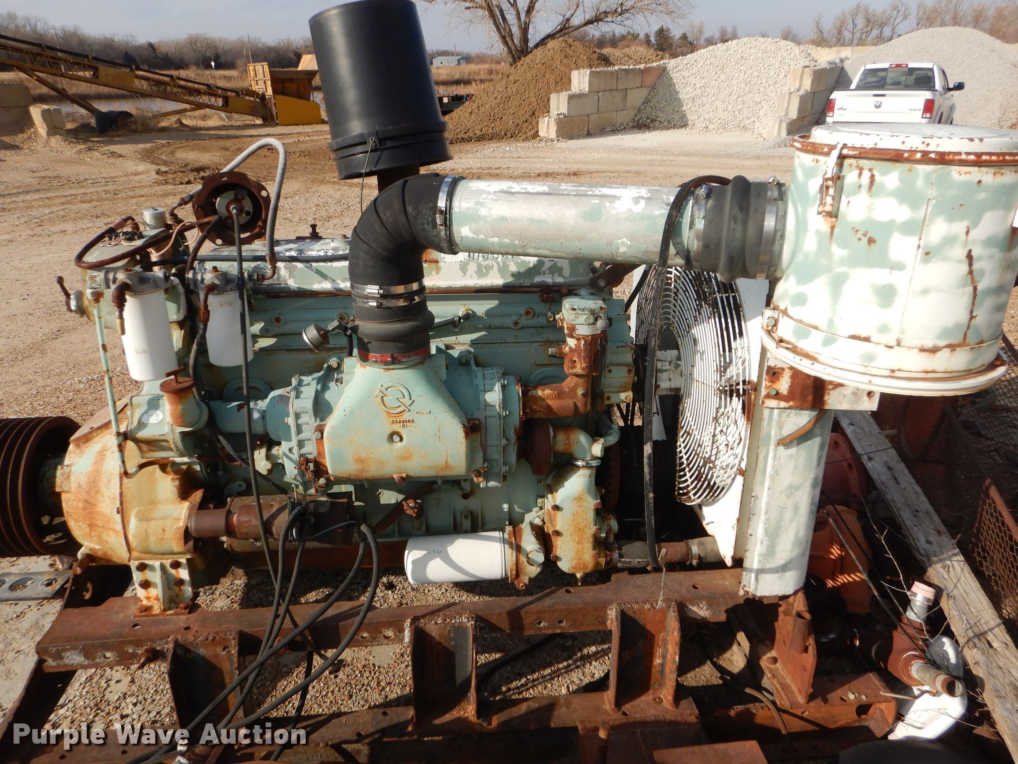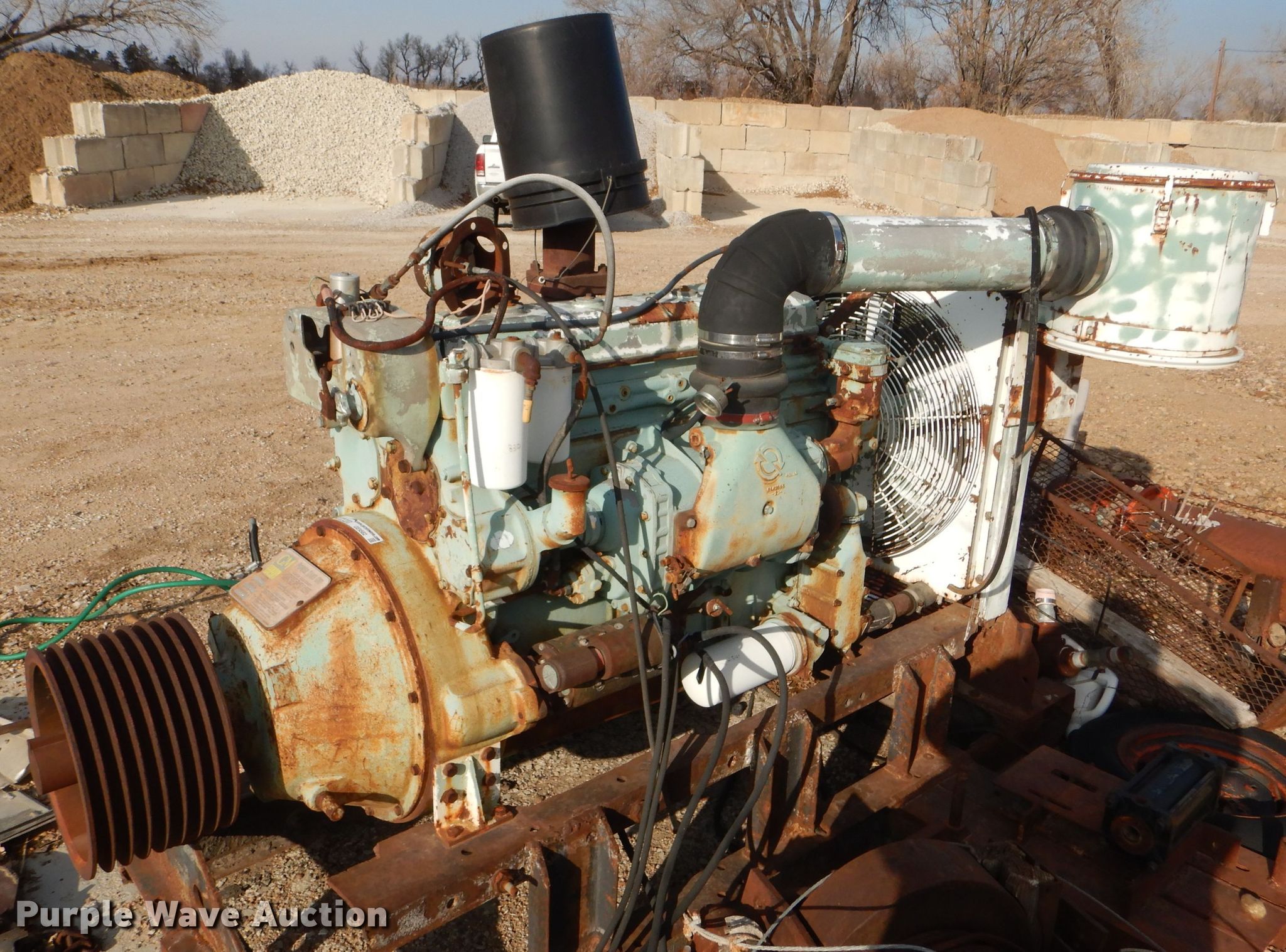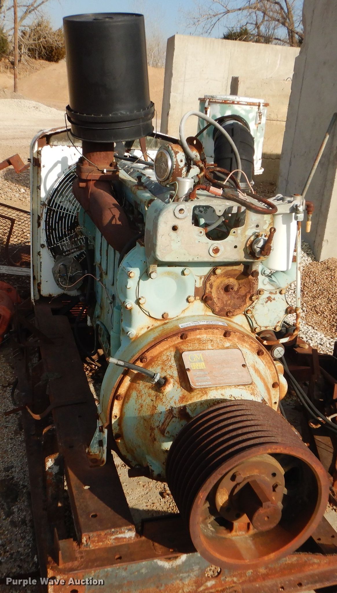Purple Wave is selling a used Engine in Kansas. This item is a Detroit Diesel 671 7.0L six cylinder diesel engine with the following: 2,700 hours on meter, Radiator, Skid mounted, Unknown operating condition