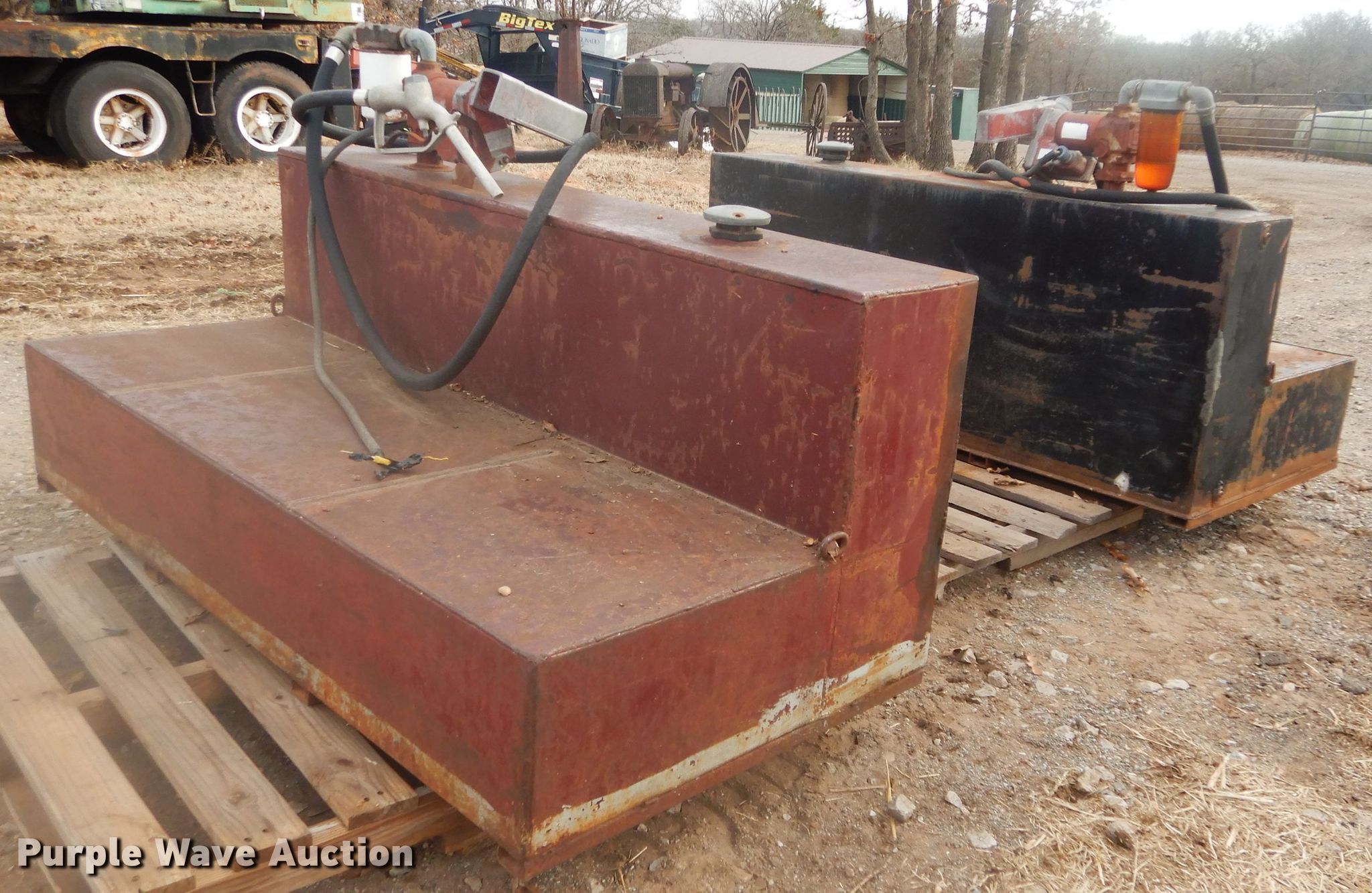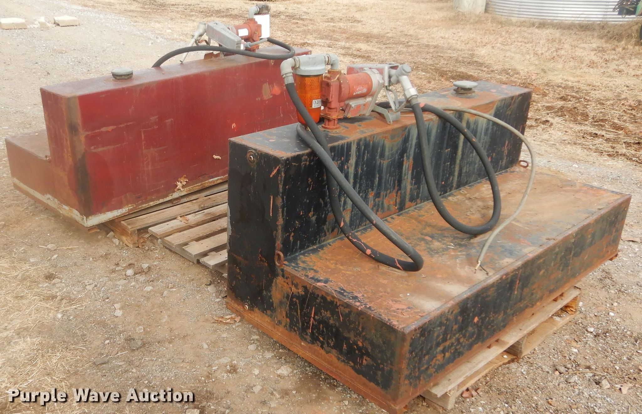Purple Wave is selling a used Fuel and Lube in Oklahoma. This item is a (2) L-shaped fuel tanks with the following: 100 gallon capacity, Fill-Rite 1200A pumps, 1/4 HP, 2,600 RPM