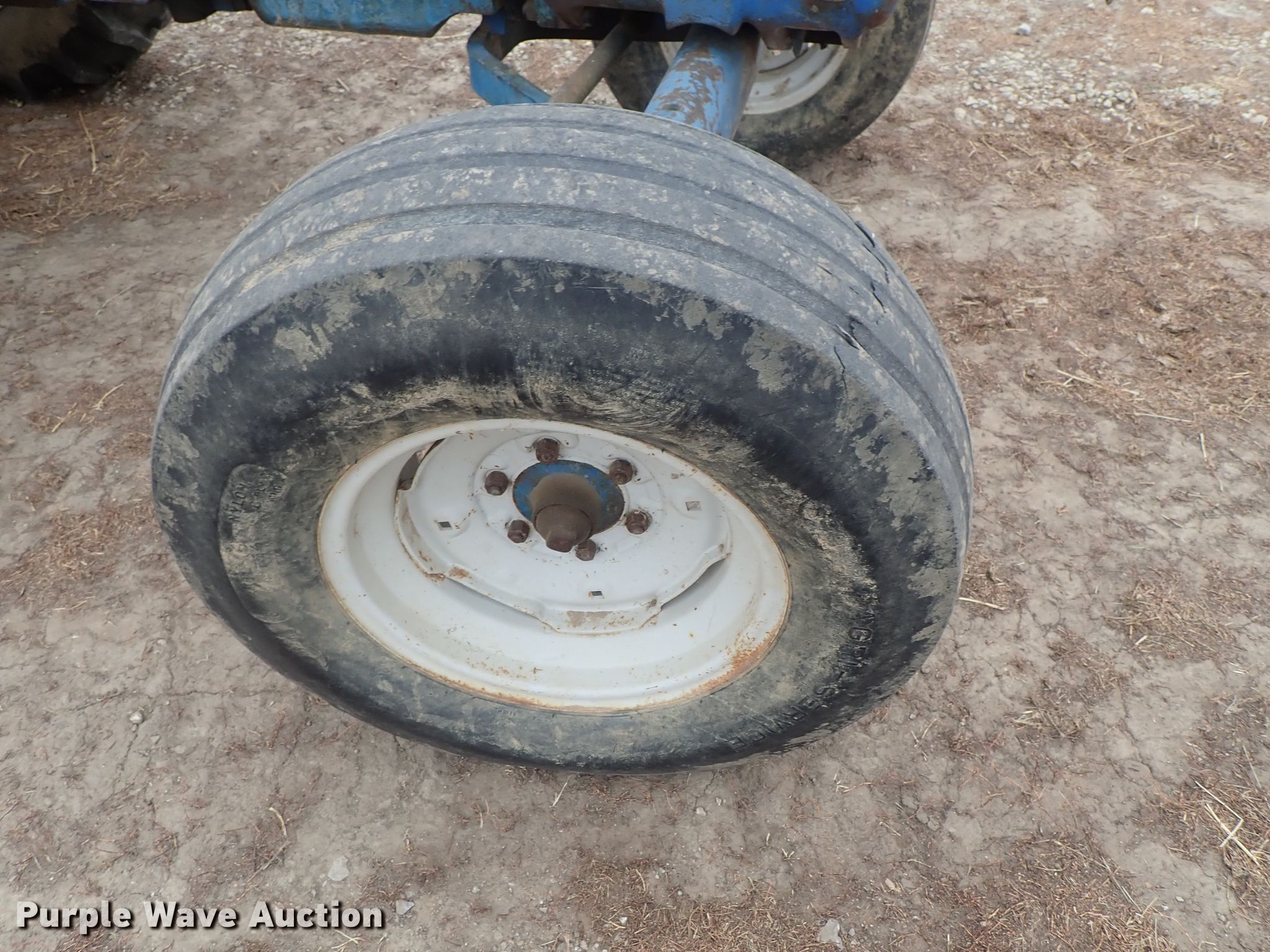 Purple Wave is selling a used Tractor in Kansas. This item is a Ford 5000 tractor with the following: 3,553 hours on meter, Ford 3.8L four cylinder gas engine, Manual transmission, 8F-2R gears, Three point, 540 PTO, (2) sets rear hydraulic remotes, 11L-16 fornt tires, 15.5-38 rear tires