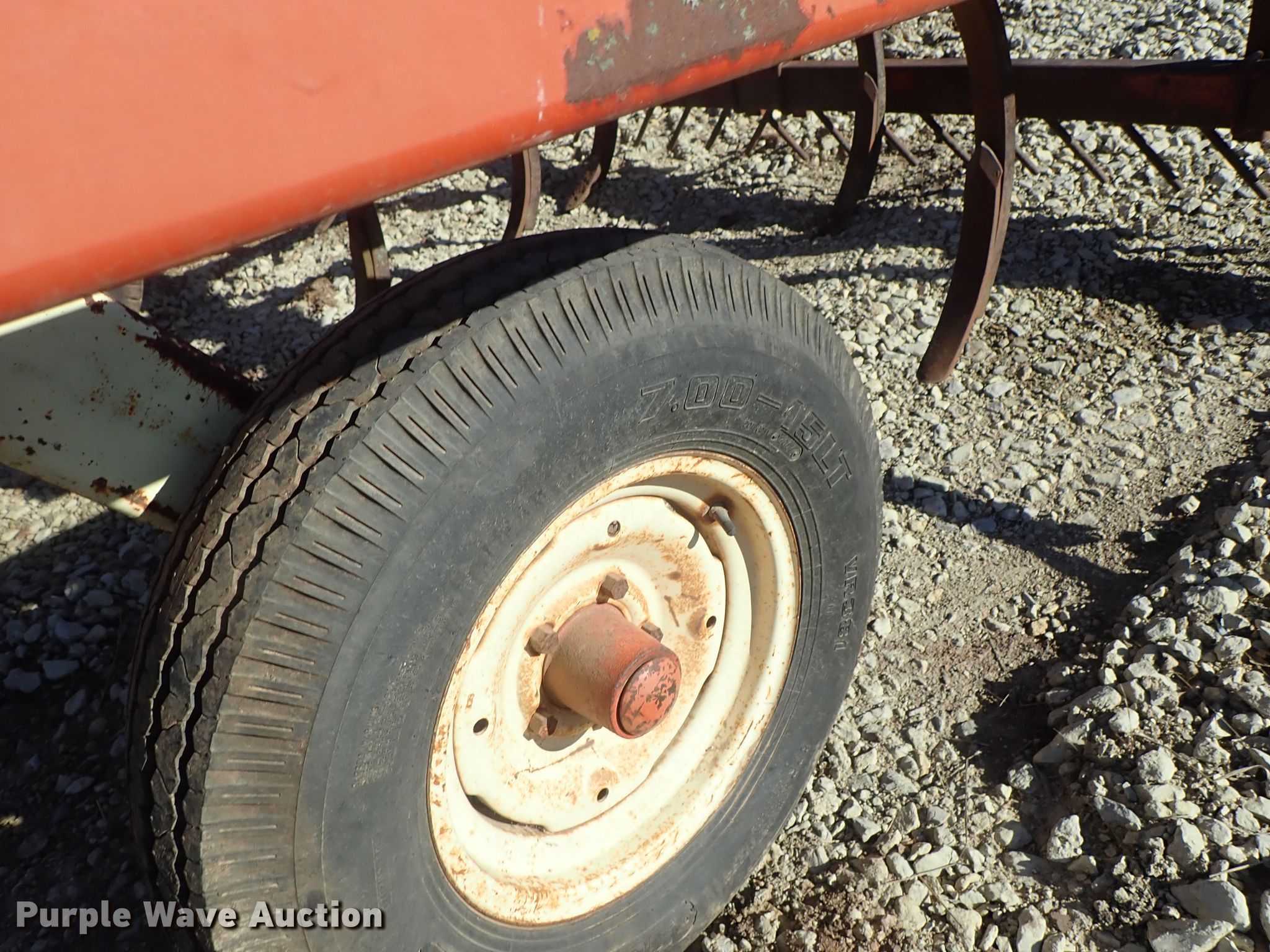 Krause chisel. Approx. 11.5' work width, Rear spike tooth harrow, Hydraulic lift, 7.00-15 tires. Rapid Services. Viola, KS 67149