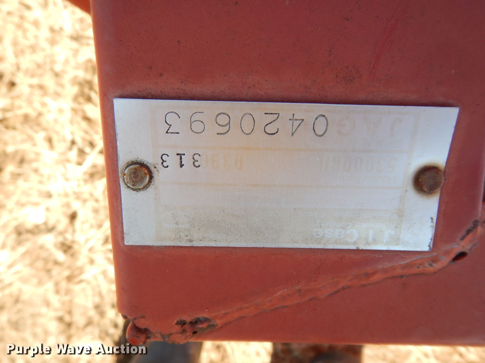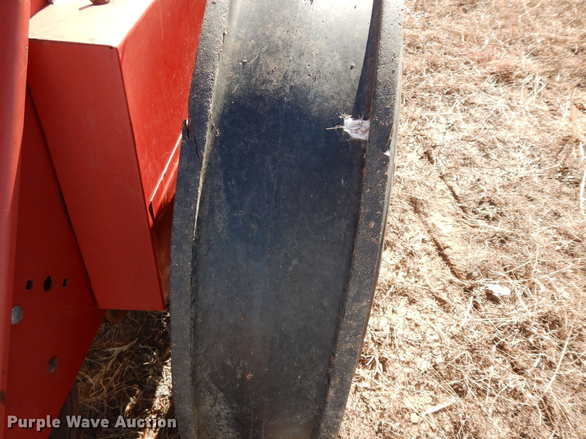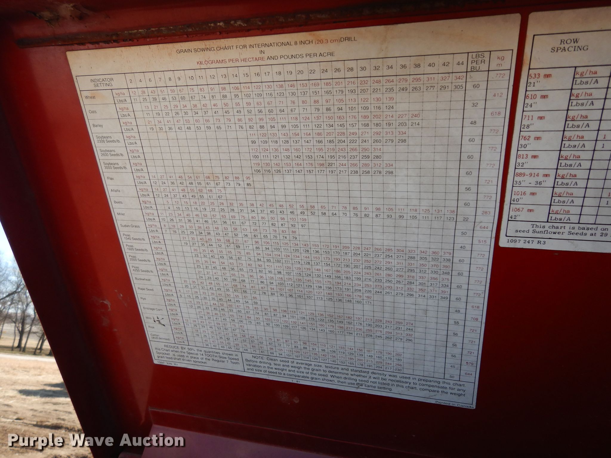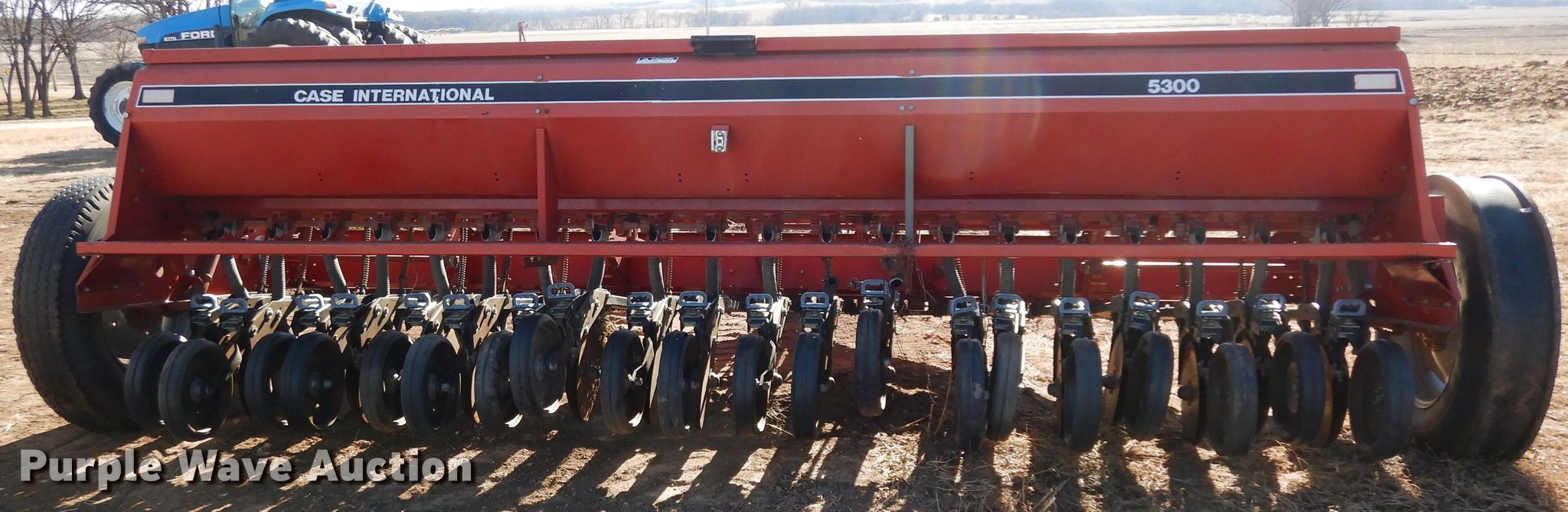 Purple Wave is selling a used Grain Drill or Seeder in Kansas. This item is a Case IH 5300 grain drill with the following: 13'W, 20 row units, 8" row spacing, Ground meter drive, Double disk openers, Single closing system, 8.25-20 tires, Some hoses may need replaced, Serial JAG0420693