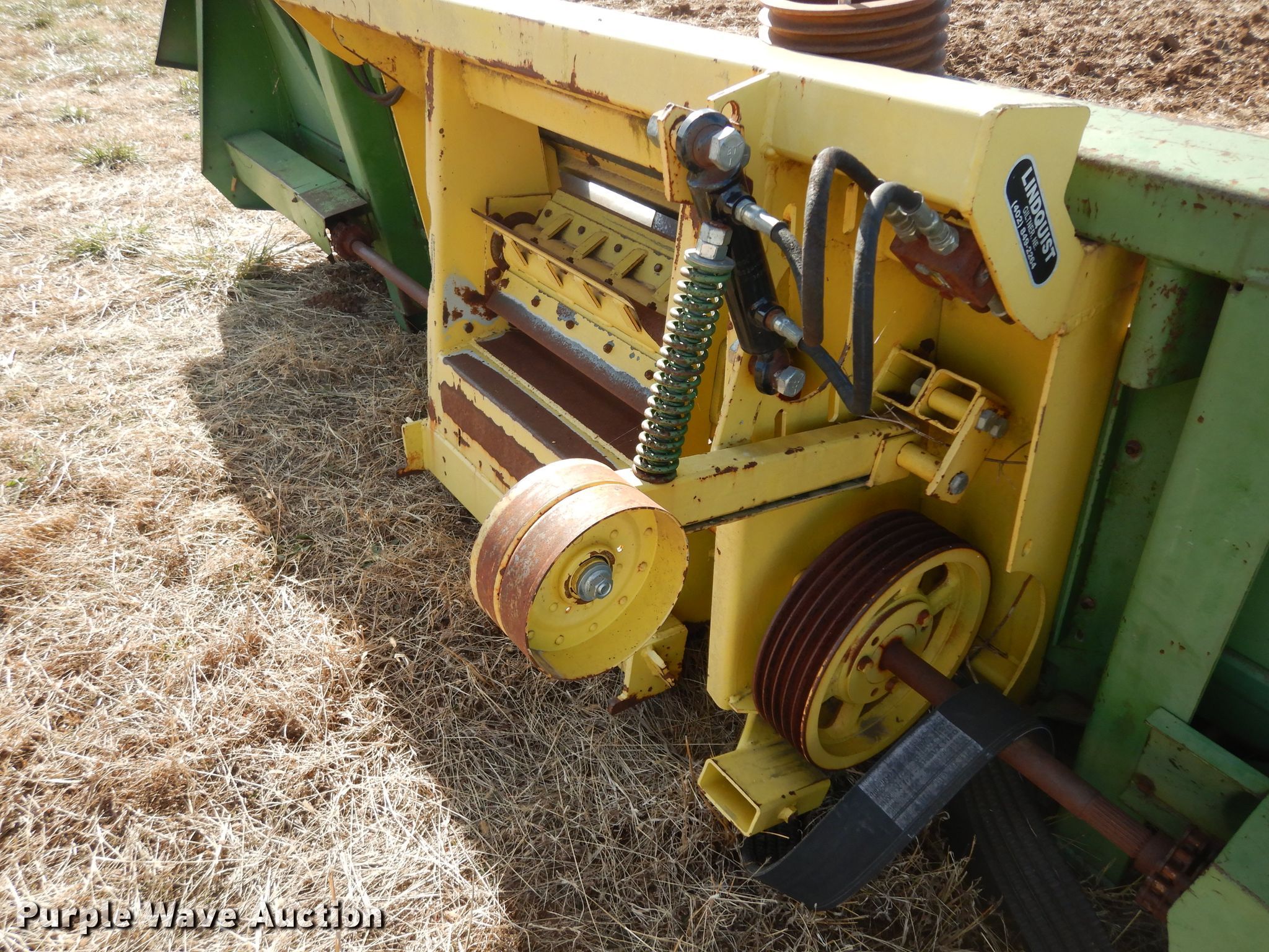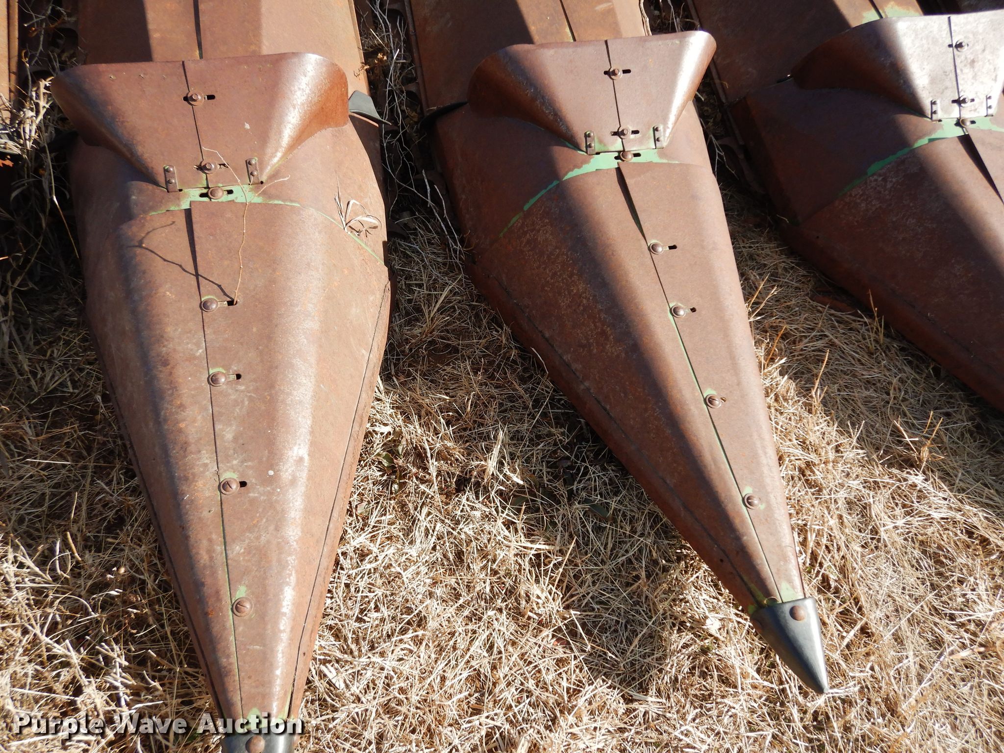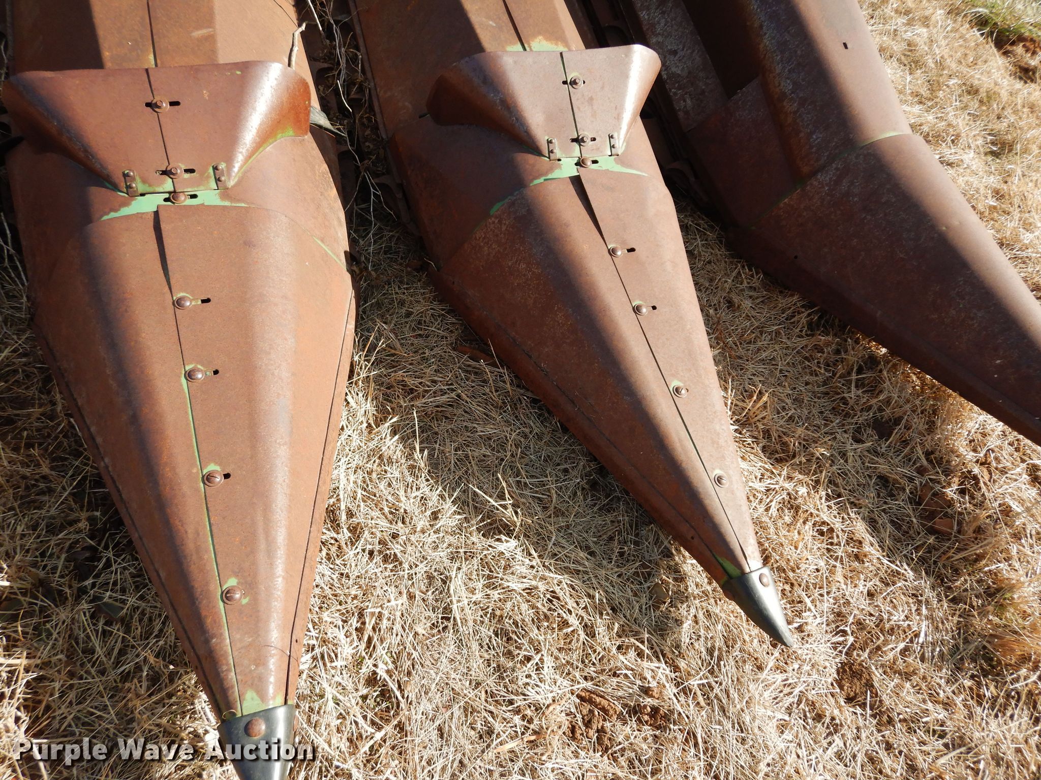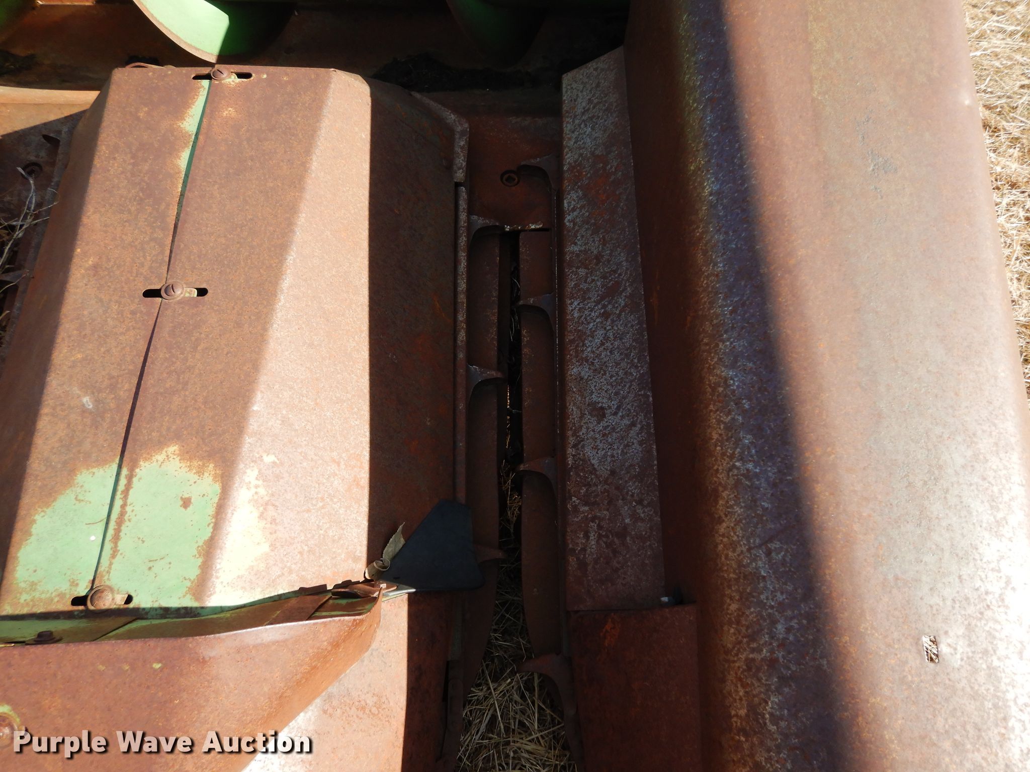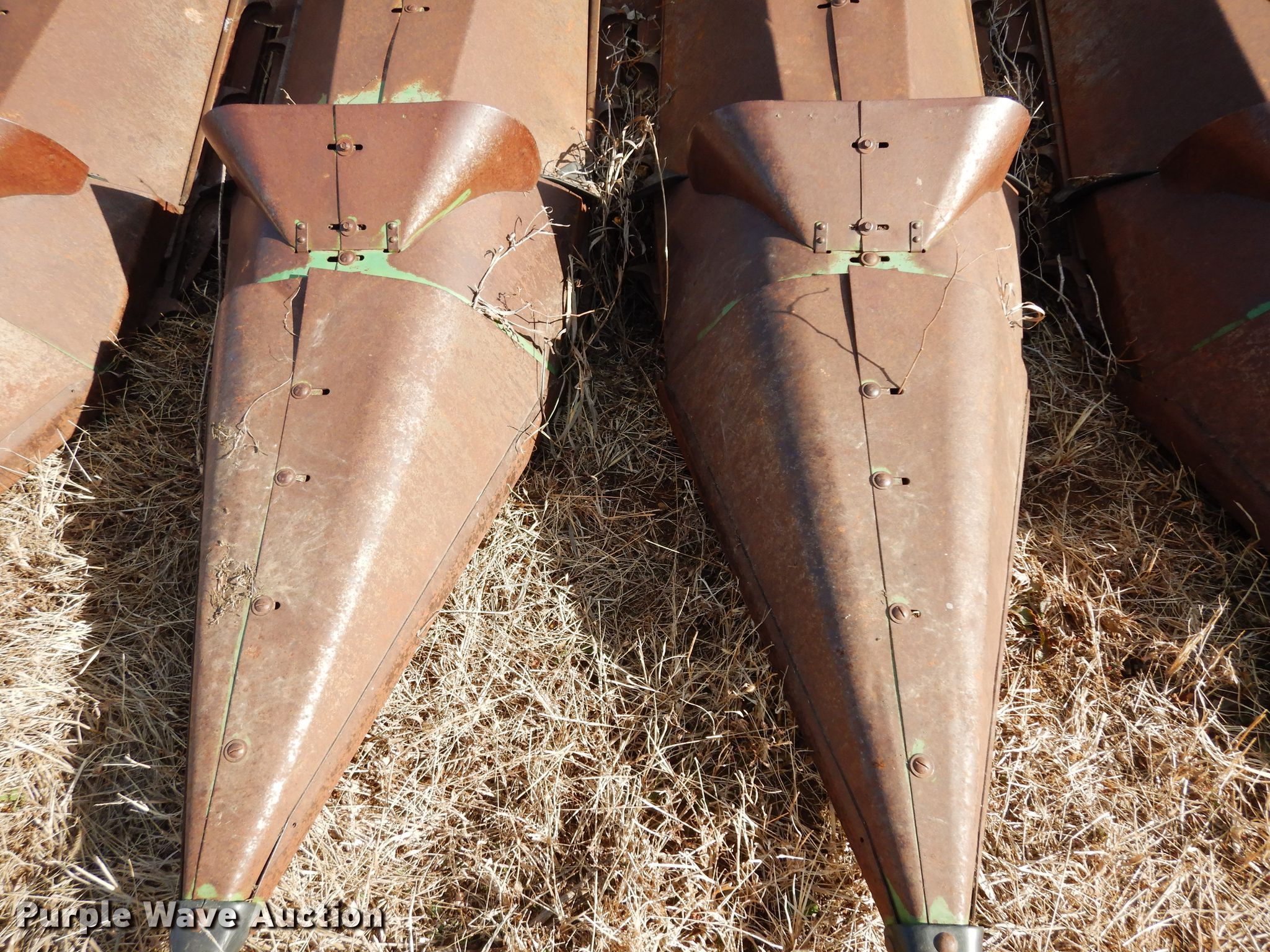 Purple Wave is selling a used Corn or Row Head in Kansas. This item is a John Deere 643 corn head with the following: 16'W, Six rows, 30" row spacing, Corn savers, Lindquist adapter