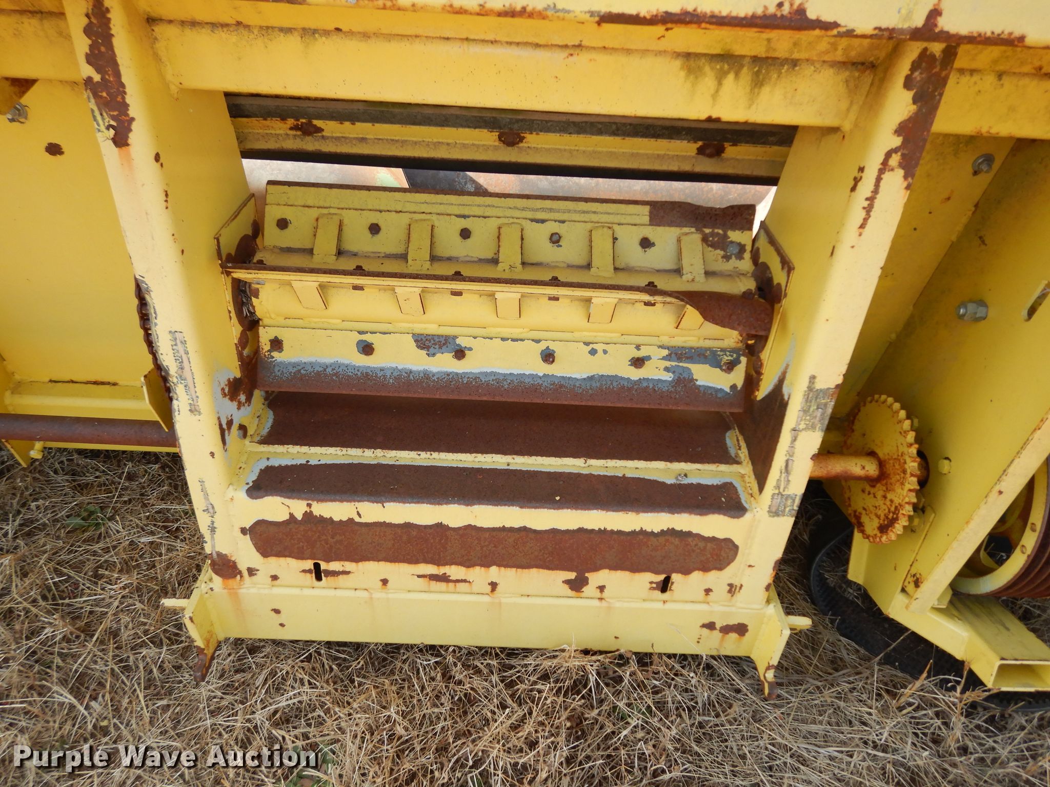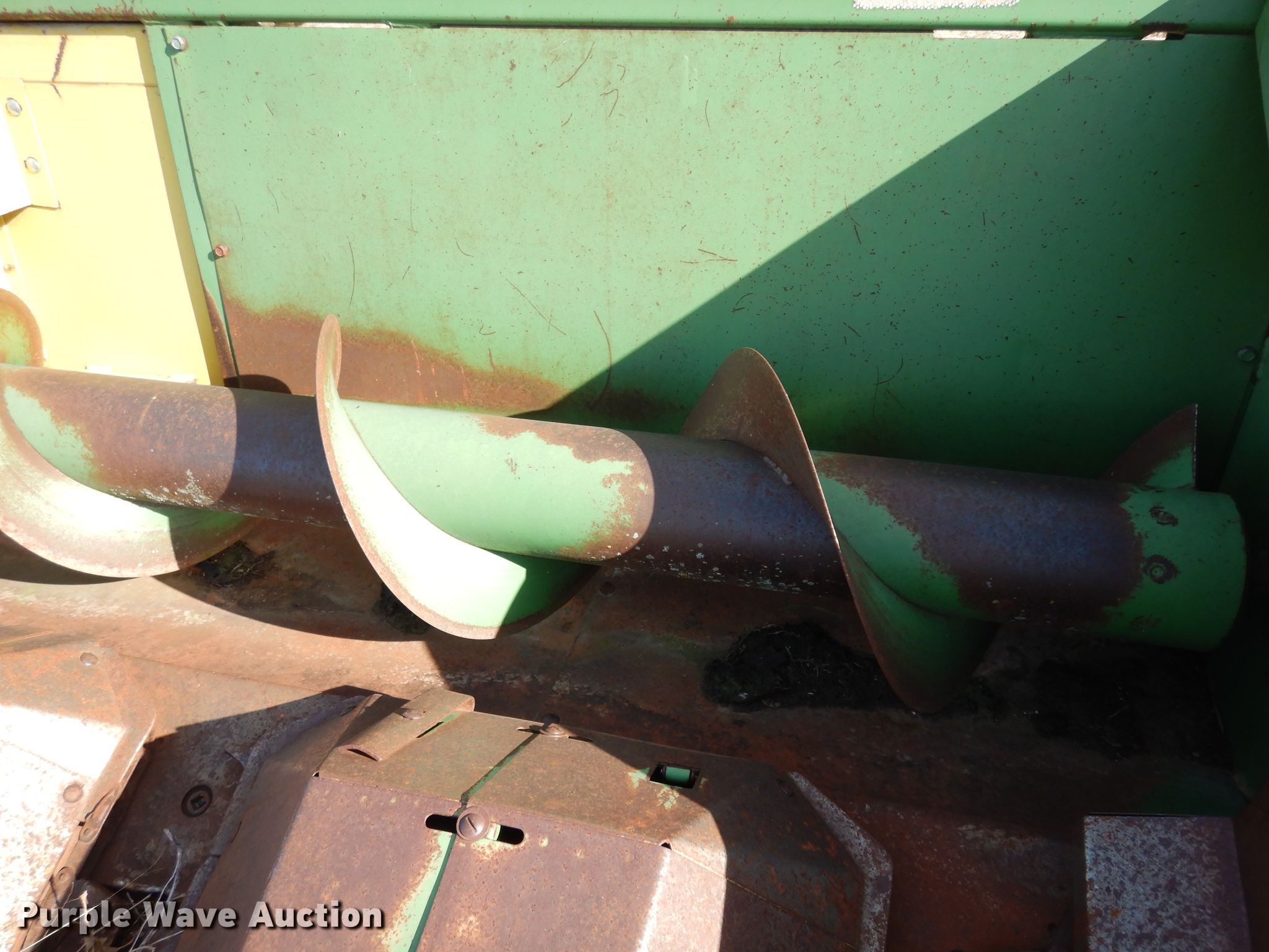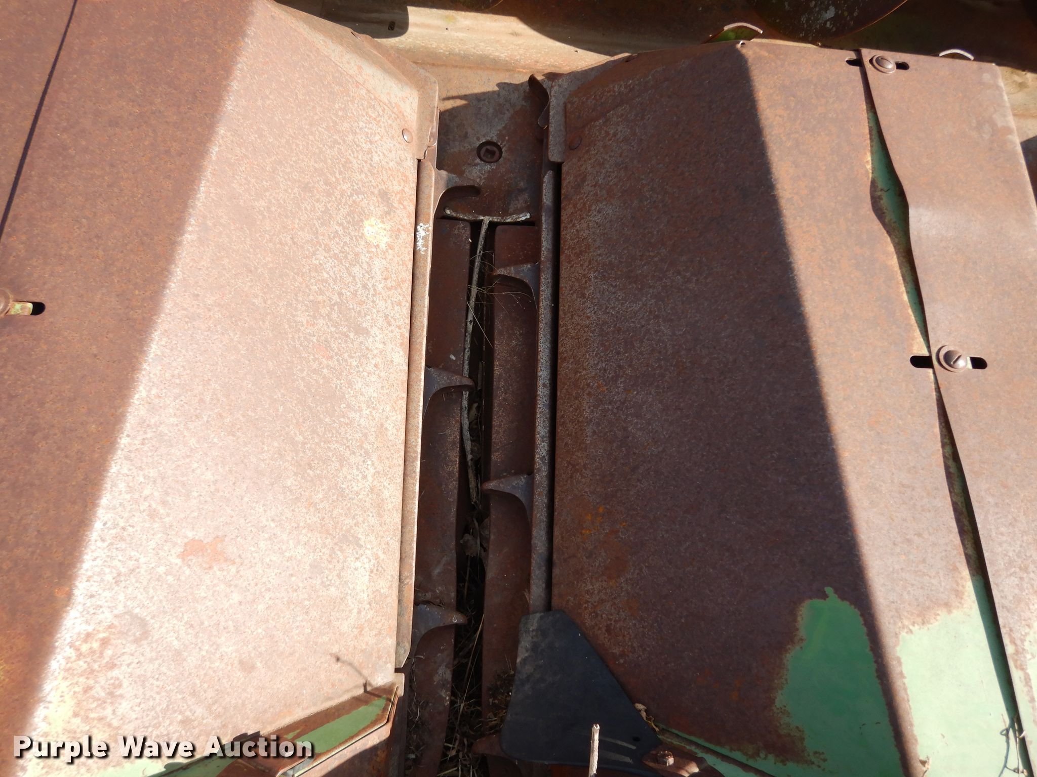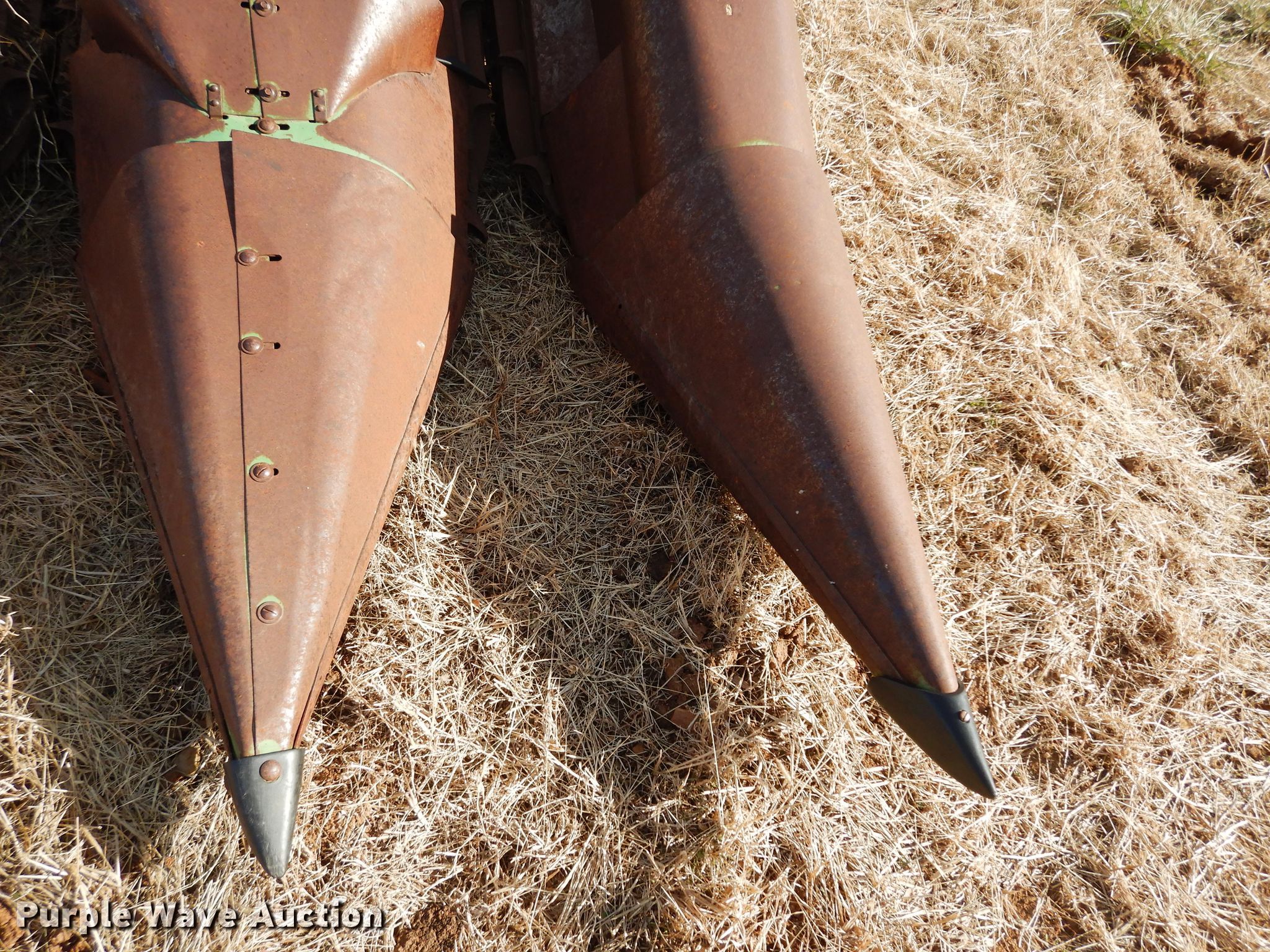 Purple Wave is selling a used Corn or Row Head in Kansas. This item is a John Deere 643 corn head with the following: 16'W, Six rows, 30" row spacing, Corn savers, Lindquist adapter