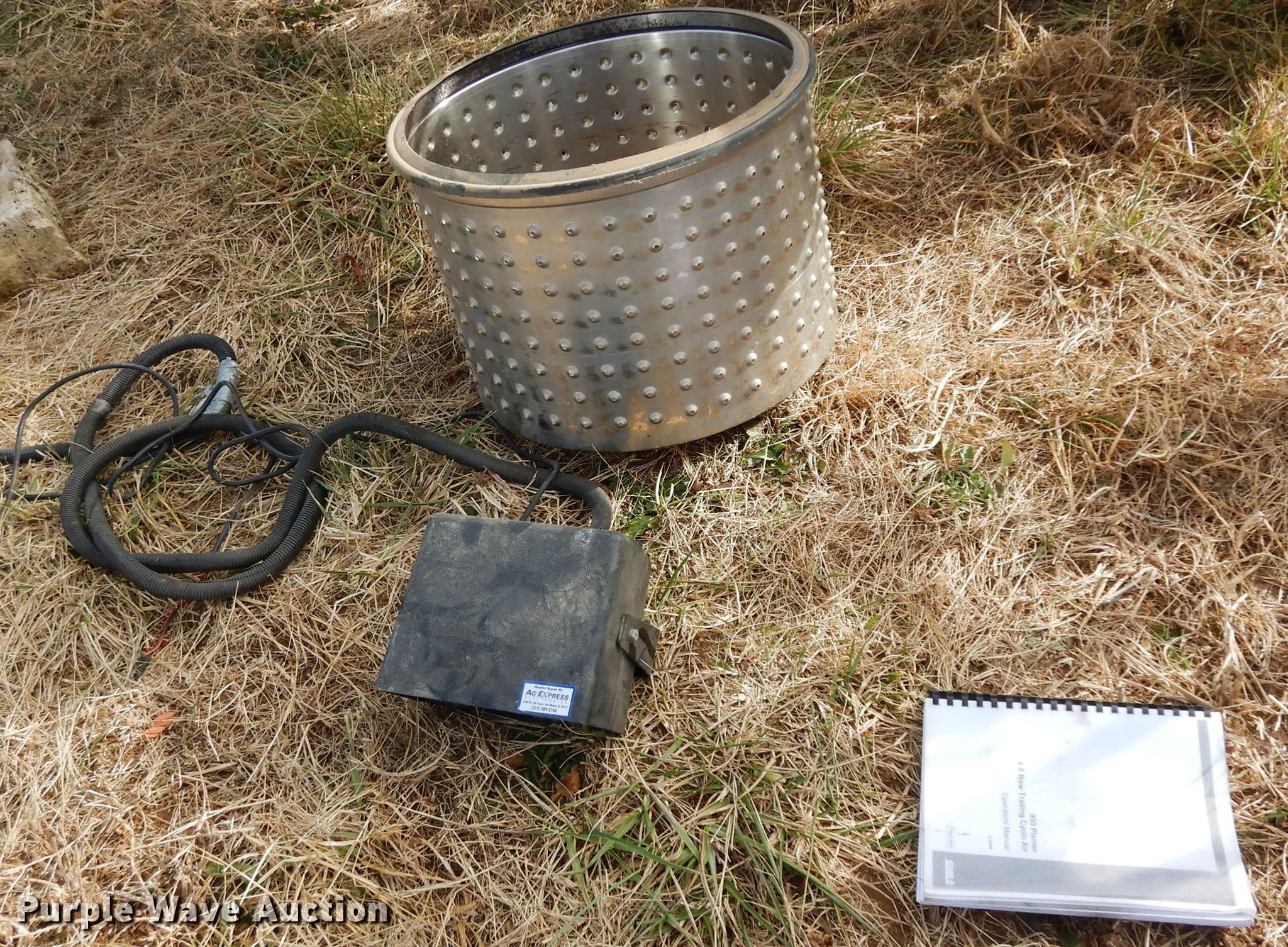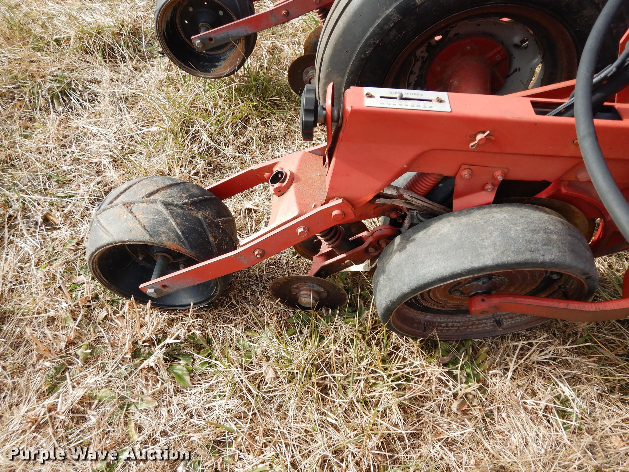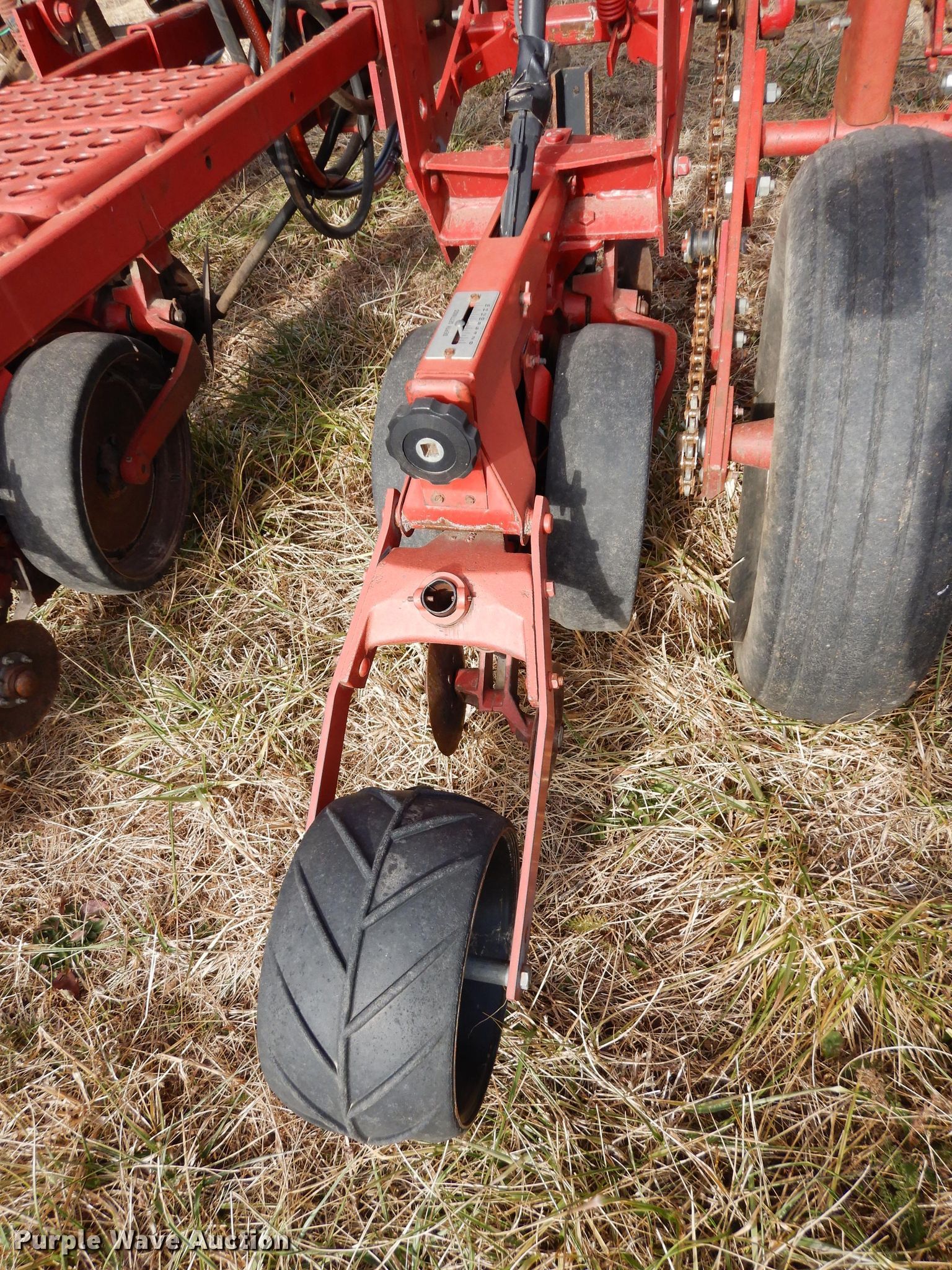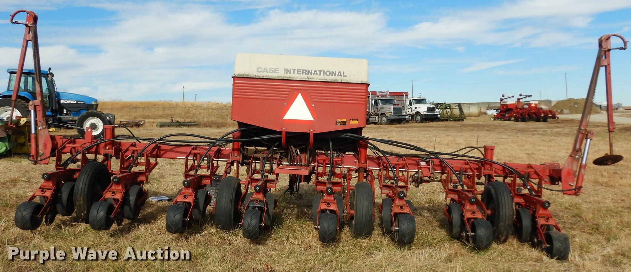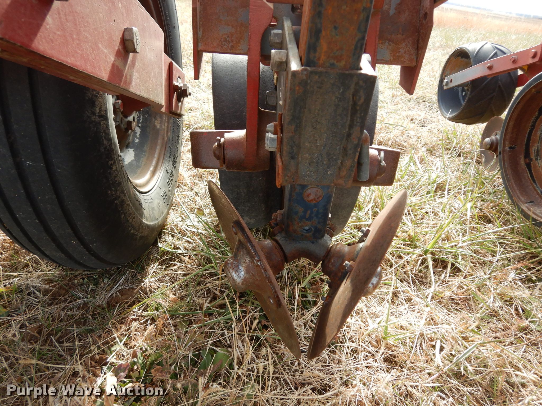 Purple Wave is selling a used Air Seeder in Kansas. This item is a Case IH 950 Cyclo Air air seeder with the following: 21'W, 8 row units, 30" row spacing, Marker arms, Bulk fill system, Row cleaners, Double disk openers, Double gauge wheels, Seed firmers, Single press wheel, International Seed Flow II monitor, 7.60-15 tires, Serial JJC0027425, Unit# 166108