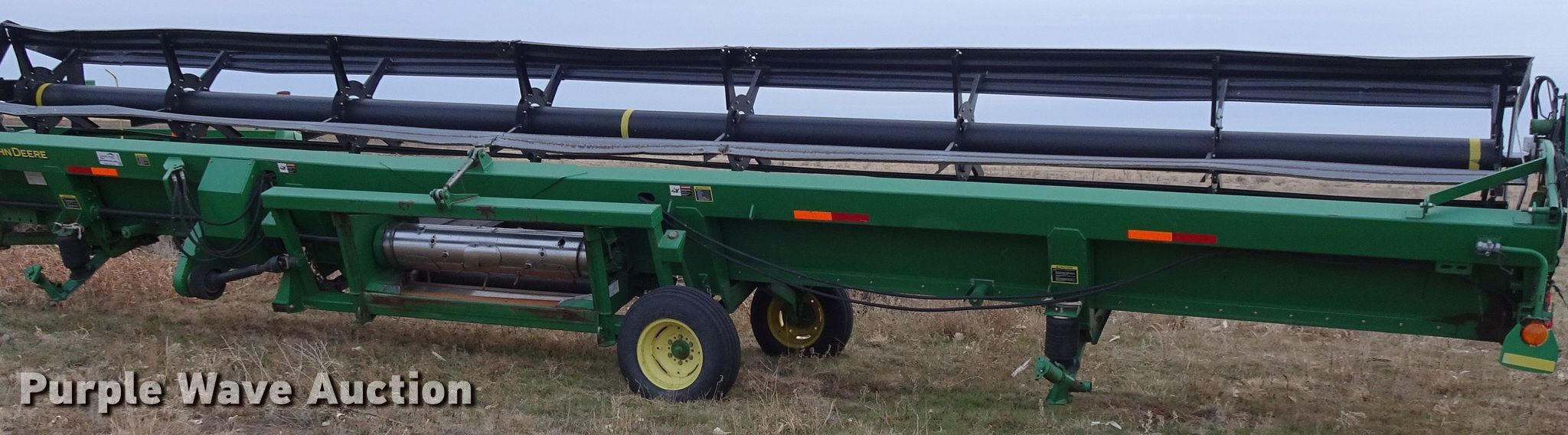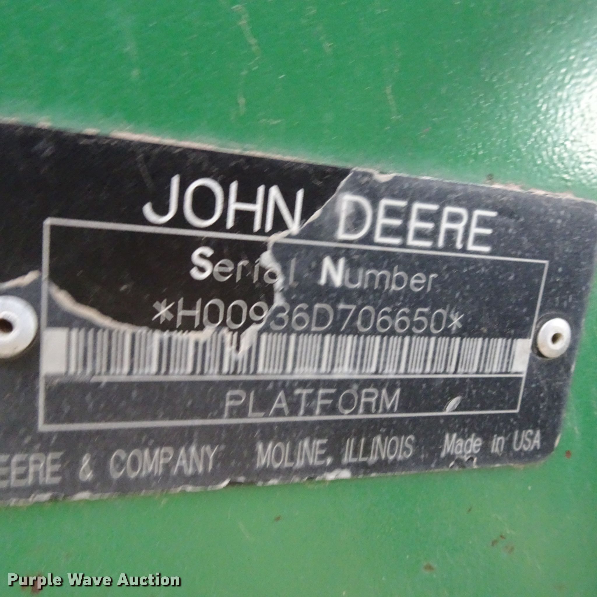 Purple Wave is selling a used Platform or Stripper Head in Texas. This item is a 2004 John Deere 936D draper head with the following: 36'W, Bat reel, Hydraulic fore/aft, Hydraulic reel height control, Transport package, Single driveline, 9.5L-15 tires, Serial H00936D706650