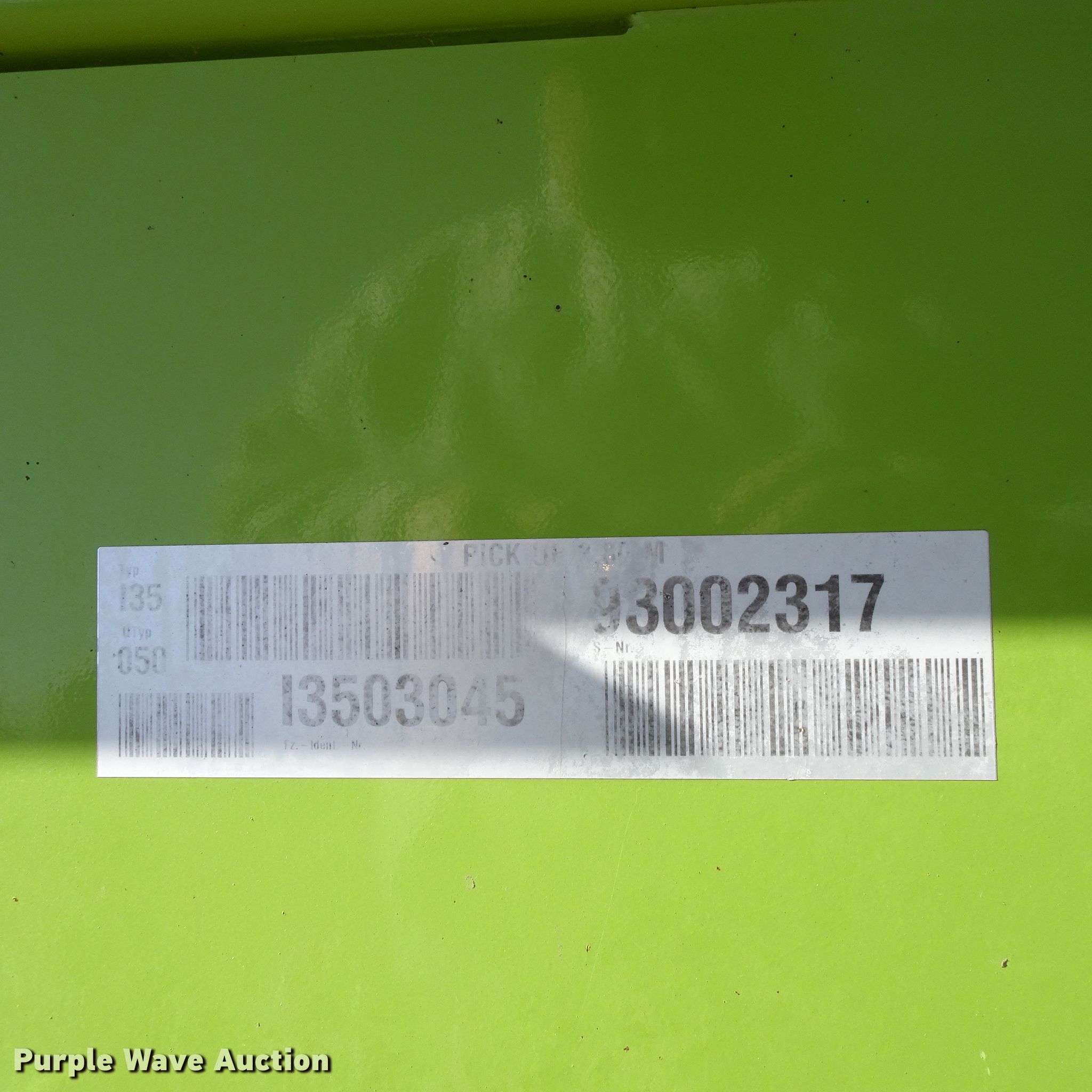 Purple Wave is selling a used Forage Head or Silage Handling in Texas. This item is a 2016 Claas 380 pickup head with the following: 12.5' working width, Gauge wheels, Single point coupler, Single driveline, Serial 13503045