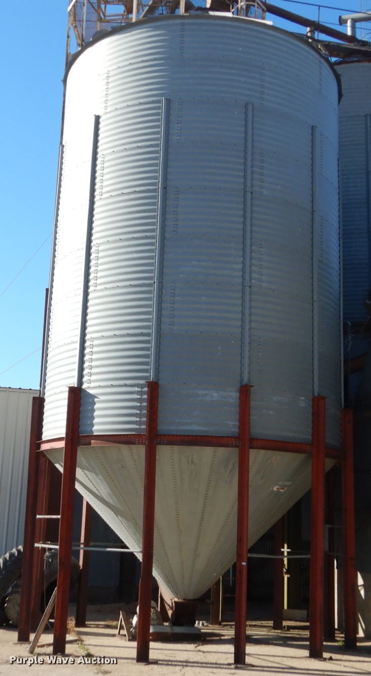 Purple Wave is selling a used Other Grain or Fertilizer Handling in Iowa. This item is a Steel bulk bin with the following: 18'8"W, 35' to bottom of peak, Approx. 24'L x 12" discharge auger, Electric motor, 25 HP, Legs