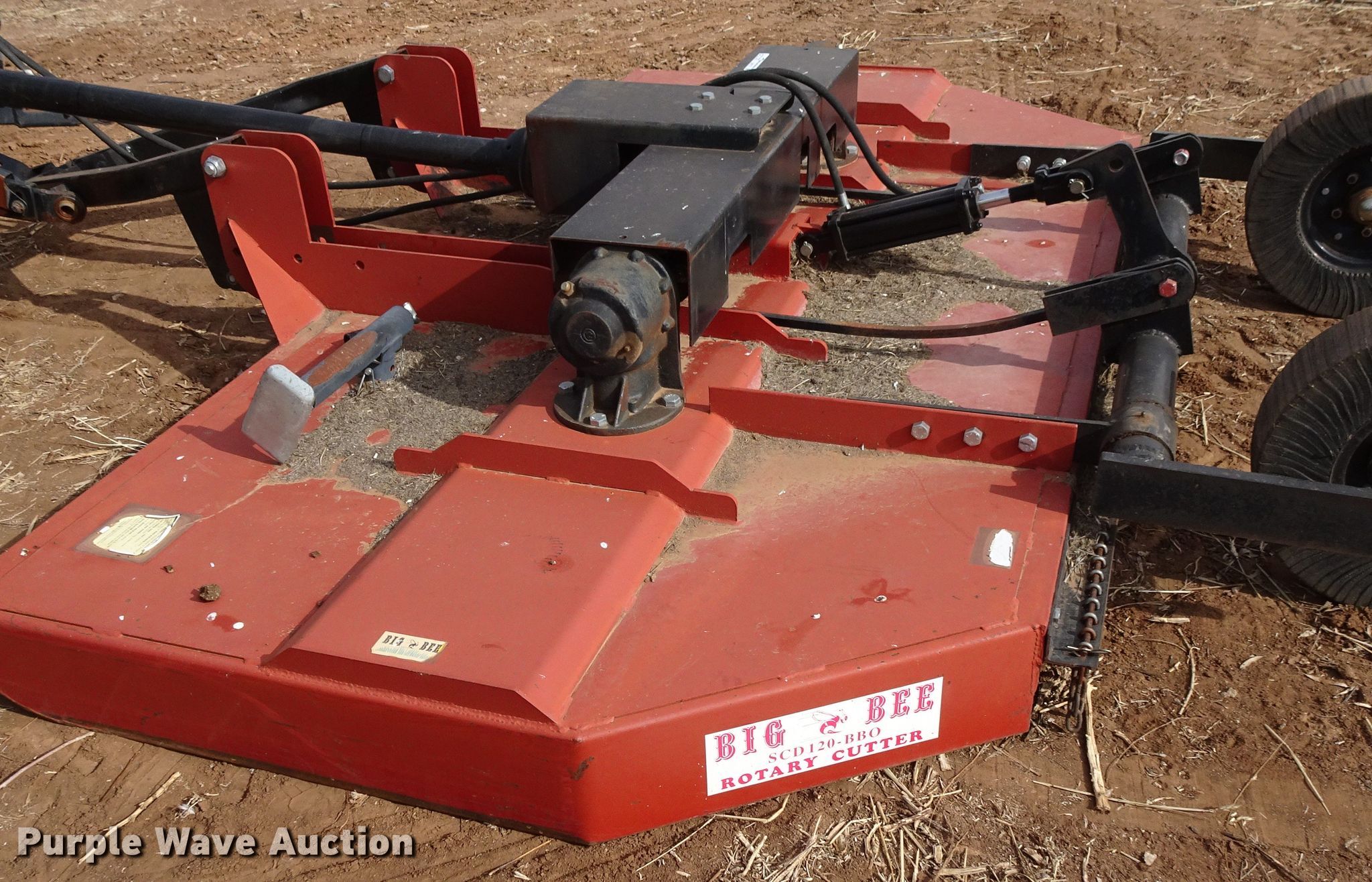 Purple Wave is selling a used Mower, Cutter, Shredder in Texas. This item is a Big Bee rotary mower with the following: 122"W, 540 PTO, Hydraulic height adjustment, Laminated tires