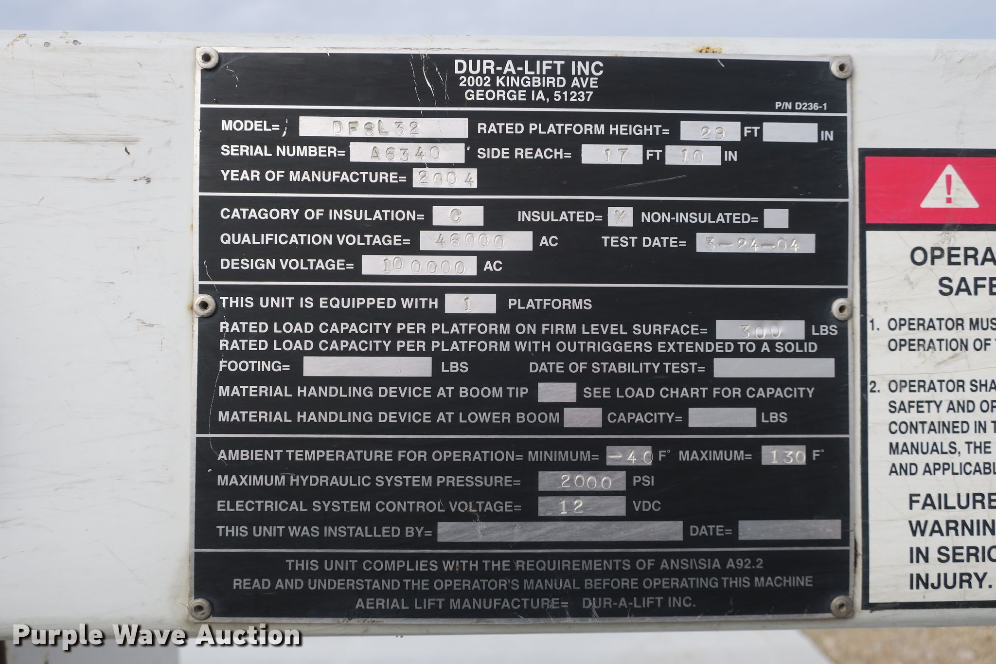 Duralift DFSL32 articulating, insulated boom has sold in Bourbon, Missouri for $2530. Item DB10096 sold on December 31st, 2019.