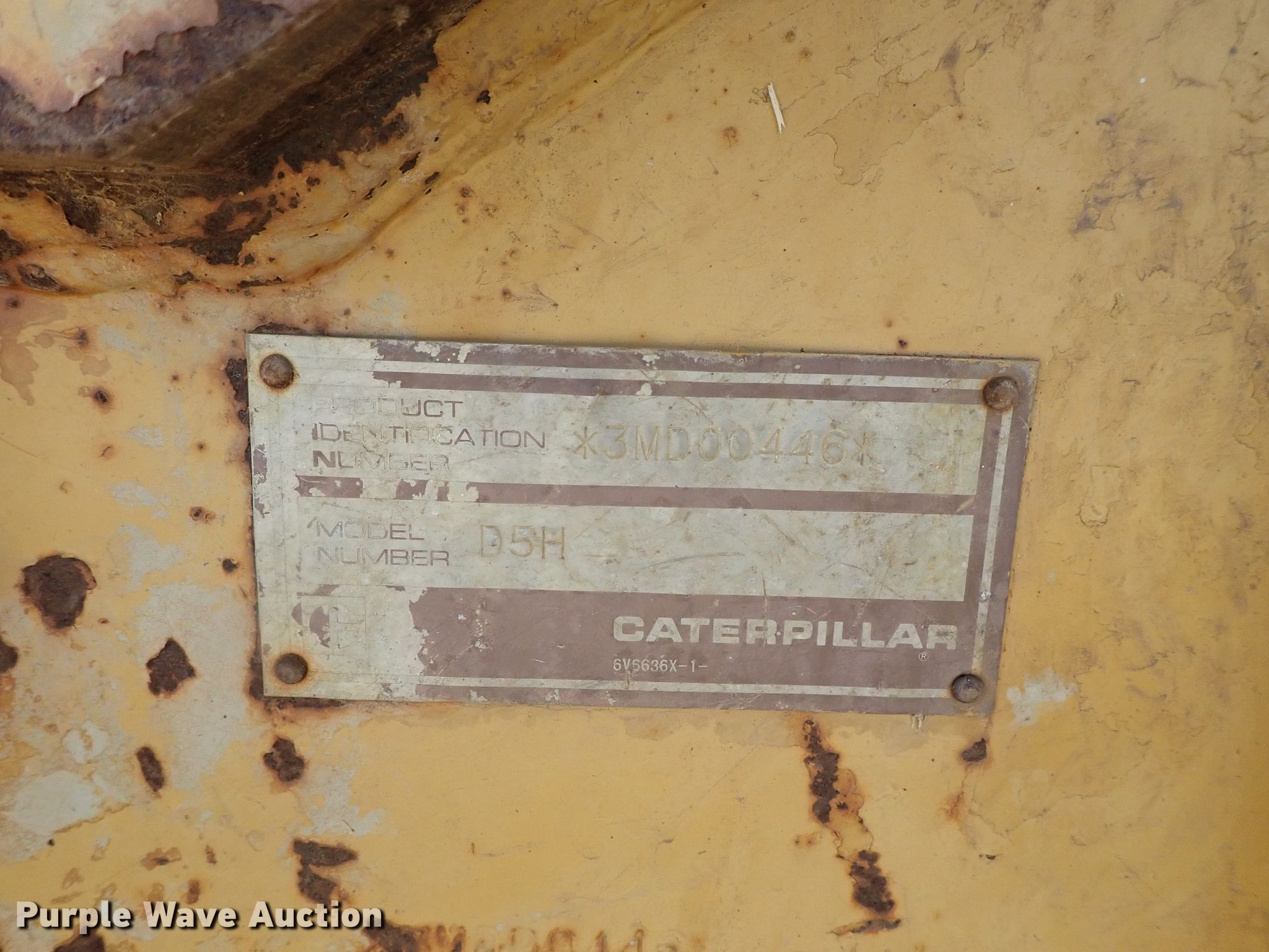 Purple Wave is selling a used Crawler Dozer in Kansas. This item is a 1986 Caterpillar D5H dozer with the following: 2,053 hours on meter, Four cylinder diesel engine, Powershift transmission, 3F-3R gears, Canopy, Clutch brake steering, Sweeps, 120"W six-way straight dozer blade, 20"W single grouser track pads, Serial 3MD00446