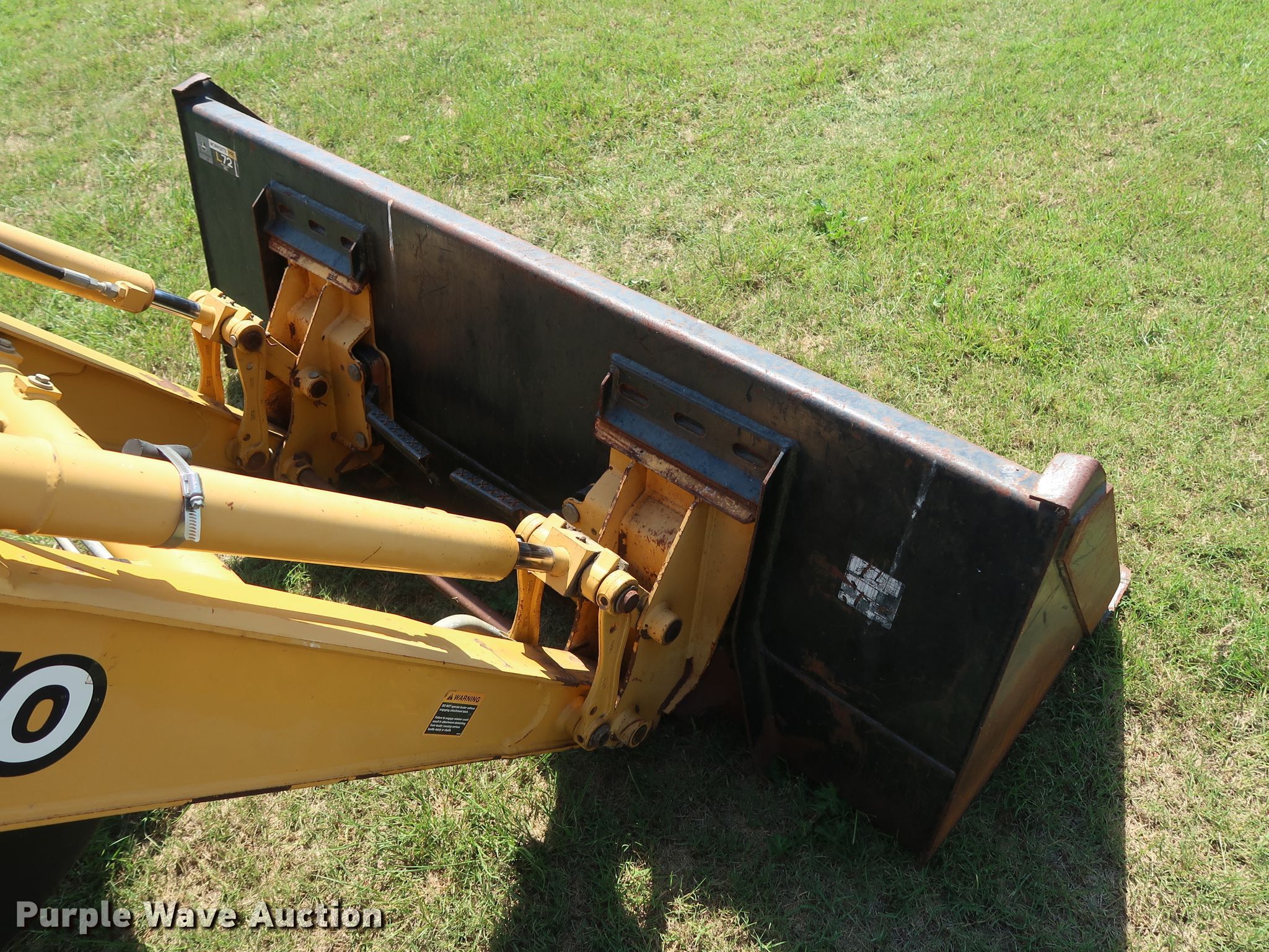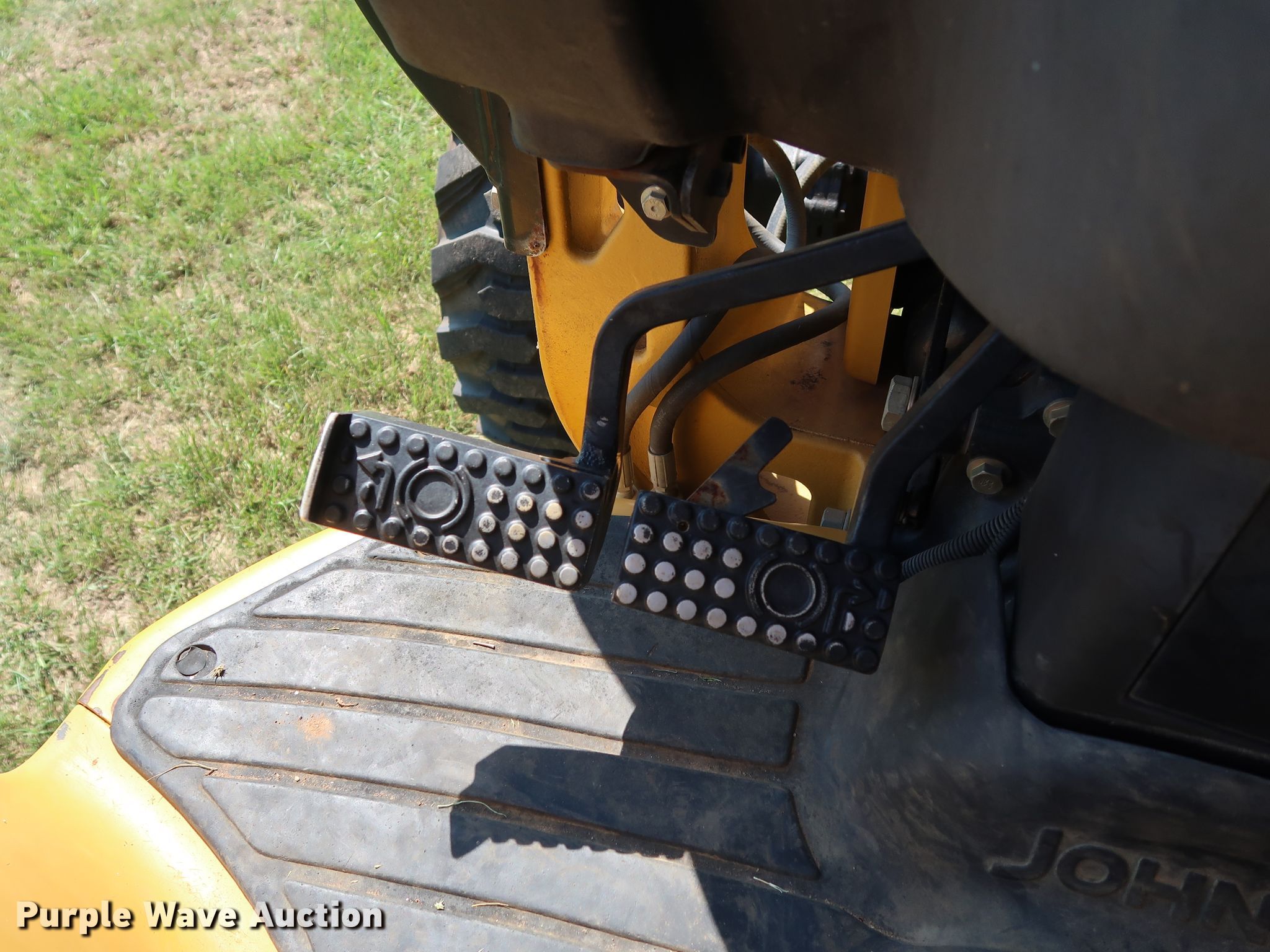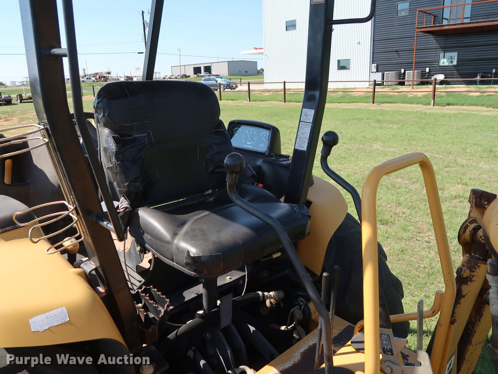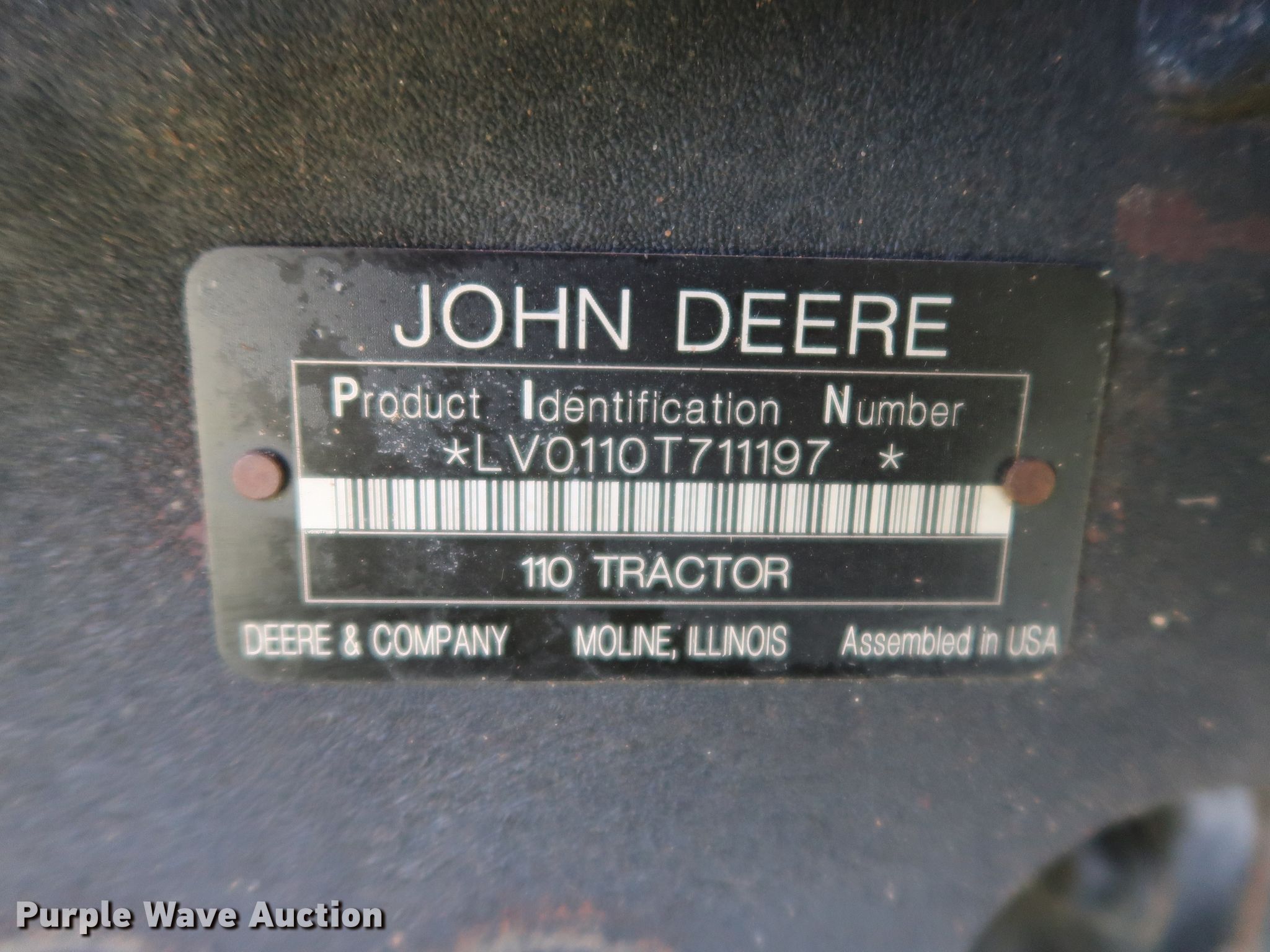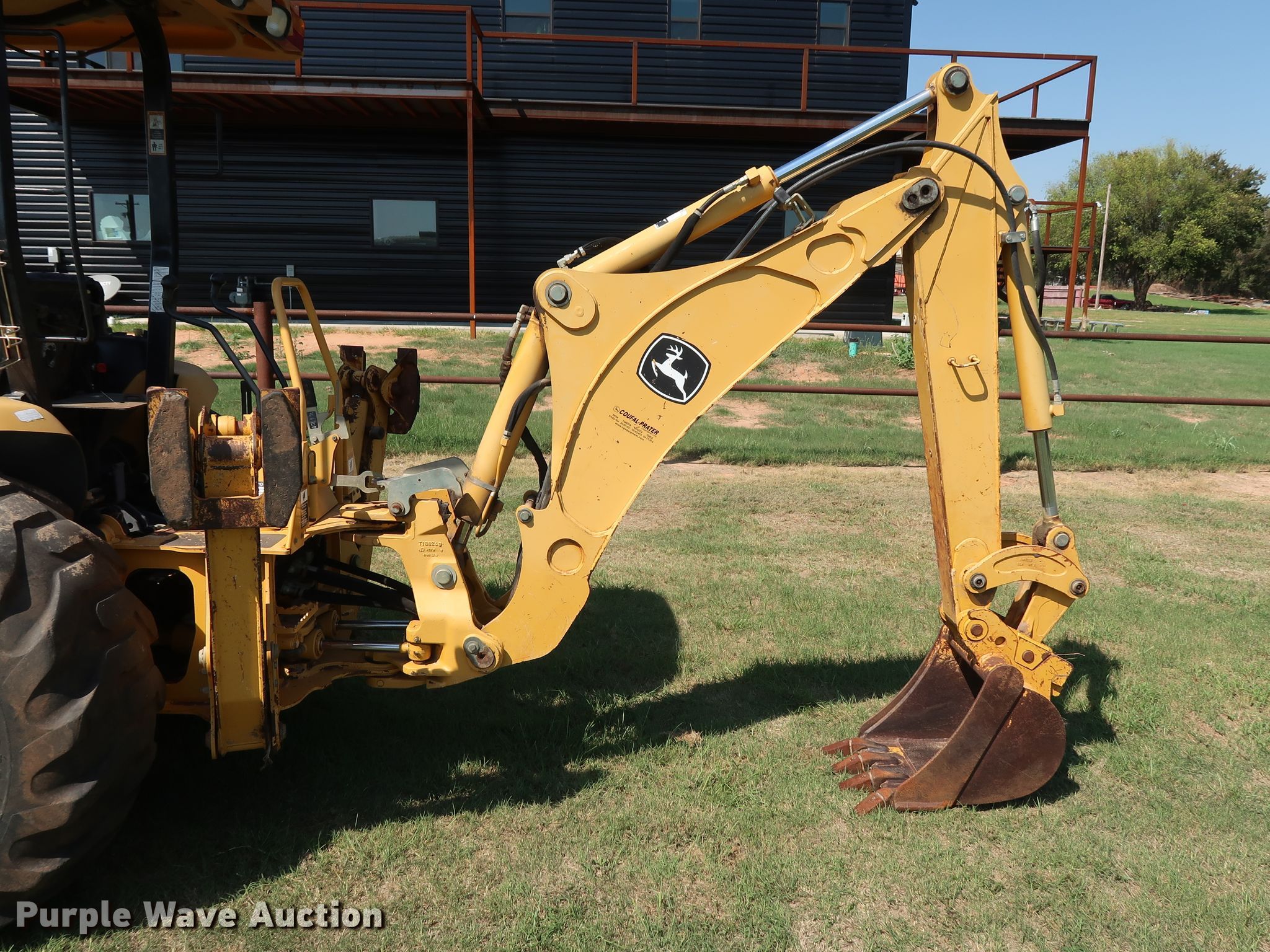 Purple Wave is selling a used Tractor Loader Backhoe in Oklahoma. This item is a 2008 John Deere 110 backhoe with the following: 2,094 hours on meter, Yanmar 4TNV88 2.2L four cylinder diesel engine, 41 HP, Three speed hydrostatic transmission, OROPS, Wobble stick backhoe controls, John Deere Worksite Pro L72 72"W loader bucket, Bolt-on cutting edge, Manual quick coupler, 18"W backhoe bucket, (4) teeth, 10-16.5 NHS front tires, 17.5L-24 rear tires, Top side transmission housing cracked near the cab floorboard, Serial LV0110T711197, T00110S111810