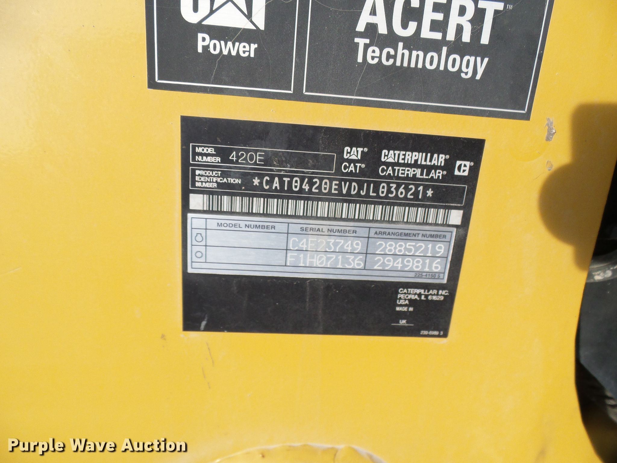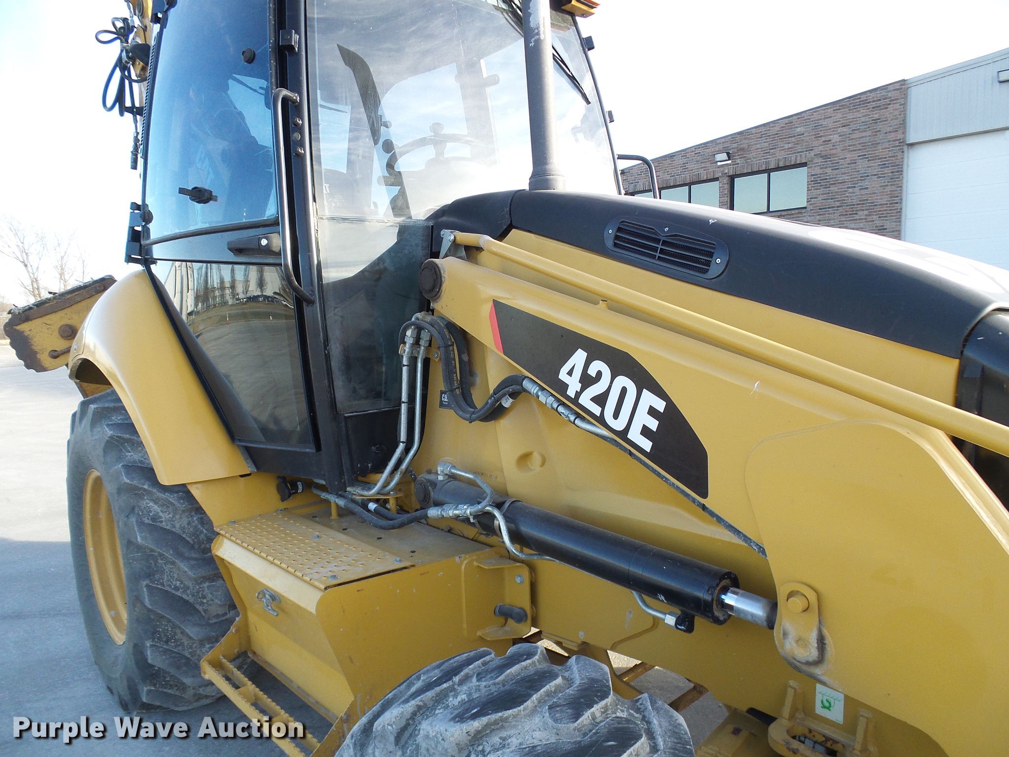 Purple Wave is selling a used Tractor Loader Backhoe in Missouri. This item is a 2012 Caterpillar 420E backhoe with the following: 1,755 hours on meter, Caterpillar four cylinder diesel engine, Shuttle shift transmission, 4F-4R gears, Four wheel drive, Differential lock, Enclosed cab, AC and heat, Pilot controls, 89"W loader bucket, Bolt-on cutting edge, Extendable stick backhoe, 36"W backhoe bucket, Weld-on cutting edge, (6) teeth, 18"W backhoe bucket, Manual quick coupler, Auxiliary hydraulics, 12.5/80-18 front tires, 19.5-24 rear tires, Serial CAT0420EVDJL03621
