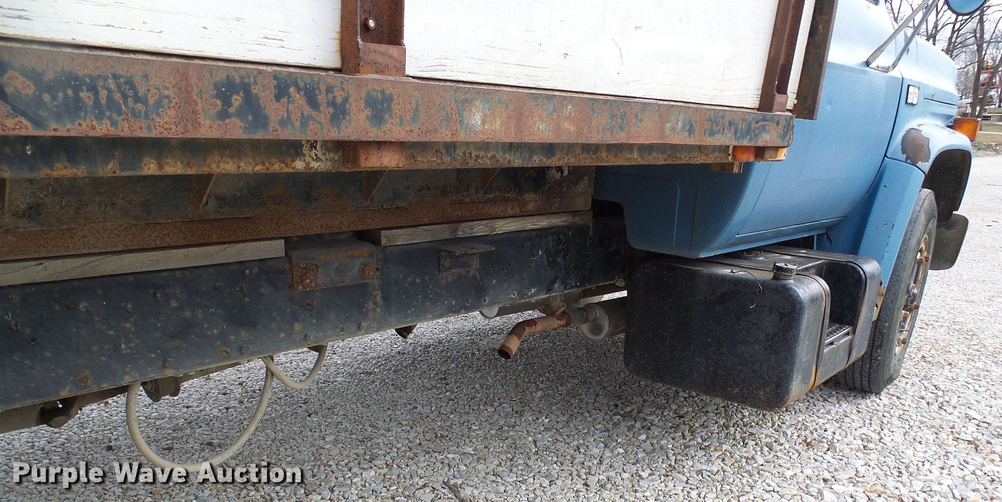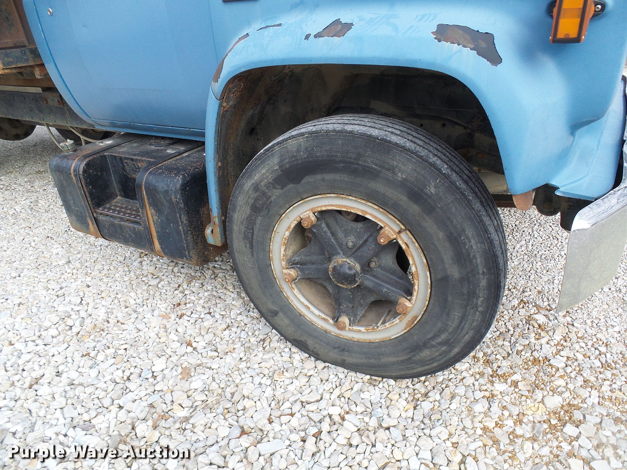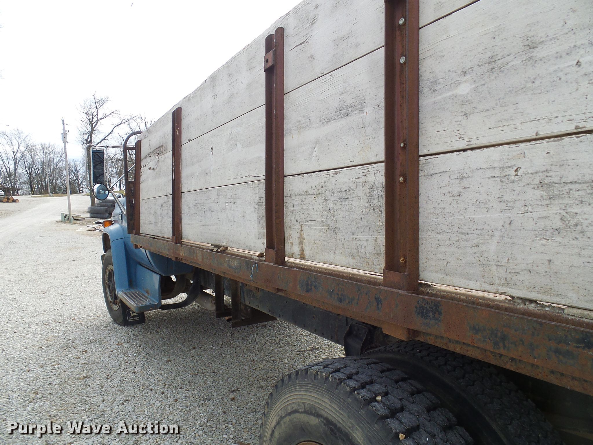 Purple Wave is selling a used Flat Bed Truck in Missouri. This item is a 1987 Chevrolet C70 flat dump bed truck with the following: 79,263 miles on odometer, 6.0L V8 gas engine, Five speed manual transmission, Single axle, Heat, 16'L x 92"W flatbed, 34" removable sides, Single cylinder hoist, Spring suspension, Hydraulic brakes, 9.00R20 tires, GVWR 23,160 lbs, Engine issues