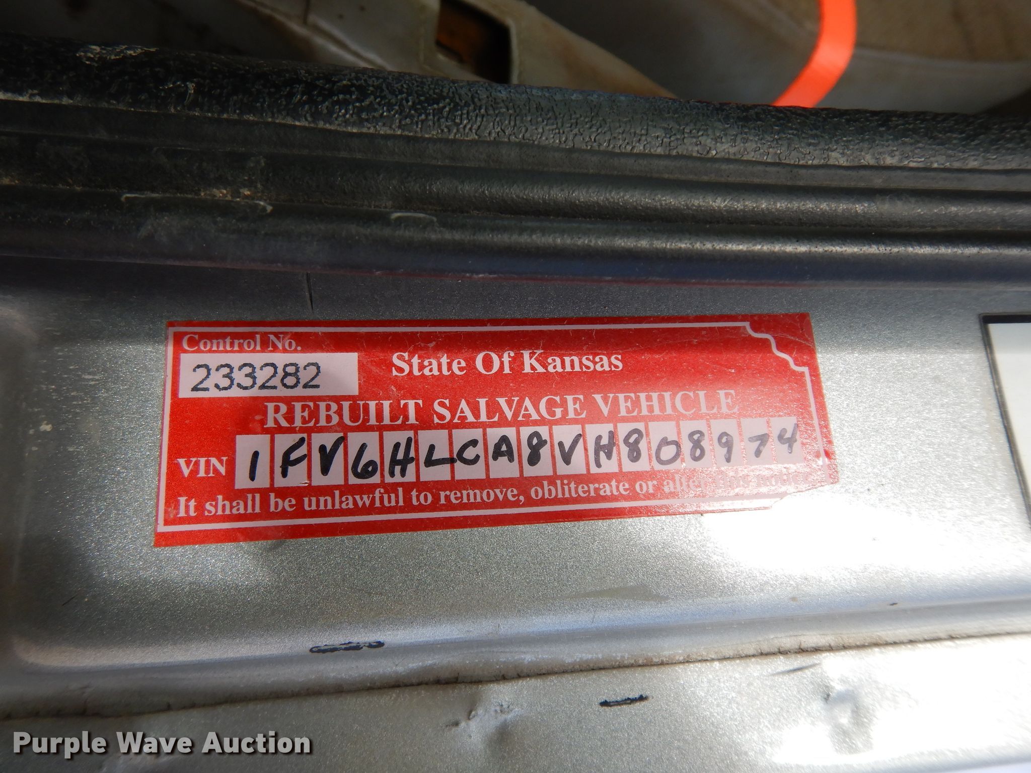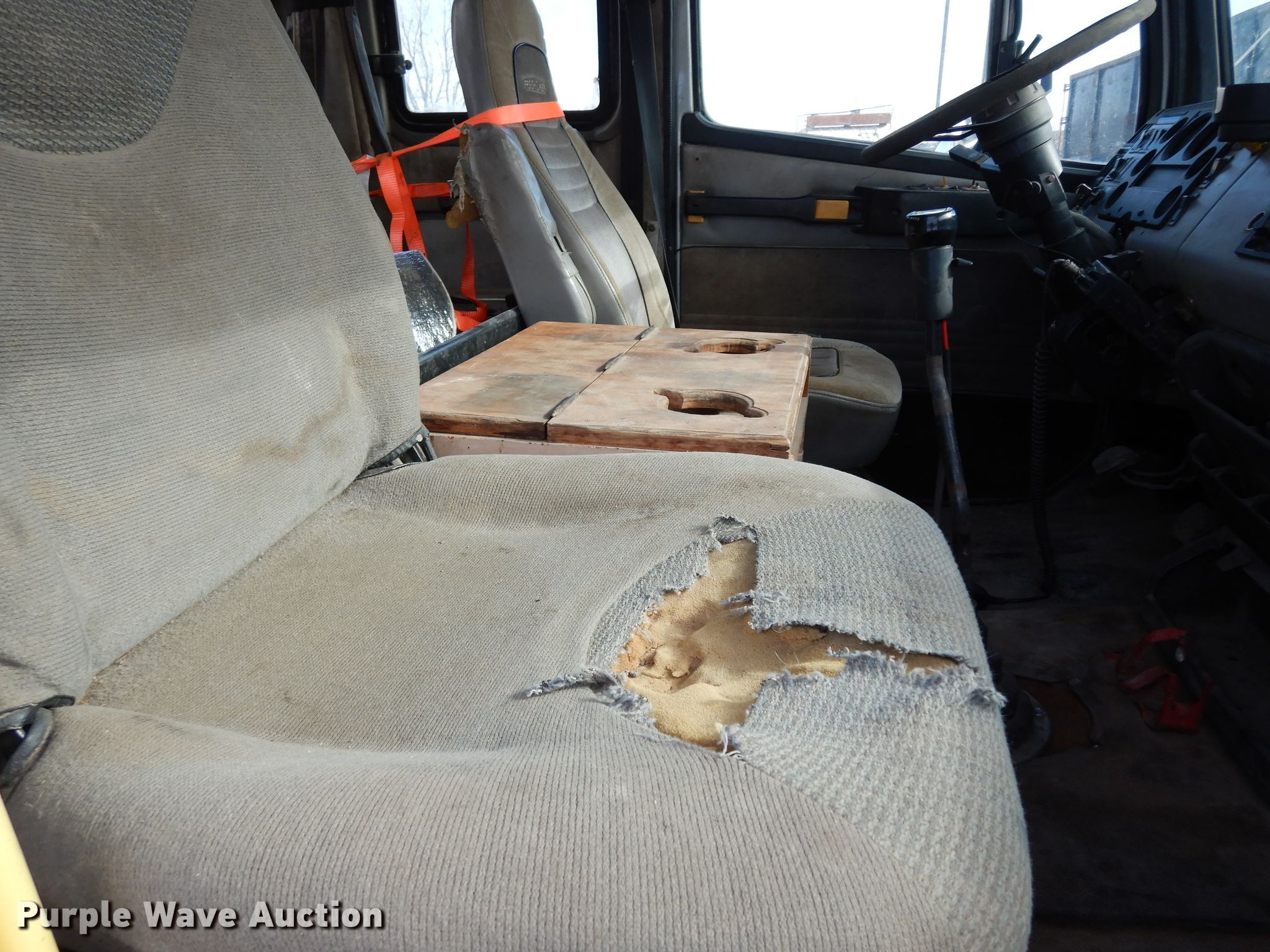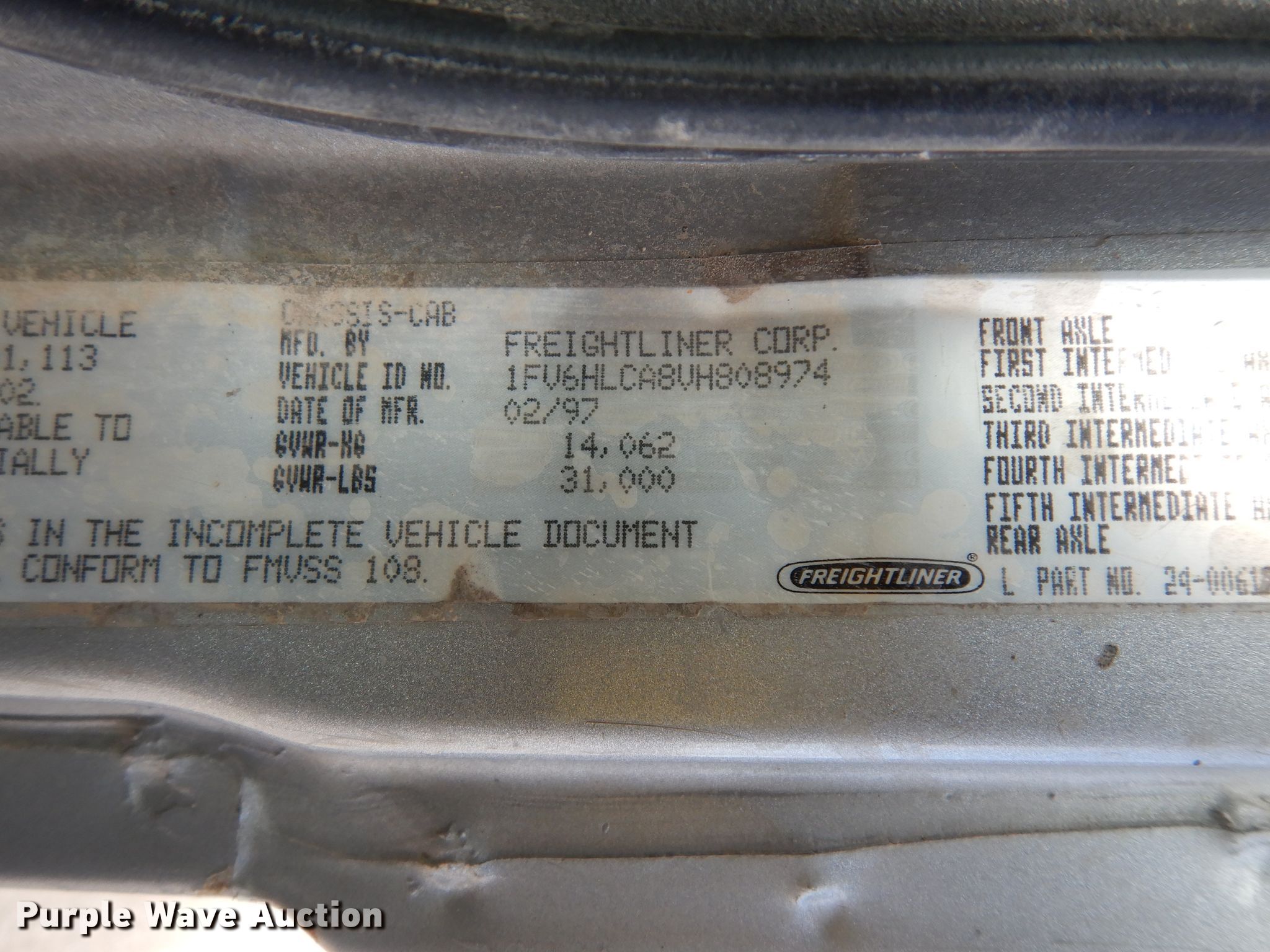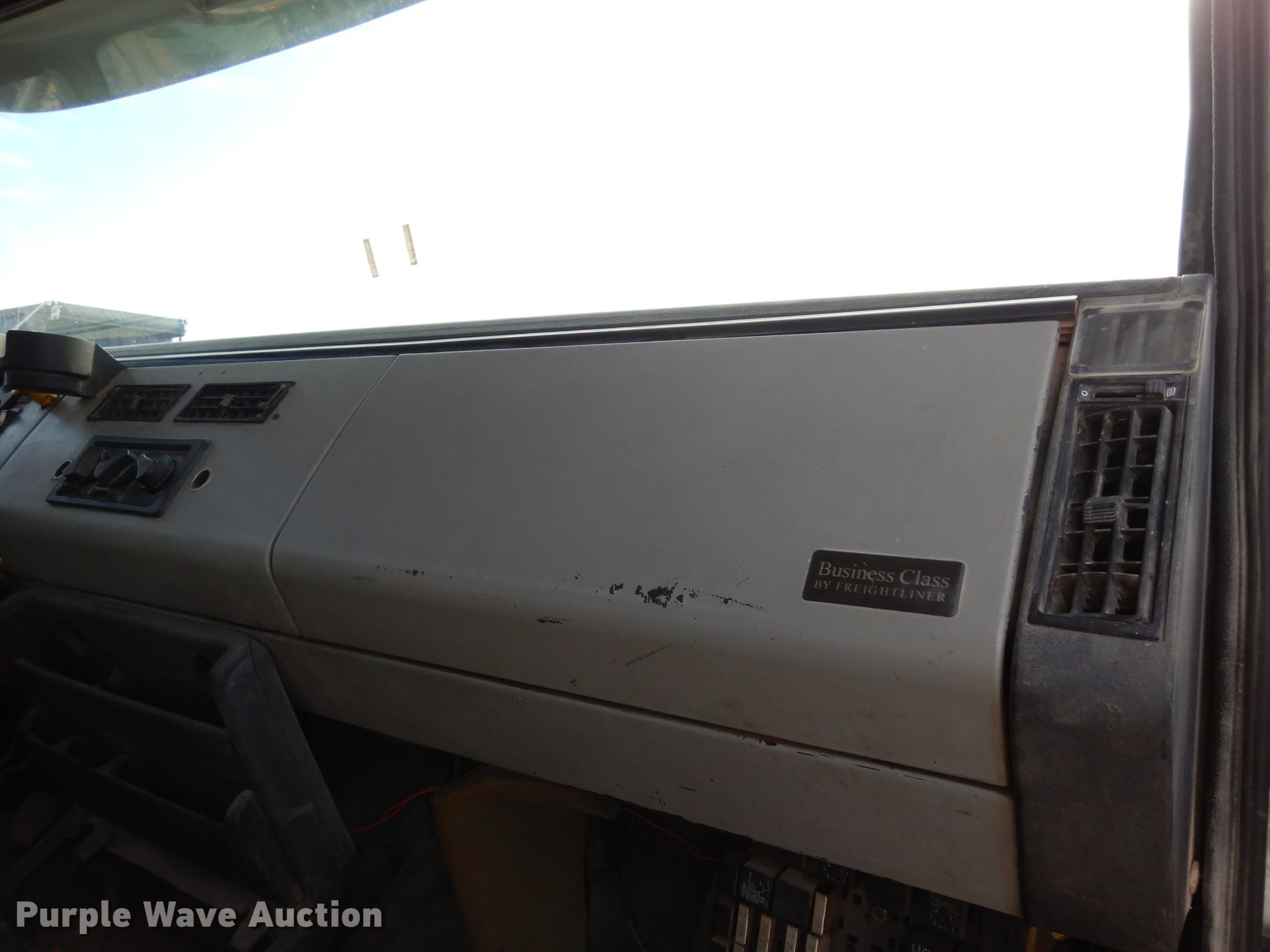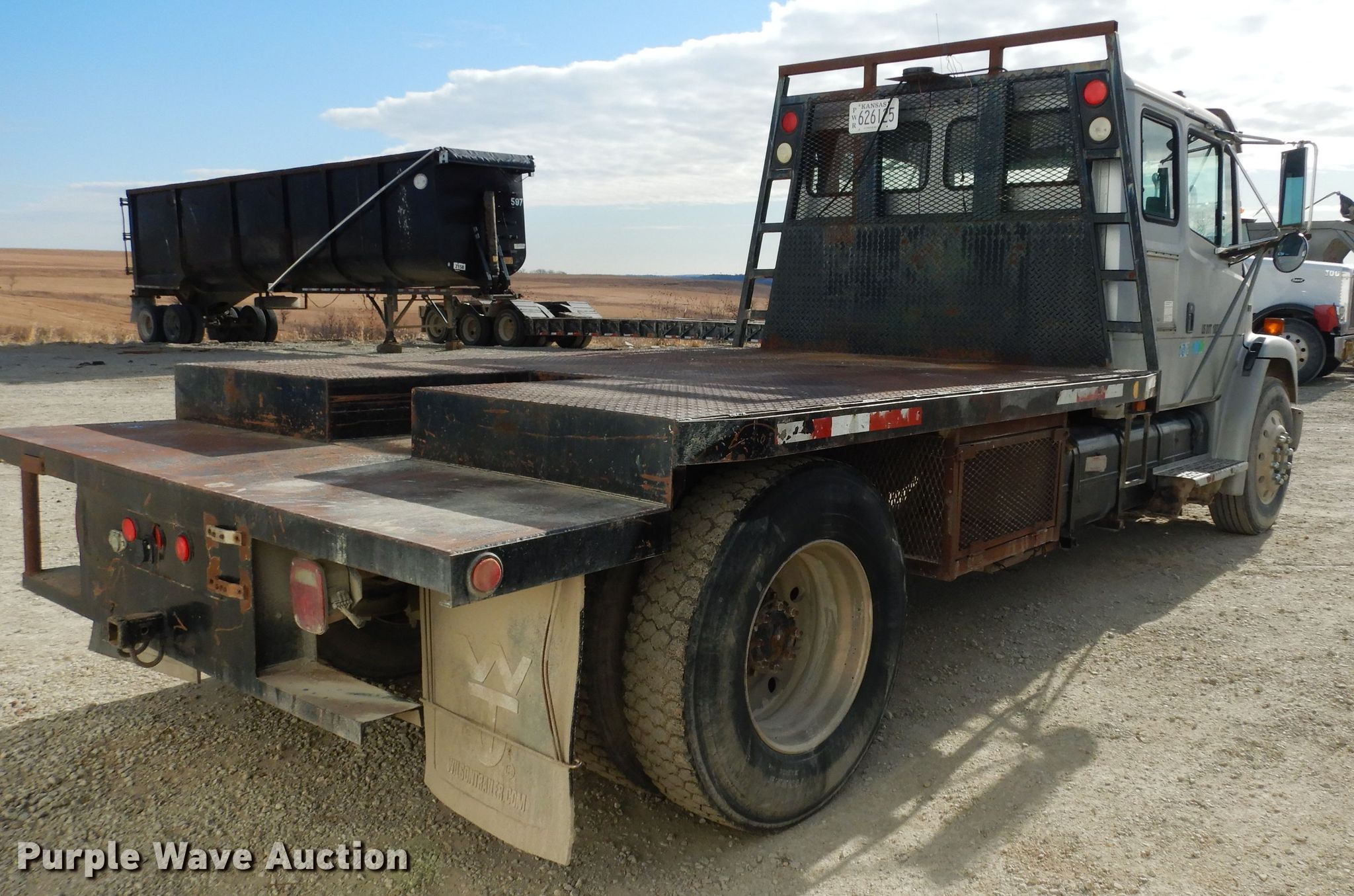 Purple Wave is selling a used Flat Bed Truck in Kansas. This item is a 1997 Freightliner Business Class FL70 flatbed truck with the following: 335,485 miles on odometer, 4,690 hours on meter, Cummins 8.3L L6 diesel engine, Eaton Fuller Road Ranger nine speed manual transmission, Single axle, AC and heat, Cruise, Power windows and locks, Sleeper, Single bed, 10'L x 102"W steel flatbed, Gooseneck hitch, Single fuel tank, Air suspension, Air brakes, 196" wheelbase, 295/75R22.5 front tires, 11R22.5 rear tires, GVWR 31,000 lbs, FAWR 11,000 lbs, RAWR 20,000 lbs