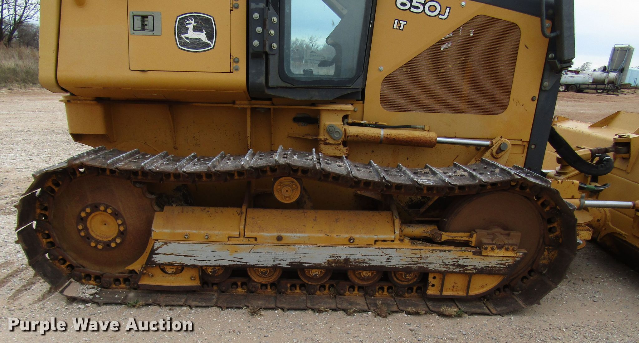 Purple Wave is selling a used Crawler Dozer in Texas. This item is a 2005 John Deere 650J dozer with the following: 3,355 hours on meter, John Deere four cylinder diesel engine, Hydrostatic transmission, Enclosed cab, AC and heat, GPS, Joystick steering, Sweeps, 105"W straight six-way dozer blade, 18"W single grouser track pads, Oil pressure drops after several hours of operation, corrects itself when throttle is applied, Serial T0650JX111125