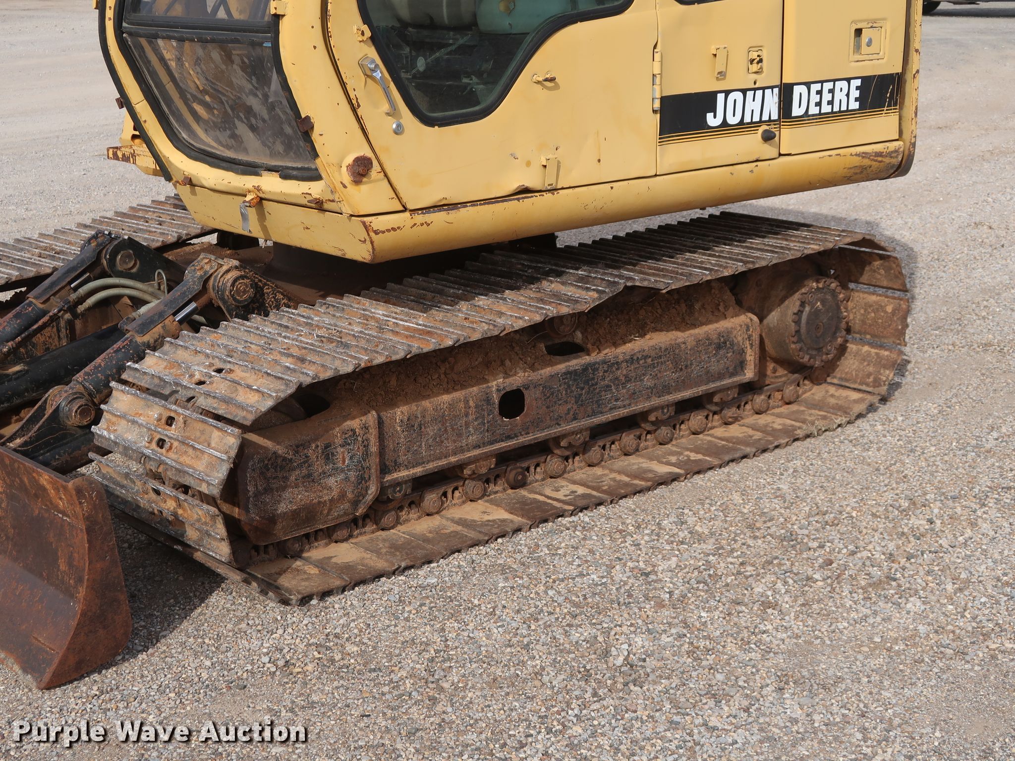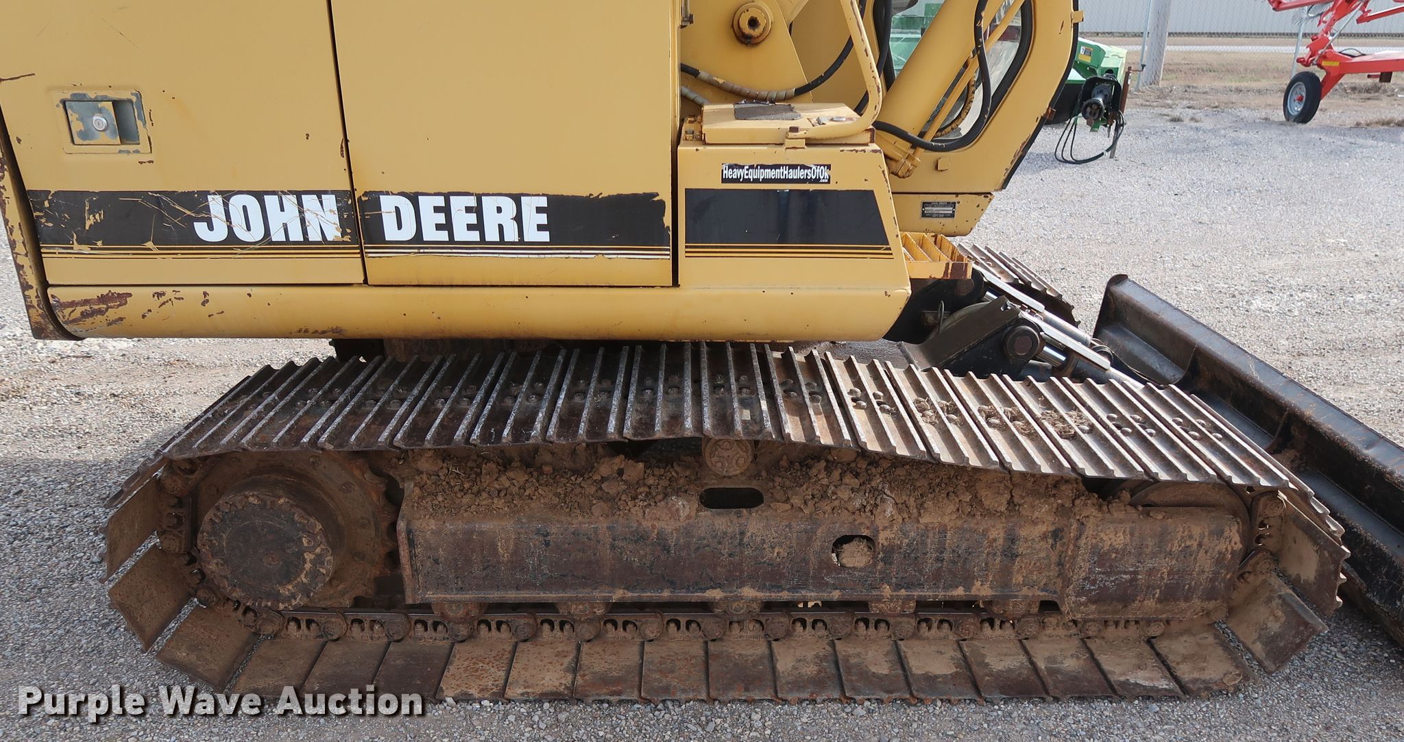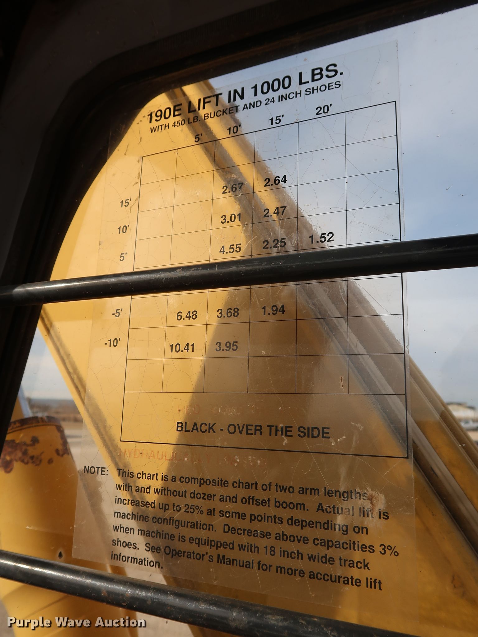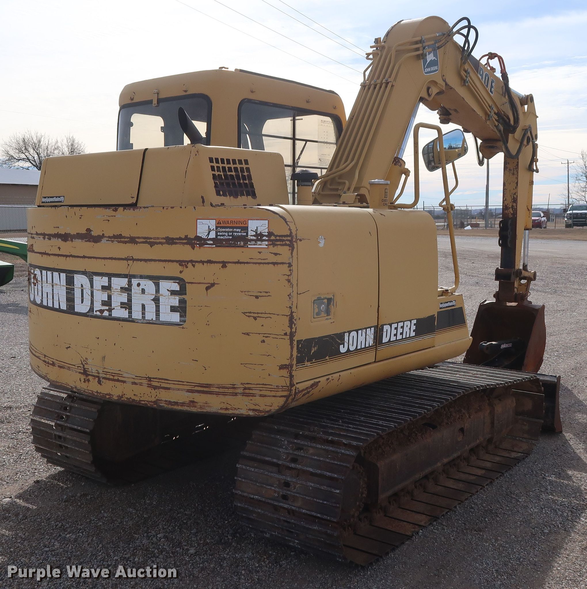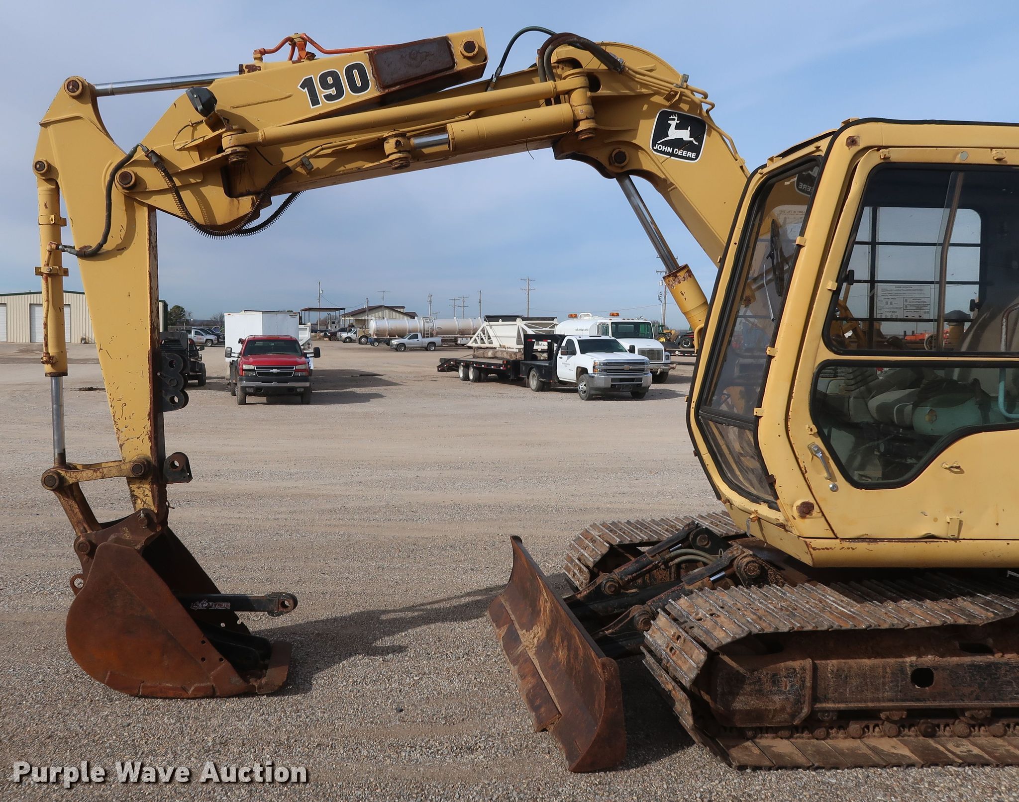 Purple Wave is selling a used Mini Excavator in Oklahoma. This item is a 1994 John Deere 190E mini excavator with the following: 4,535 hours on meter, John Deere 4039D 3.9L four cylinder diesel engine, 55 HP, Serial T04039D421641, Two speed hydrostatic transmission, EROPS, Heat, 90"W backfill blade, Standard boom, 60" stick length, Excalibur 24"W bucket, Weld-on cutting edge, (5) teeth, 24"W steel triple grouser track pads, Serial FF190EX010180
