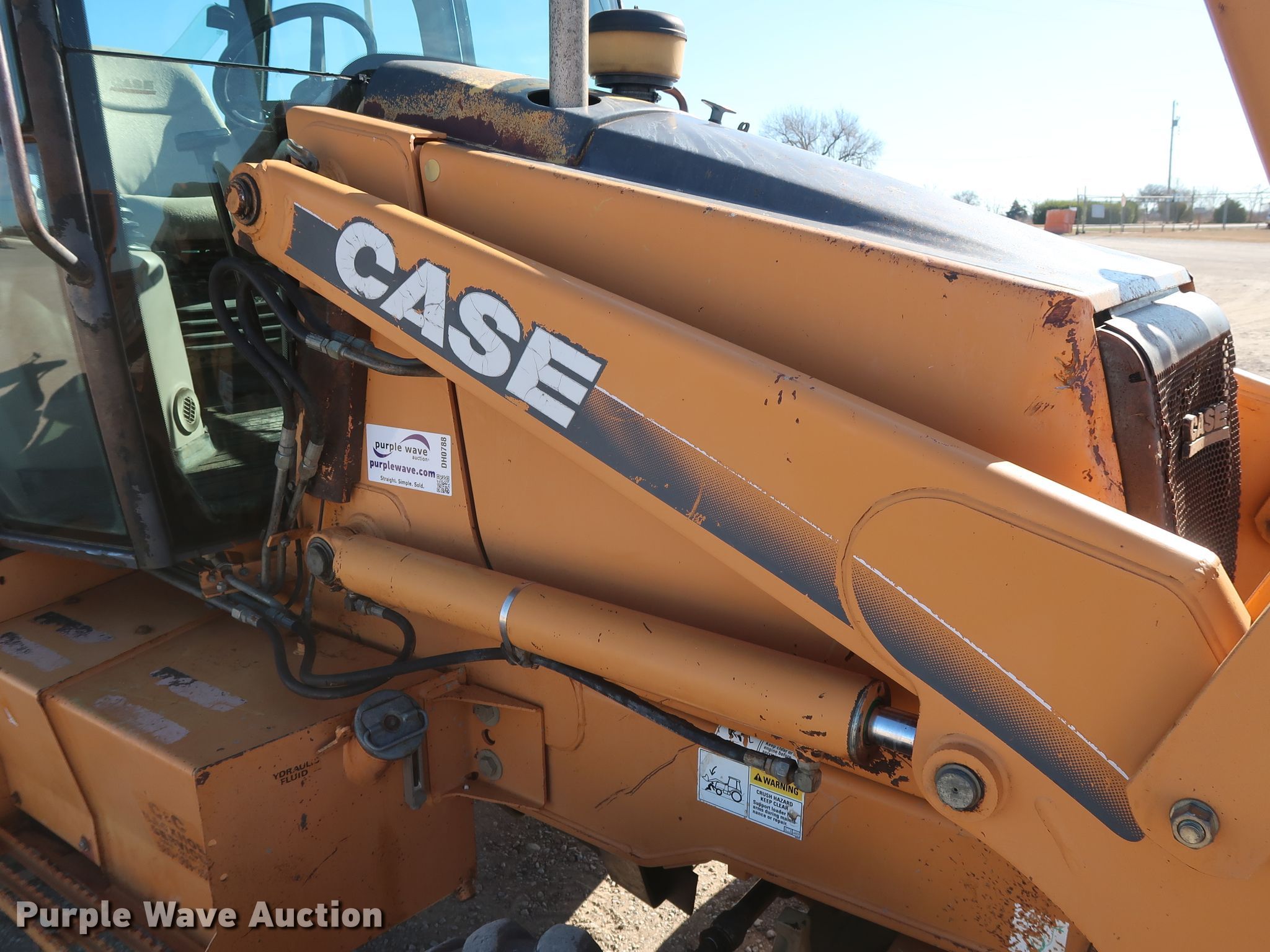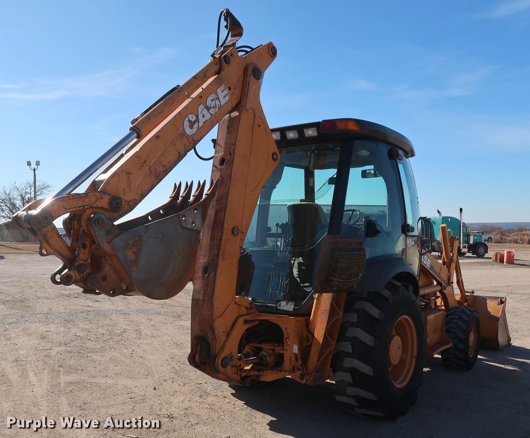 Purple Wave is selling a used Tractor Loader Backhoe in Oklahoma. This item is a 2001 Case 580M backhoe with the following: 7,833 hours on meter, Case 4-390 3.9L four cylinder diesel engine, 75 HP, Serial 46046536, Shuttle shift transmission, 4F-4R gears, Four wheel drive, EROPS, Heat, Four stick backhoe controls, 84"W loader bucket, Bolt-on cutting edge, Extendable stick backhoe, 12-16.5 front tires, 19.5L-24 rear tires, Serial JJG0306606