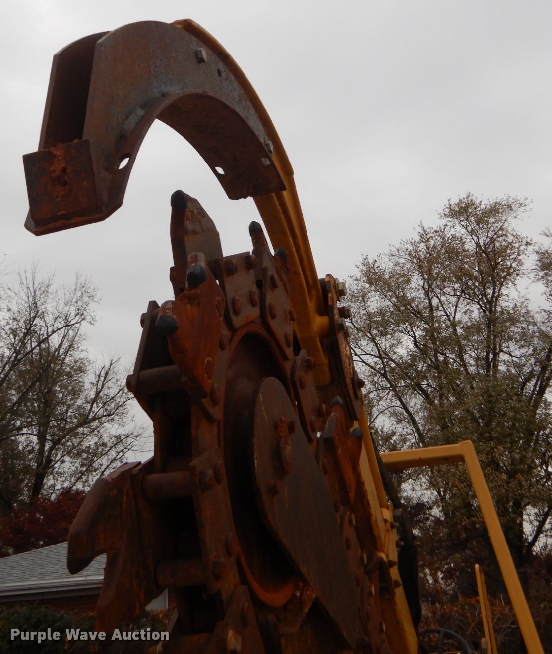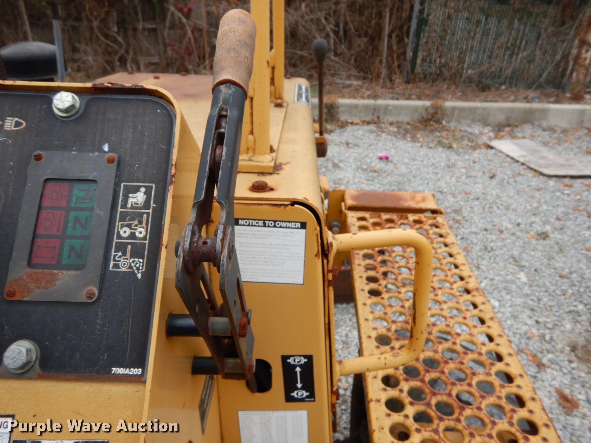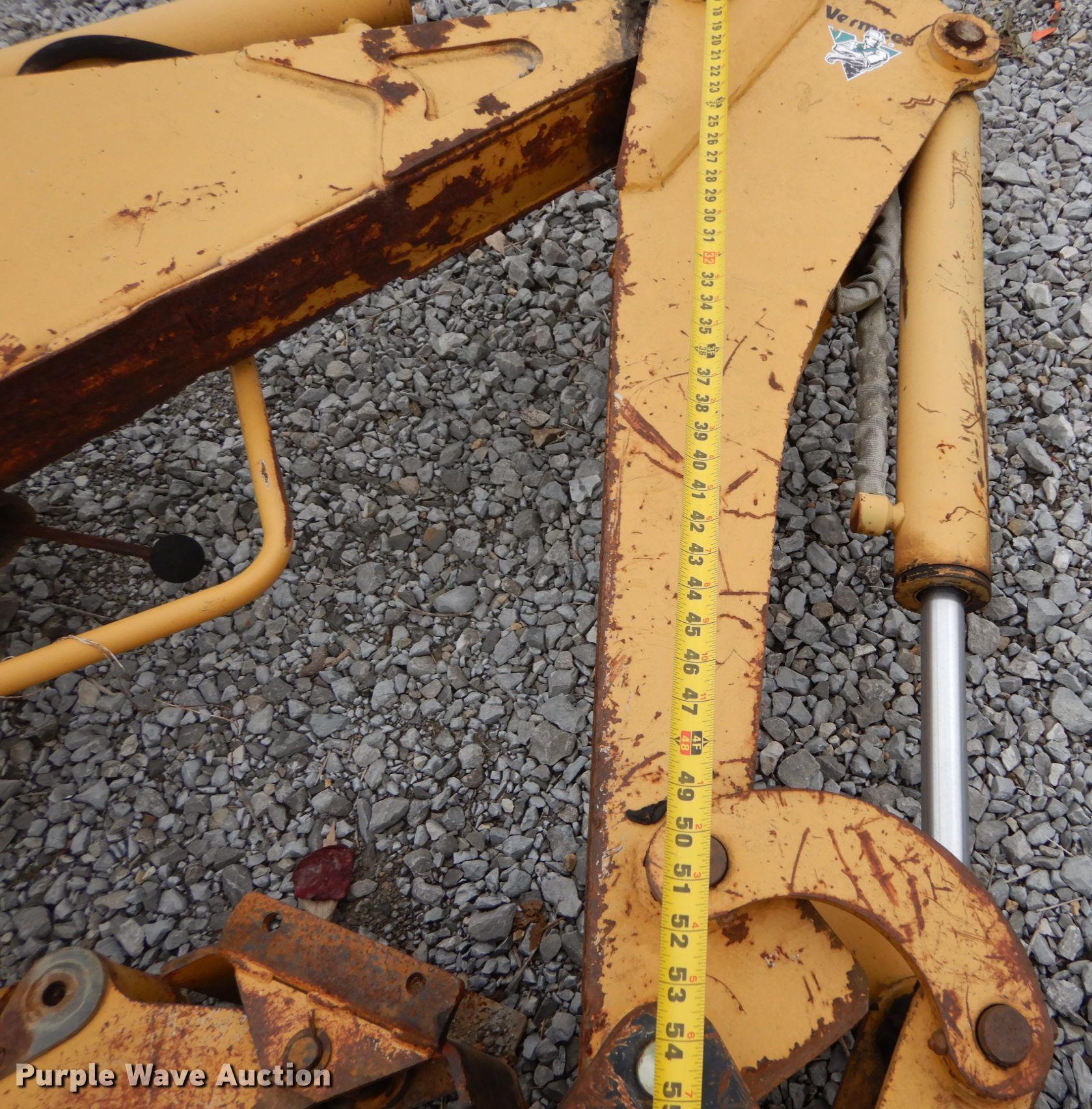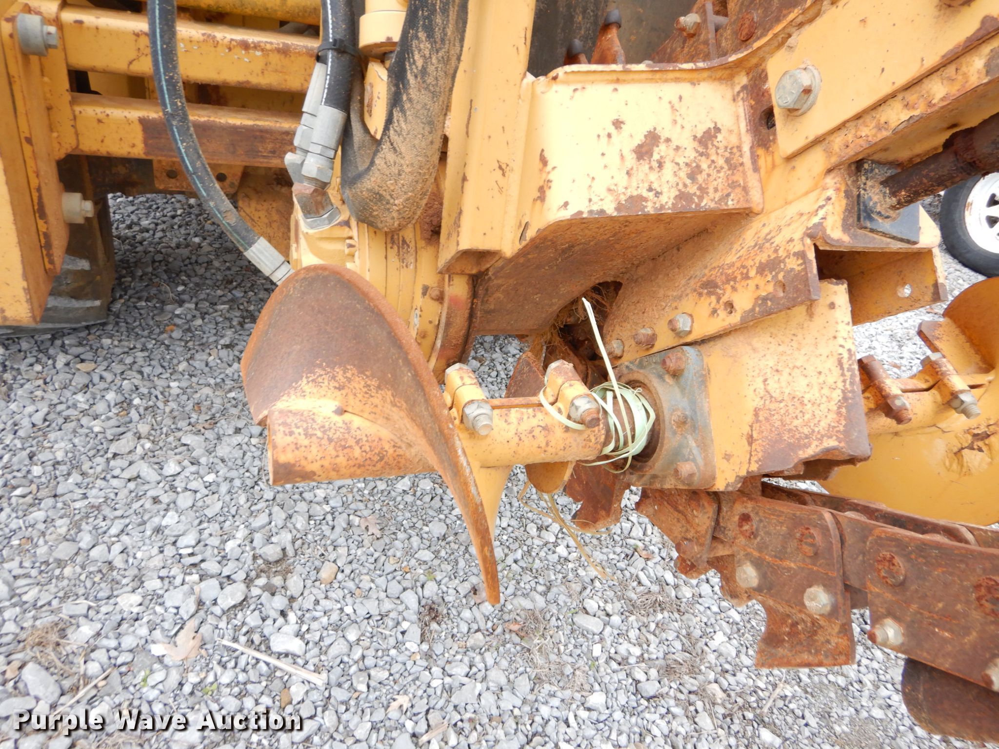 Purple Wave is selling a used Trencher or Rock Saw in Indiana. This item is a Vermeer V5750 trencher with the following: 623 hours on meter, Deutz four cylinder diesel engine, Hydrostatic transmission, Four wheel drive, OROPS, Four-way backfill blade, Trencher model S05750, 60" boom length, 4" cutting width, Side shift, Hydraulic crumber, 36"L x 12"W conveyor, Backhoe model B600, 18"W bucket, Serial 1LVRP080B631001019, 31 x 15.5-15 tires, Broken latch on backhoe, Possible broken pin housing, Serial 1VRM082Z331001184, Unit# T-437