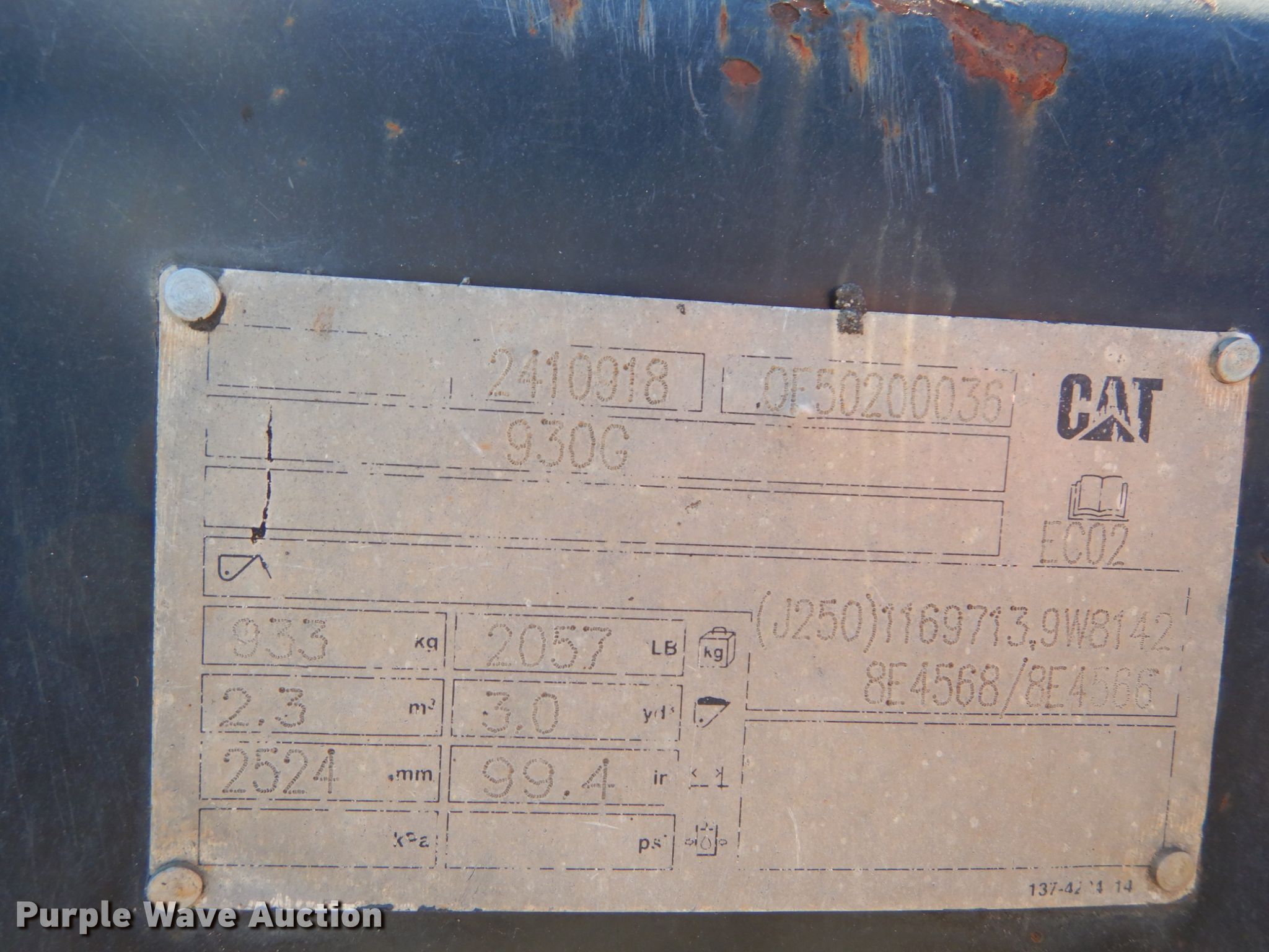 Purple Wave is selling a used Wheel Loader in Missouri. This item is a 2005 Caterpillar 930G wheel loader with the following: 5,562 hours on meter, Caterpillar 3056E six cylinder diesel engine, Powershift transmission, 4F-3R gears, Enclosed cab, AC And heat, Joystick bucket controls, Ride control, Caterpillar 99.4"W bucket, Bolt-on cutting edge, Three cu.yd. capacity, 20.5R25 tires, Intermittent hydraulic issues, Serial CAT0930GHTWR00573