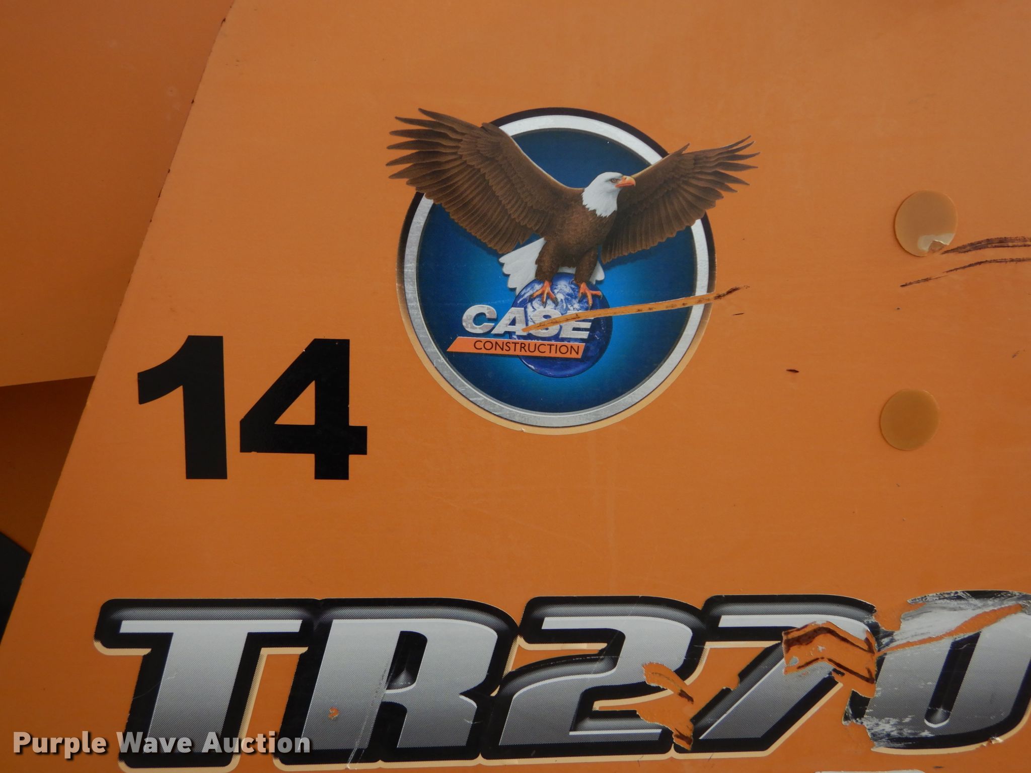2014 Case TR270 skid steer. 918 hours on meter, Four cylinder diesel engine, Hydrostatic transmission, Open station/canopy Hand bucket controls, 78"W bucket Weld-on cutting edge, Hydraulic quick coupler, Auxiliary hydraulics, Auxiliary electrical outlet, 12"W tracks, Quick coupler latch issue, Bucket tooth missing, Serial NEM482448, Unit# 14. K & K Supply. 535 N Hwy Dr. Fenton, MO 63026