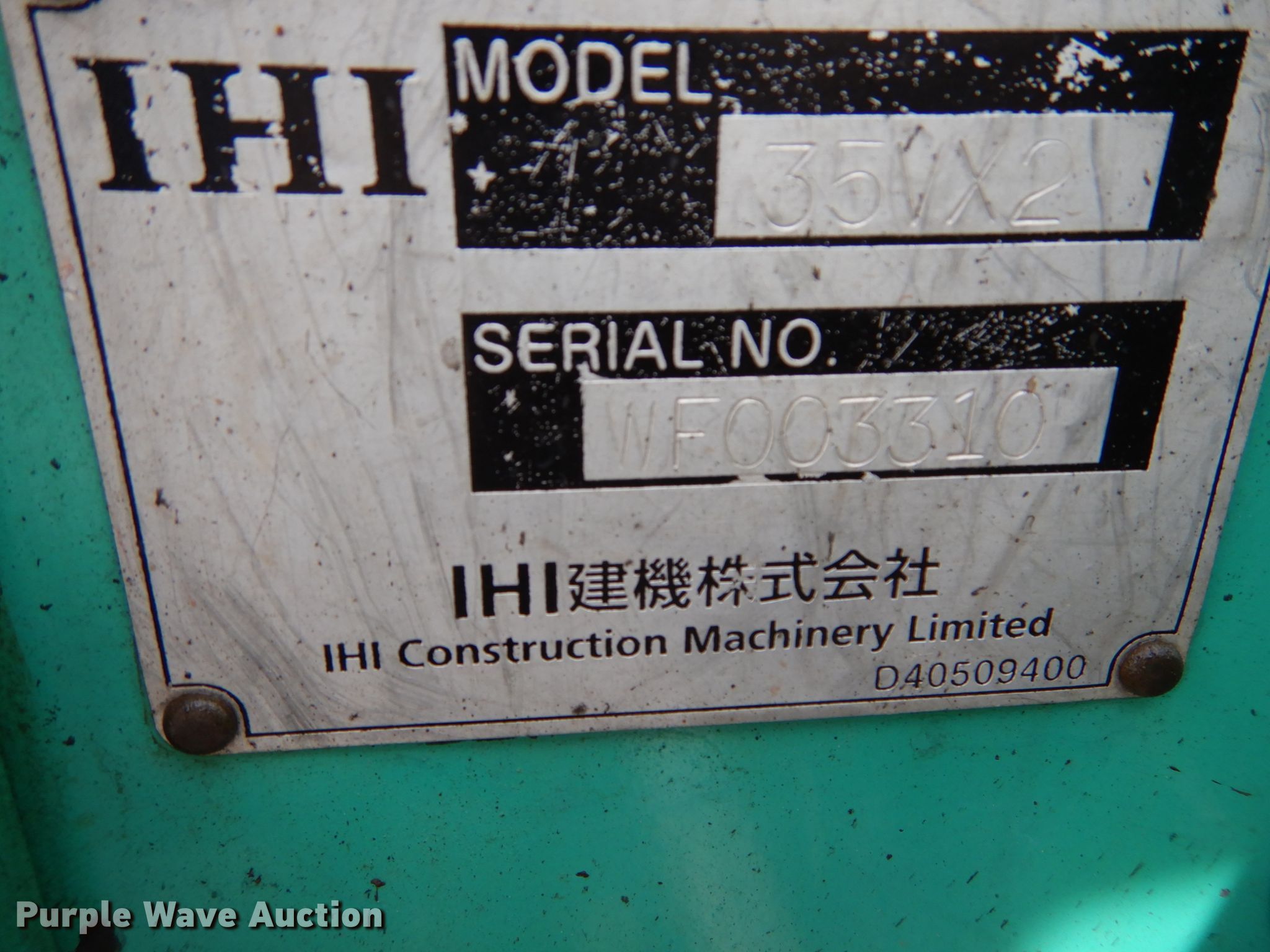 Purple Wave is selling a used Mini Excavator in Missouri. This item is a 2006 IHI 35VX2 mini excavator with the following: 2,109 hours on meter, Yanmar three cylinder diesel engine, Hydrostatic transmission, OROPS, 60"W backfill blade, Swing boom, 5' stick length, IHI 18"W bucket, (3) teeth, Mechanical quick coupler, Werk-Brau IHI35NX hydraulic thumb, 12"W rubber tracks, Adjustable track width, Serial WF003310, Unit# 28