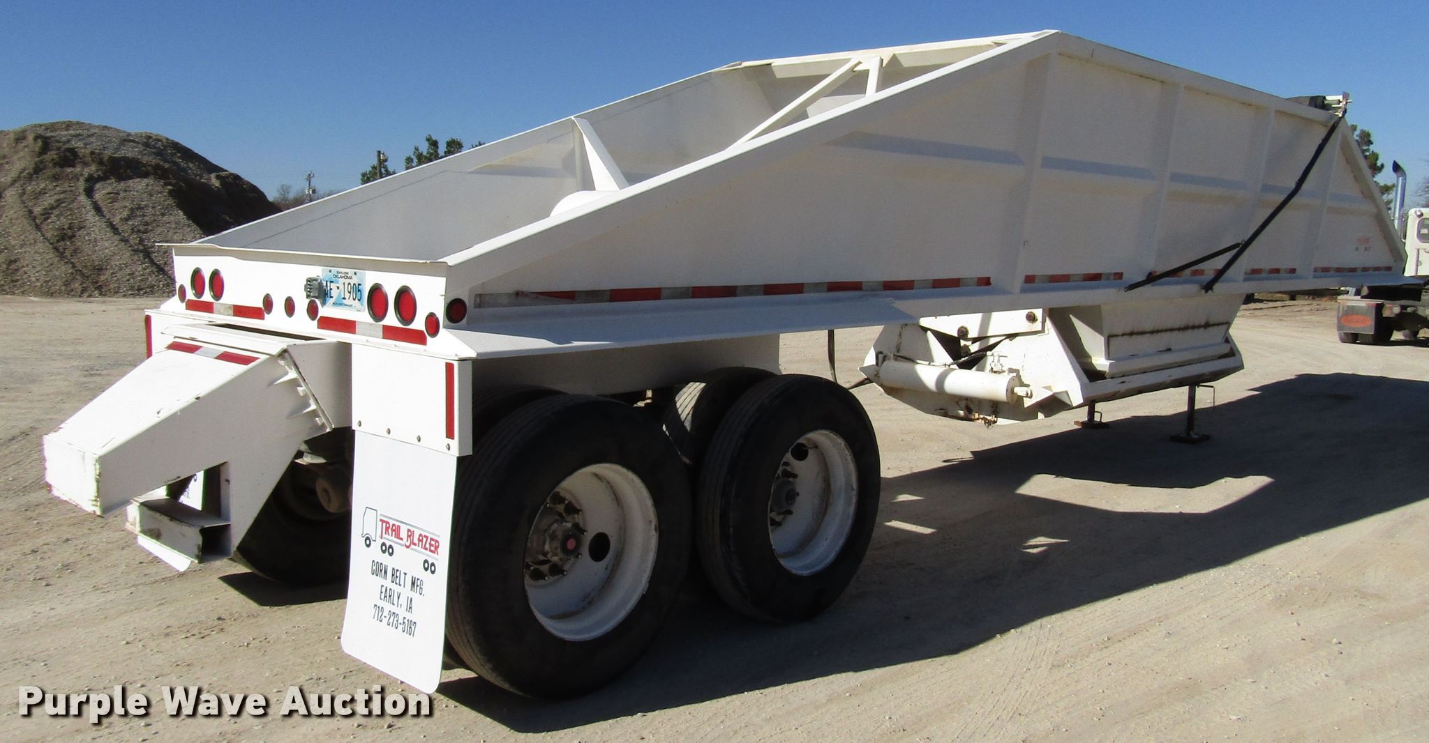 Purple Wave is selling a used Bottom Dump Trailer in Oklahoma. This item is a 2005 Trail Blazer S4202 bottom dump trailer with the following: 42'L x 96"W, 80" side height, 22 cu.yd. capacity, Steel construction, Air operated clamshell gate, Electric tarp, Trailer controls, Rear push block, Dual leg two speed landing gear, Air suspension, Air brakes, Tandem axle, Steel wheels, 11R24.5 tires, GVWR 65,000 lbs, GAWR 22,500 lbs