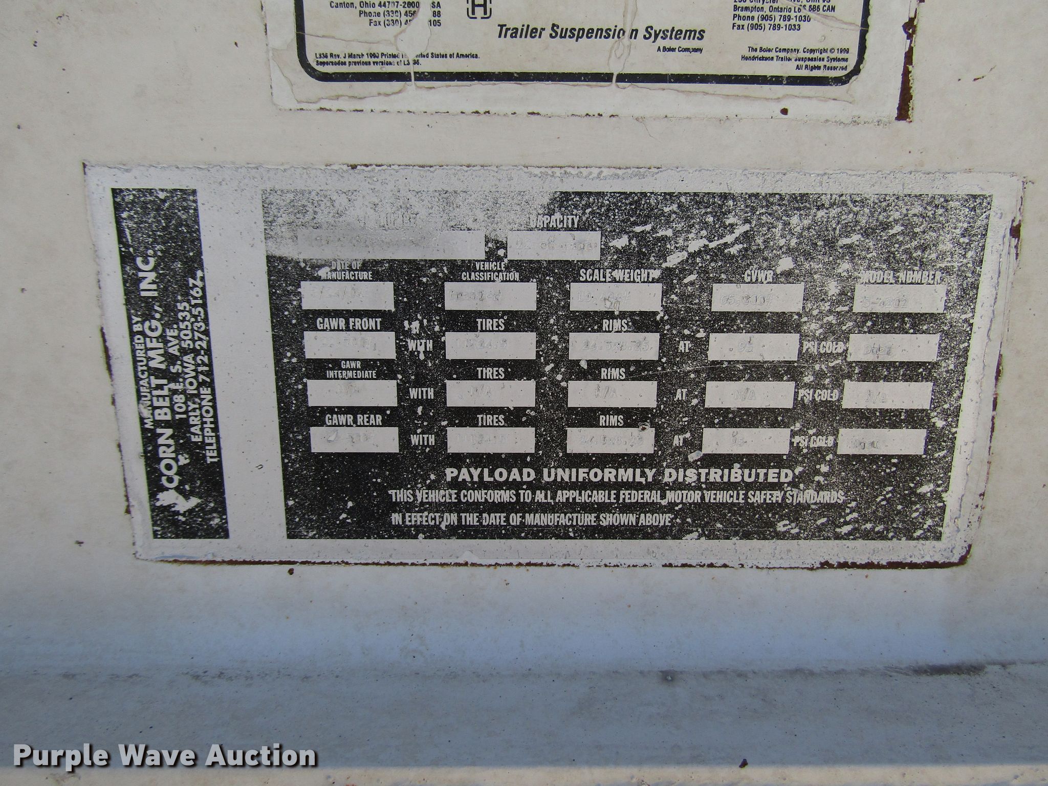 2005 Trail Blazer S4202 bottom dump trailer. 42'L x 96"W, 80" side height, 22 cu.yd. capacity, Steel construction, Air operated clamshell gate, Electric tarp, Trailer controls, Rear push block, Dual leg two speed landing gear, Air suspension, Air brakes, Tandem axle, Steel wheels, 11R24.5 tires, GVWR 65,000 lbs, GAWR 22,500 lbs. Oklahoma title. 1C9SS422851425020. Block Sand Company. 329044 E 1070 Road. McLoud, OK 74851
