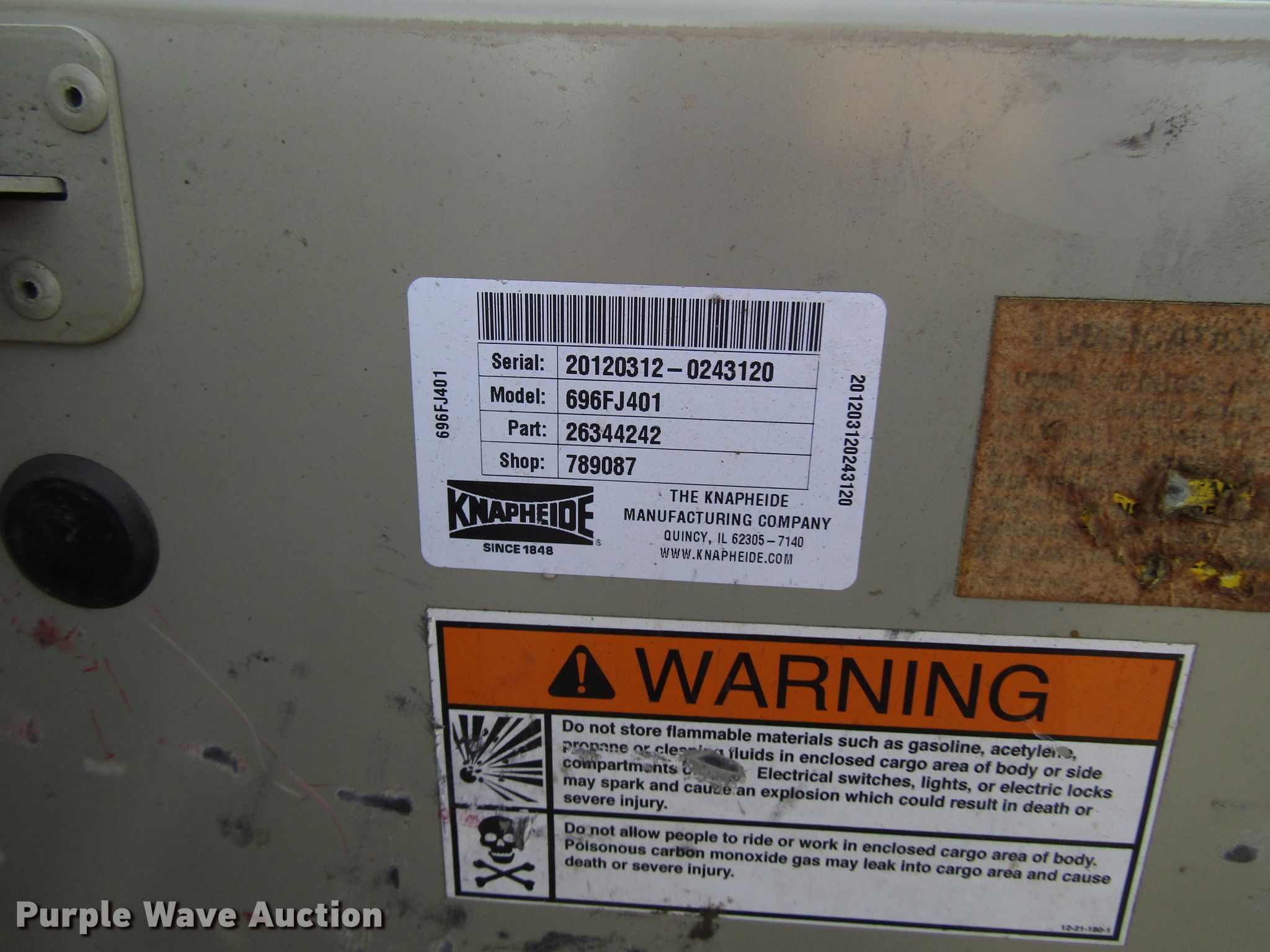 Purple Wave is selling a used 3/4 or 1 Ton Pickup or Van in Arkansas. This item is a 2012 Ford F250 Super Duty utility bed pickup truck with the following: 102,983 miles on odometer, 6.2L V8 OHV 16V gas engine, Automatic transmission, Four wheel drive, AC and heat, Knapheide 696FJ401 utility bed, 9'L x 78"W, 265/70R17 tires, Hail damage, Unit# 87