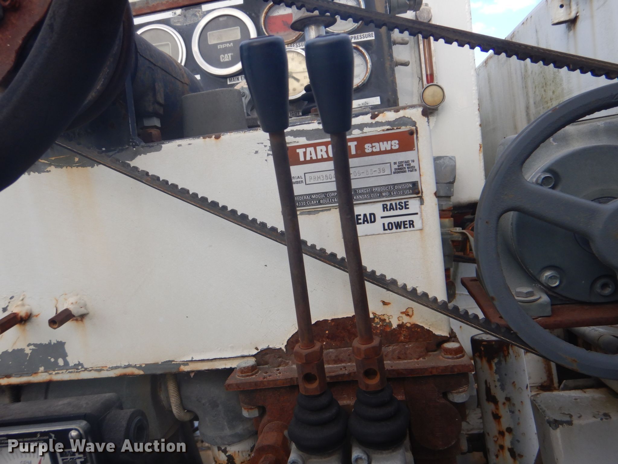 2006 Target 3804 road grinder. Caterpillar 3406 14.63L six cylinder diesel engine 400 HP, Hydrostatic transmission, 36.5"W milling head, Vacuum system 2003 Deutz BF4L four cylinder diesel engine, 300 gallon fuel tank, 27'L x 7.5'W x 9'H overall, (6) 9" solid tires, (4) 4" solid tires, 22 x 10 x 16 tires, Non-operational hour meter, Serial PRM3804-08-09-85-39. Becco Contractors Inc.. 13737 E 46th St N. Tulsa, OK 74116