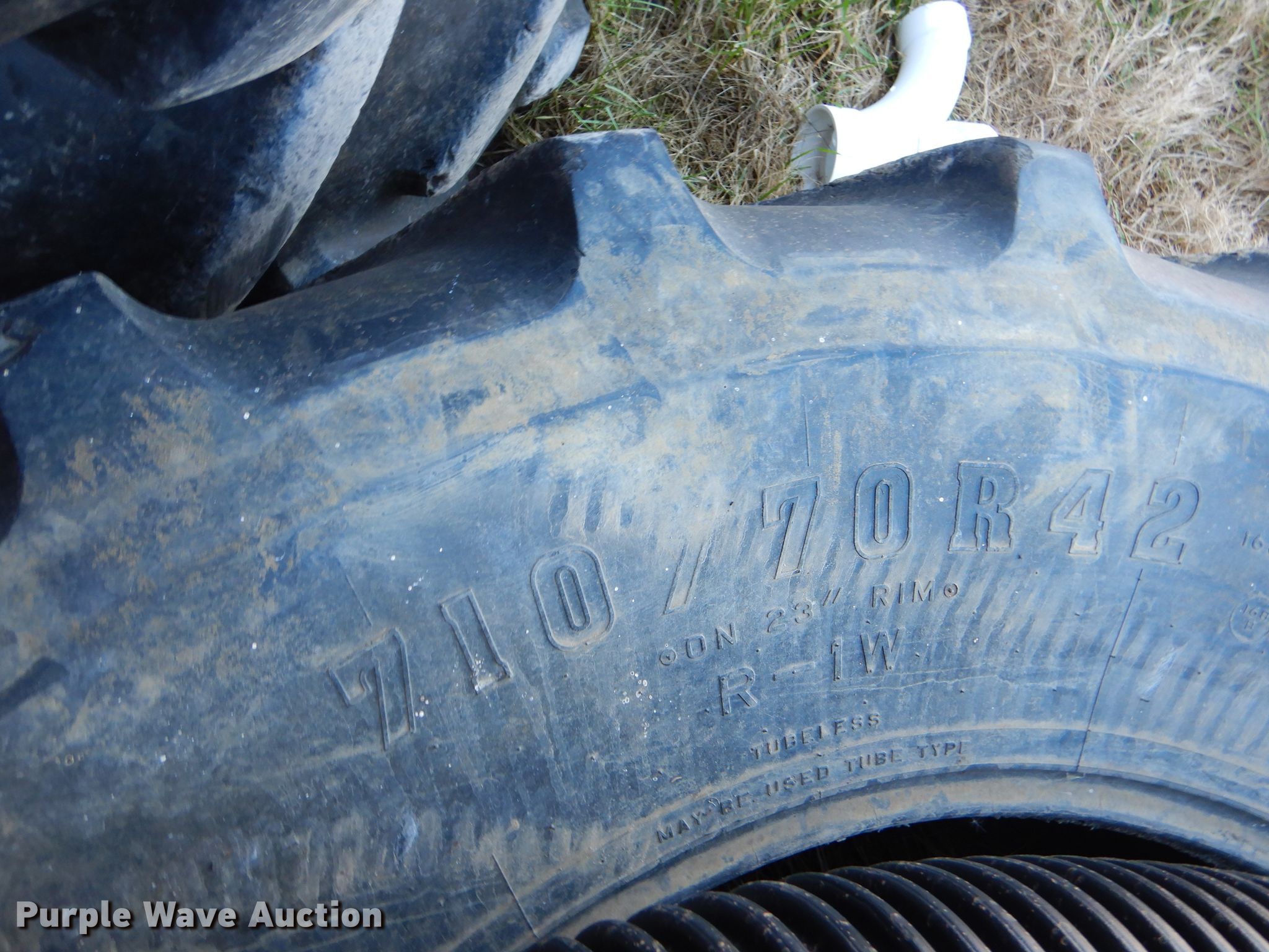 Purple Wave is selling a used Industrial Tires or Tracks in Oklahoma. This item is a (8) tires with the following: (6) 710/70R42, (2) 520/85R36