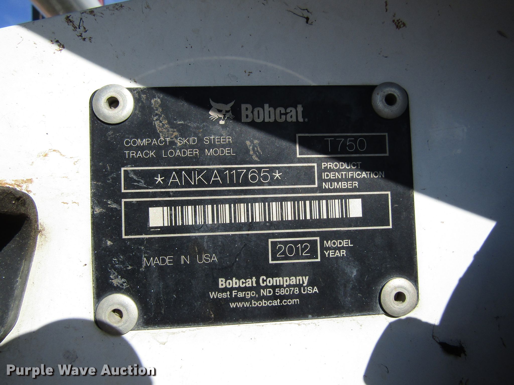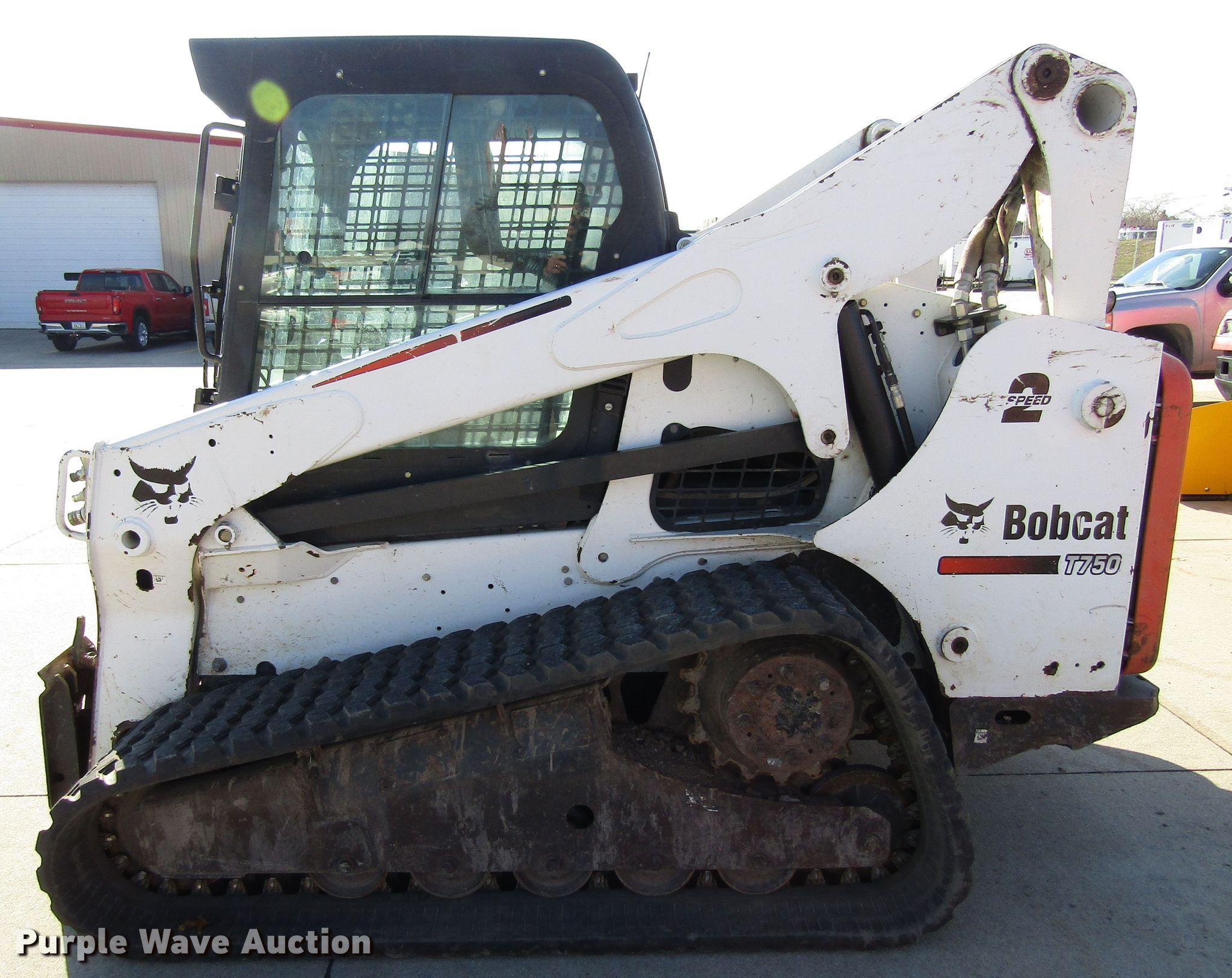 Purple Wave is selling a used Tracked Skid Steer Loader in Iowa. This item is a 2012 Bobcat T750 skid steer with the following: 4,252 hours on meter, Four cylinder diesel engine, Two speed hydrostatic transmission, Enclosed cab, AC and heat, Hand bucket controls, Hydraulic quick coupler, Auxiliary hydraulics, 17"W tracks, Serial ANKA11765