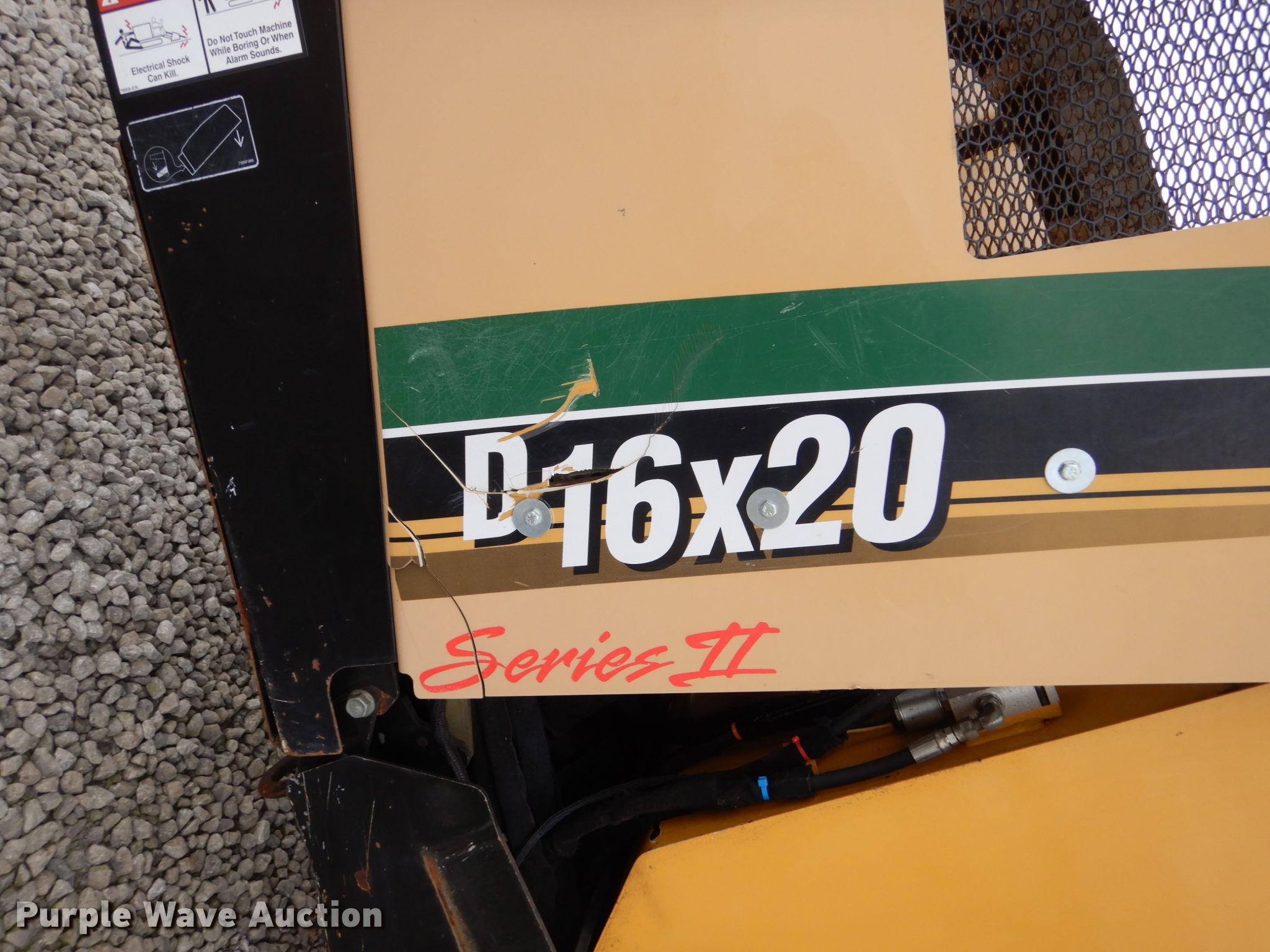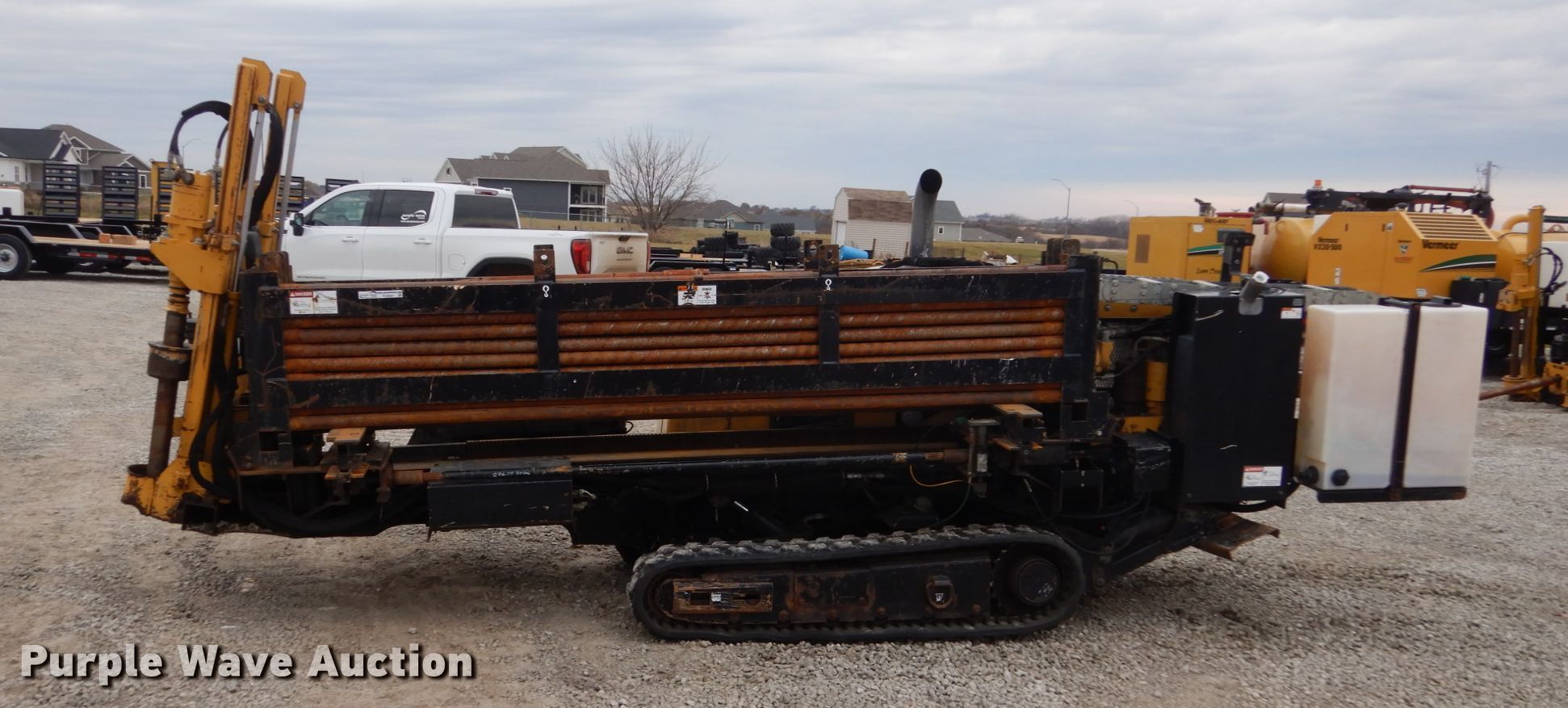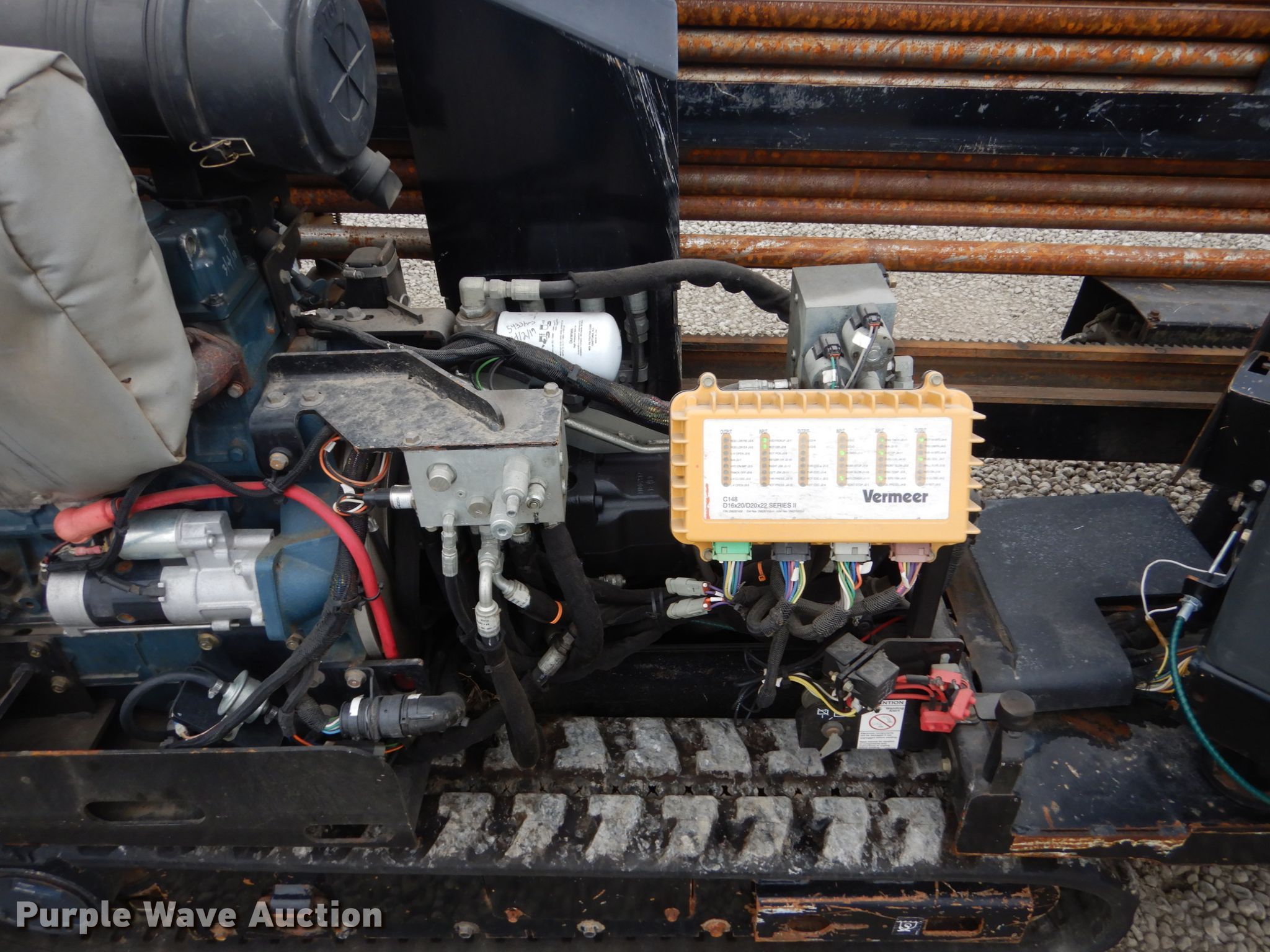 Purple Wave is selling a used Directional Boring Unit in Iowa. This item is a 2011 Vermeer D16X20 directional boring unit with the following: 5,719 hours on meter, Kubota V3600-E105 3.6L four cylinder diesel engine, Bean water pump, 25 gallon on-board water capacity, 3"W drill bit, (40) drill stems, 10'L x 1.90" diameter, Automatic rod loader, Hydraulic stake down, Rear hydraulic stabilizers, 10"W rubber tracks, Left extendable tracks, Serial 1VR6170S7B1000446